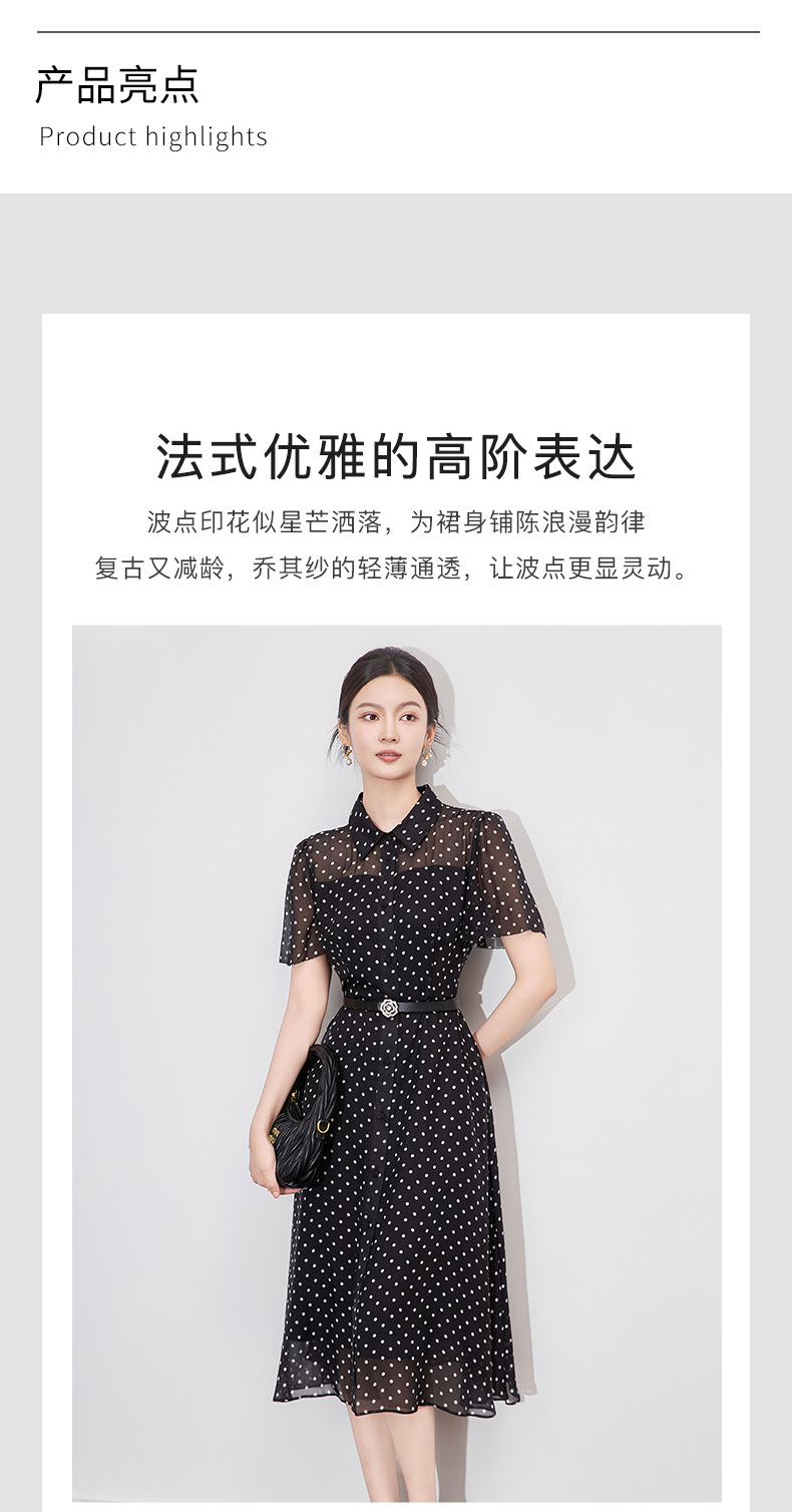 「高货wl」全新升级【铂金会员330/天猫439/差价109】(03742)洛诗琳法式复古设计感连衣裙2025夏季波点收腰显瘦裙子