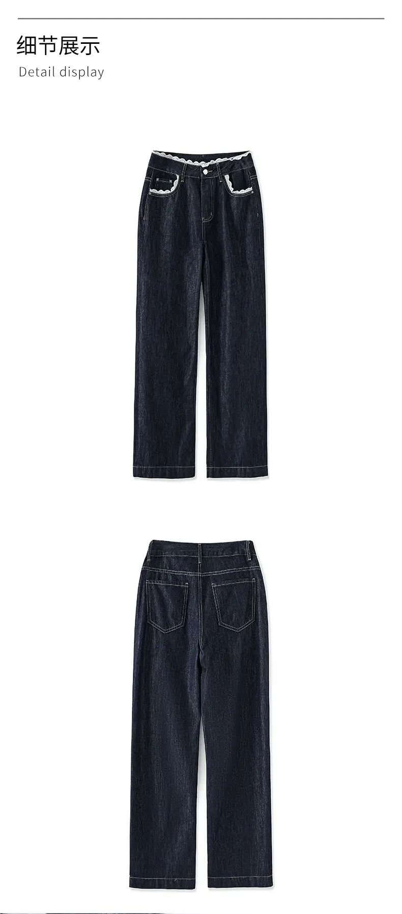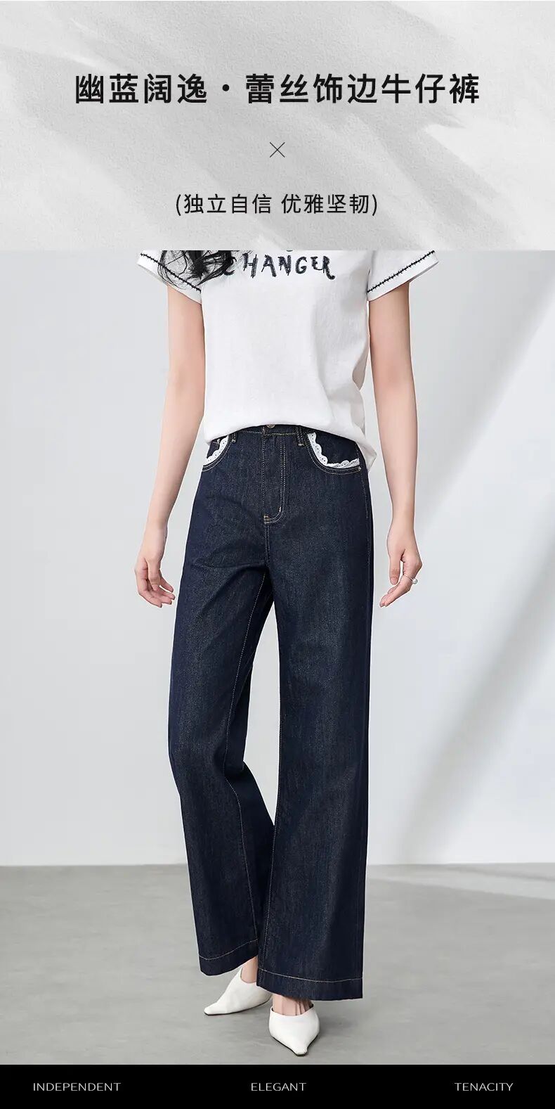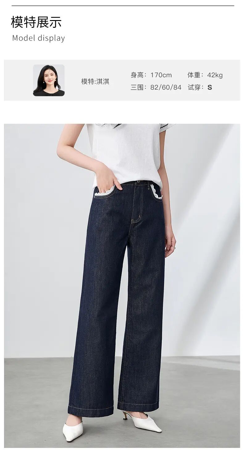 【高货wl】全新升级【铂金会员220/天猫289/差价69】(02422) 洛诗琳新款轻奢细闪天丝牛仔裤复古通勤蕾丝花边阔腿裤
