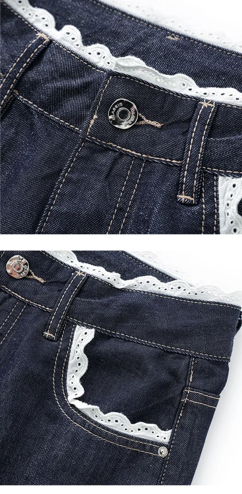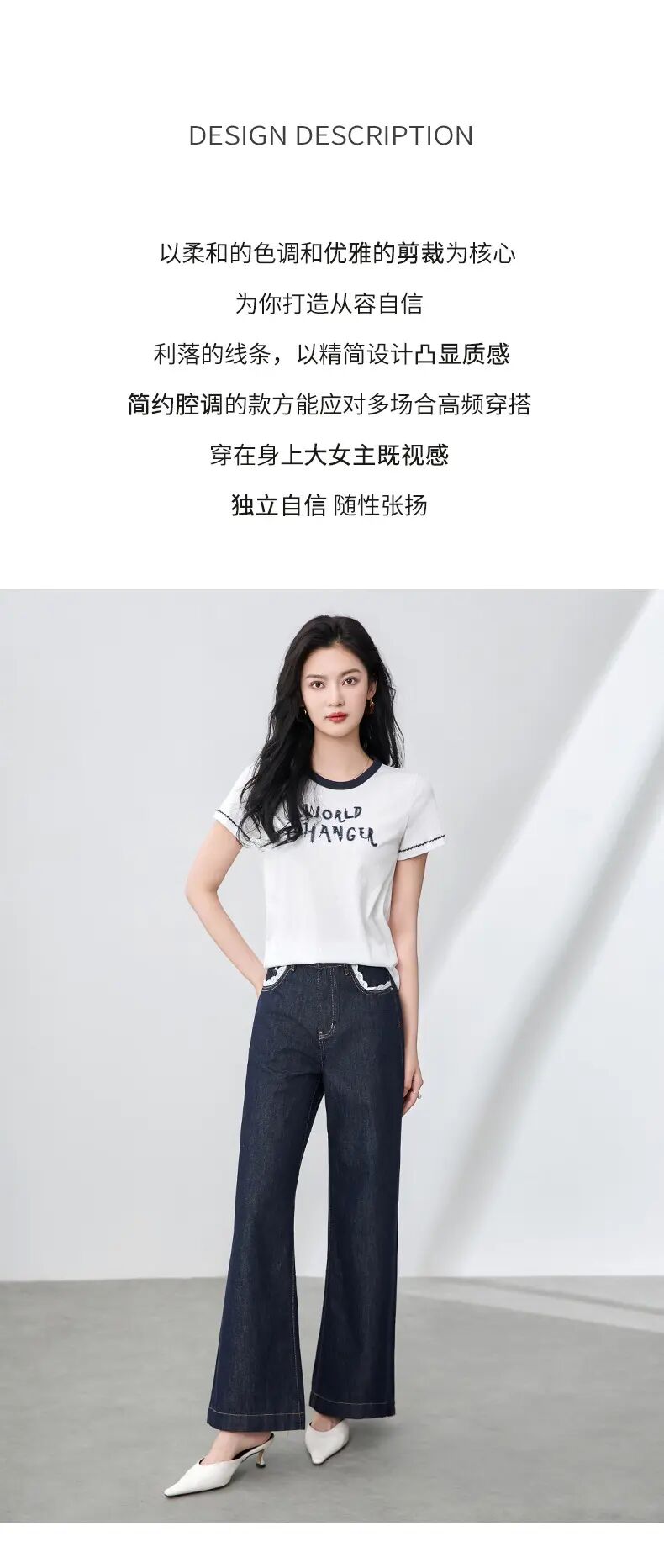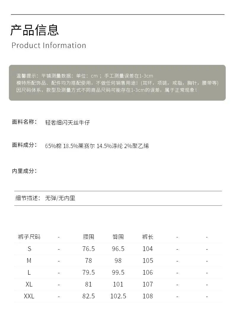 【高货wl】全新升级【铂金会员220/天猫289/差价69】(02422) 洛诗琳新款轻奢细闪天丝牛仔裤复古通勤蕾丝花边阔腿裤