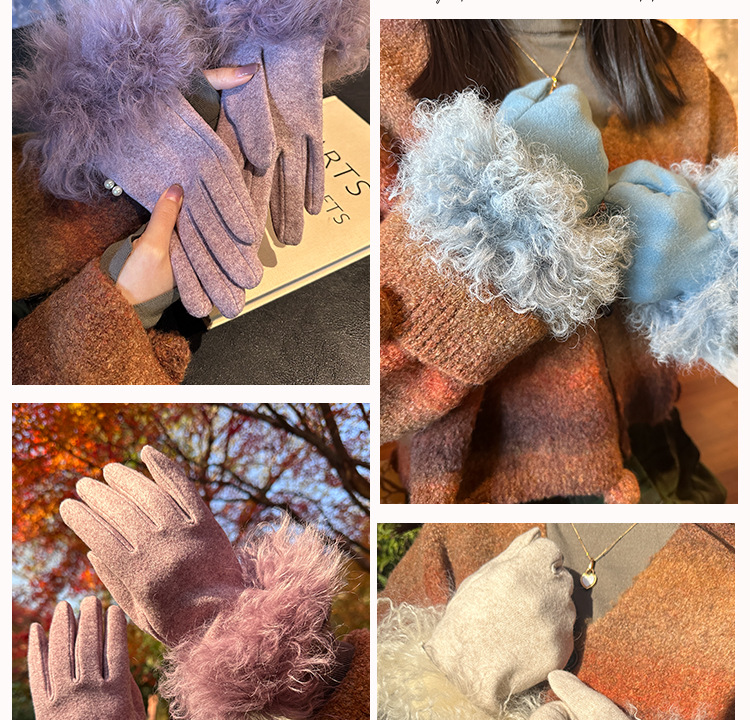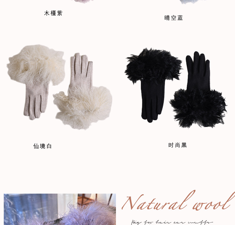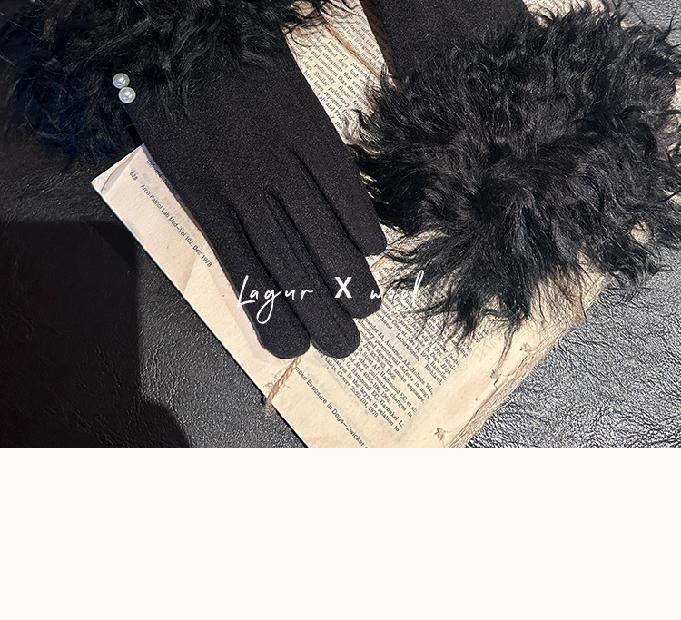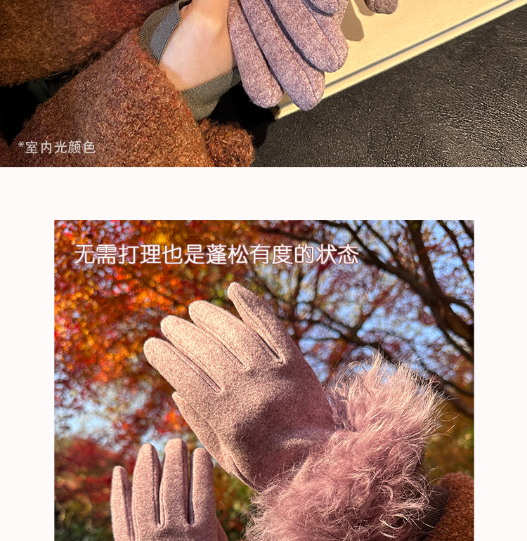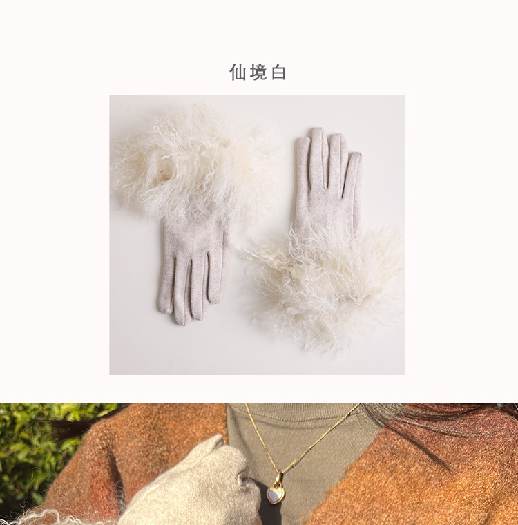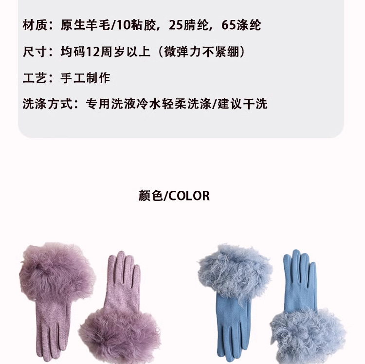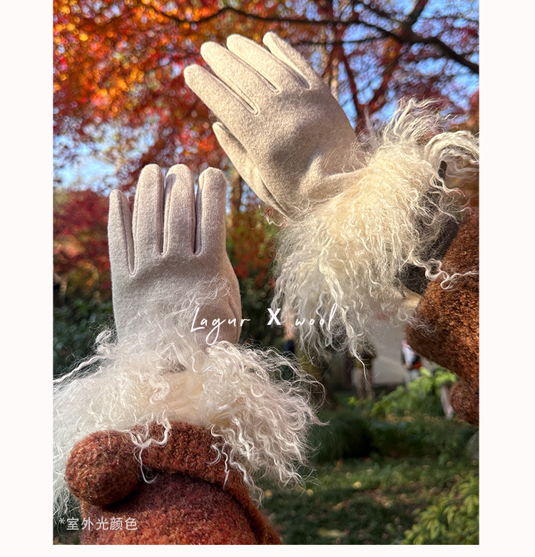 奶味~无需打理「羊毛皮草手套」加厚加绒保暖触屏女冬季开车骑行
