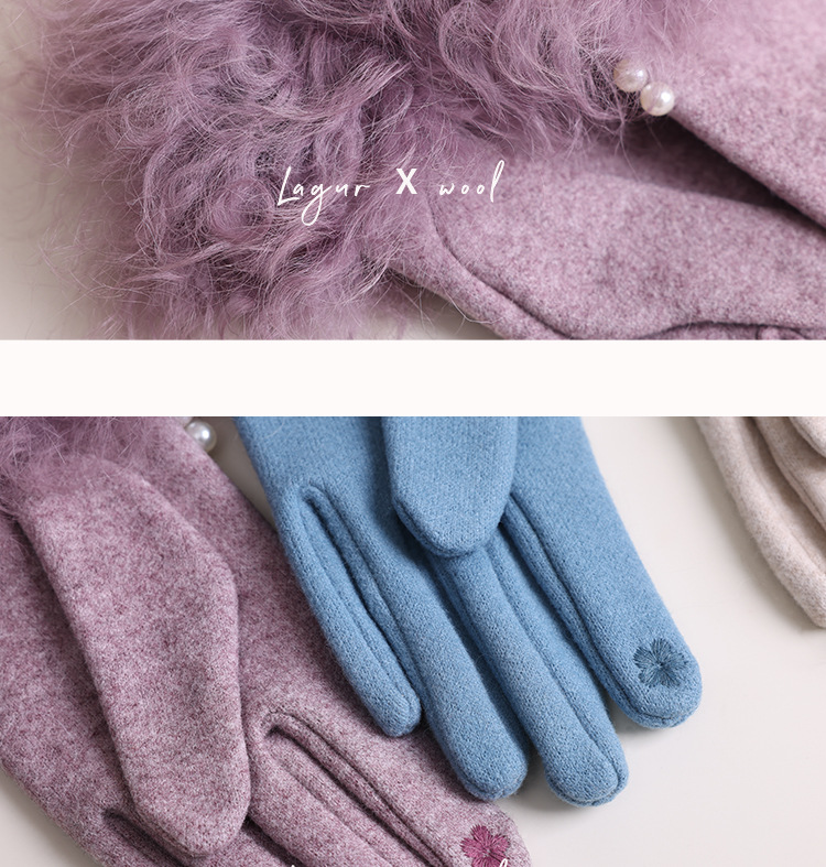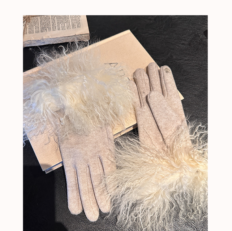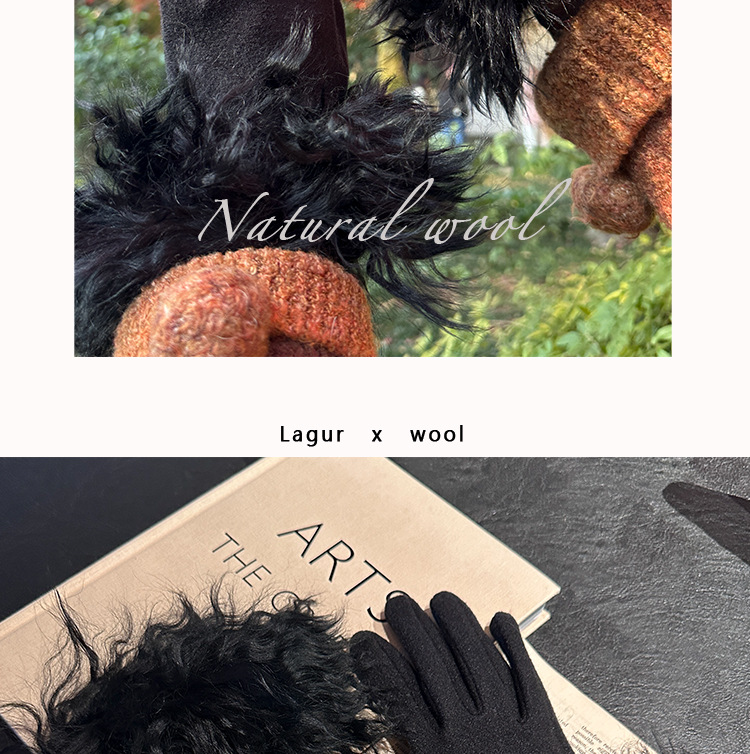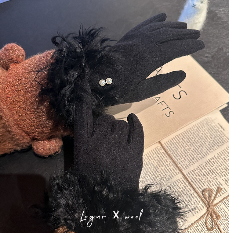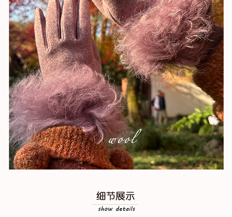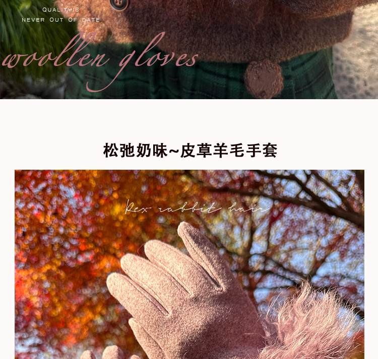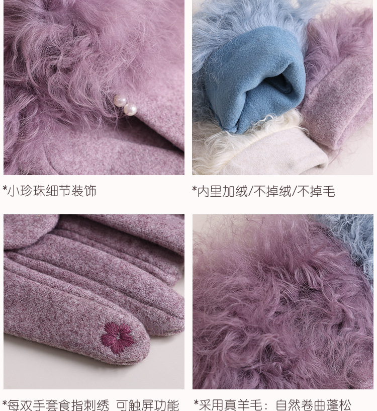 奶味~无需打理「羊毛皮草手套」加厚加绒保暖触屏女冬季开车骑行