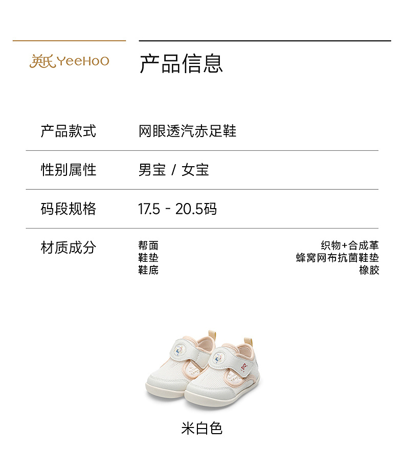 【商场同款】英氏婴儿步前鞋春夏透气网眼鞋软底宝宝鞋百搭学步鞋