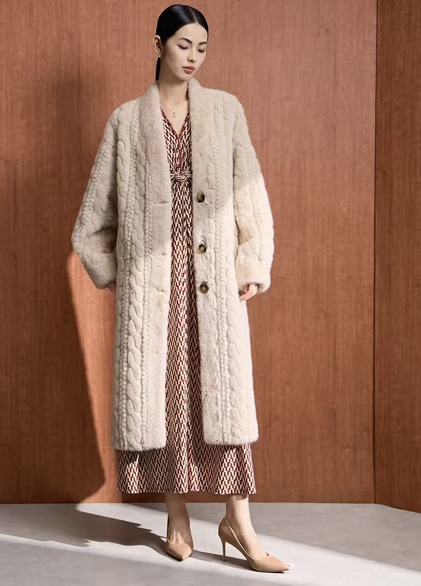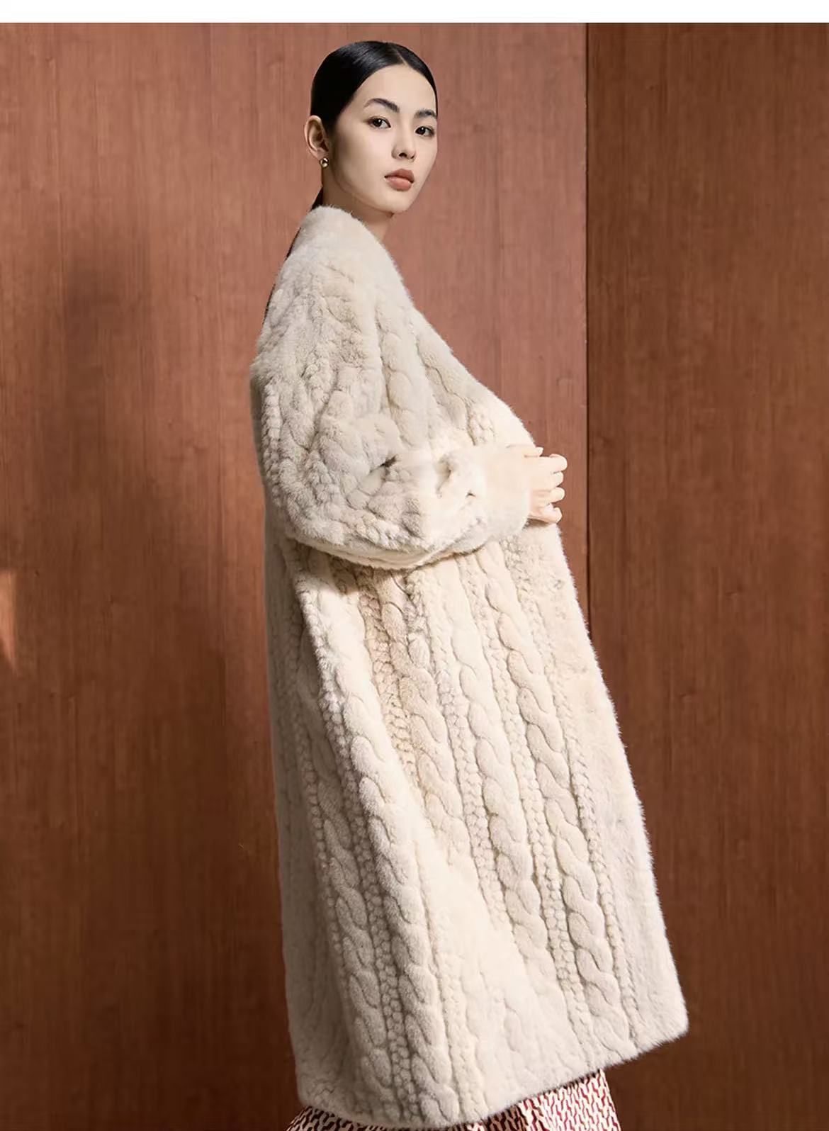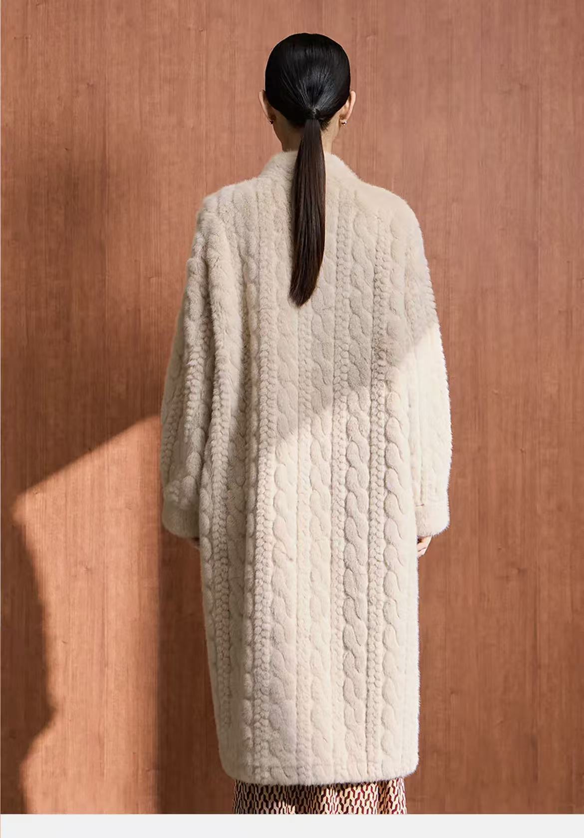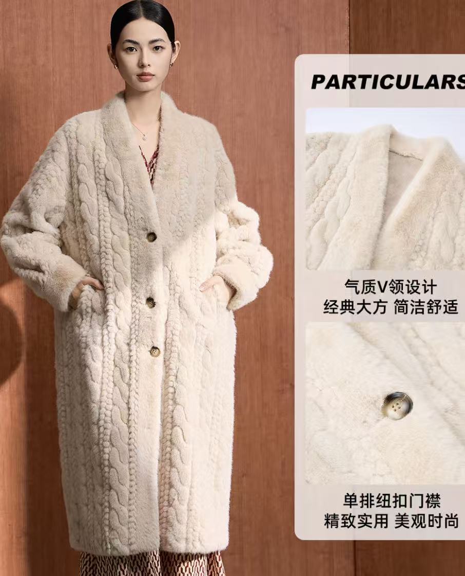 【冬季系列】环保水貂重工麻花厚款皮毛一体大衣外套-喜出