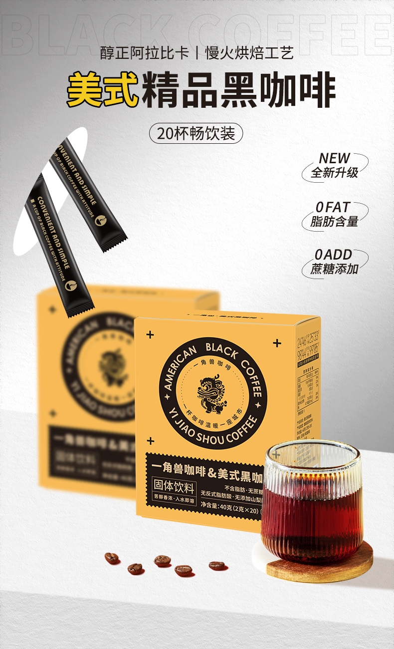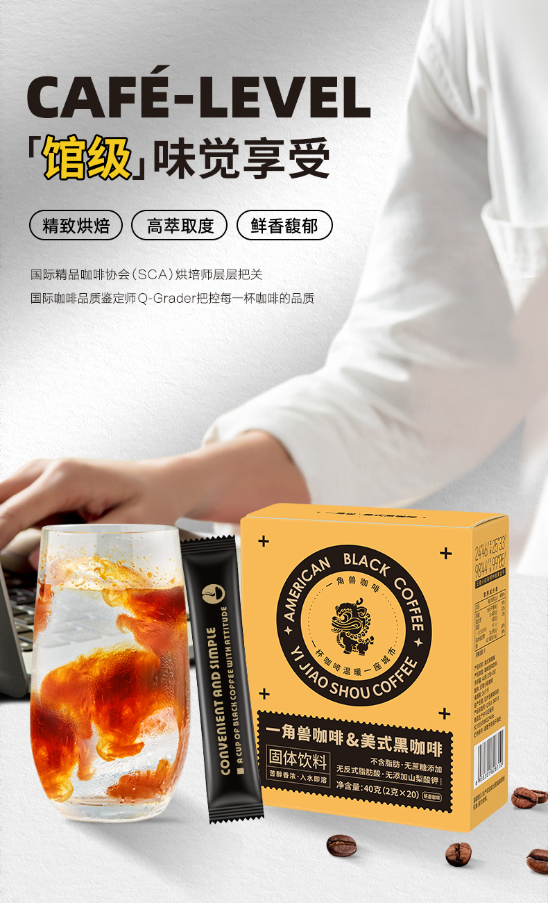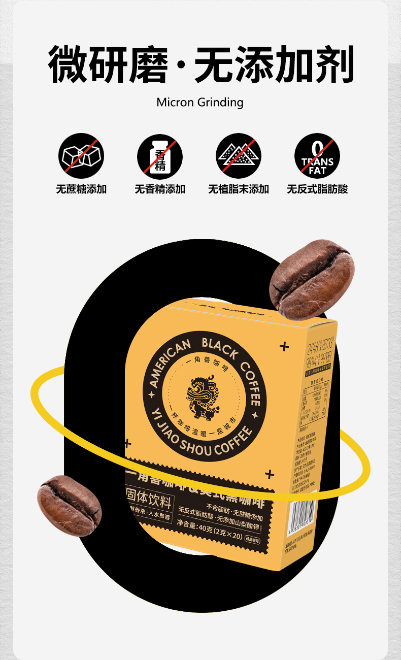 【一角兽美式黑咖啡】精致研磨 层层把关 冷热双泡,遇水即溶,口感细腻,还原现磨咖啡醇香口感 2g*20袋/盒*4盒