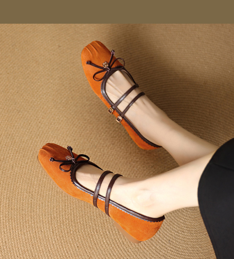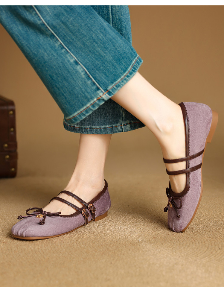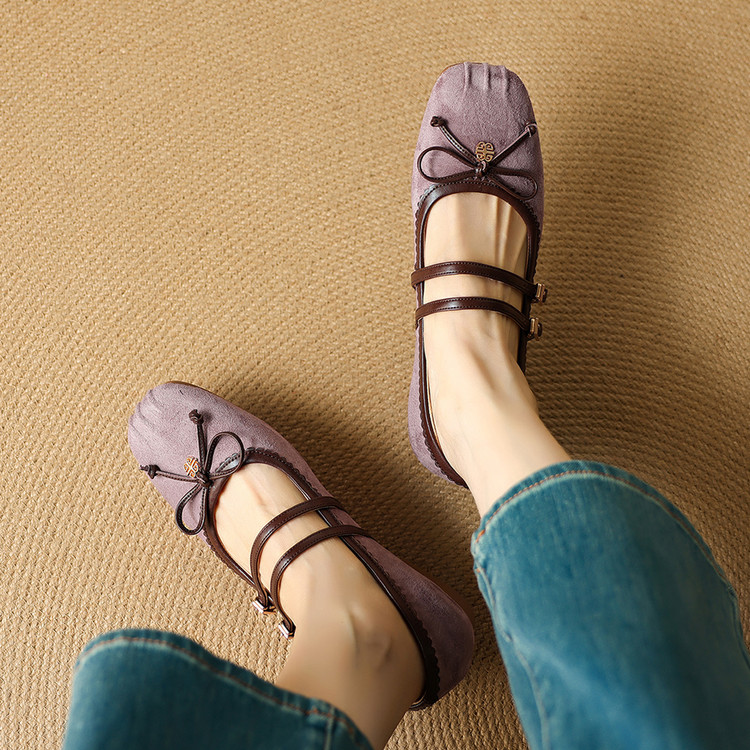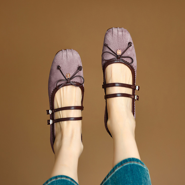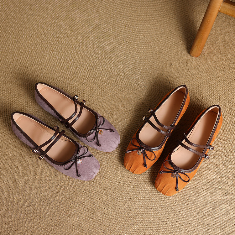 【预售5天】晚晚风蝴蝶结圆头复古单鞋女新款浅口一字带玛丽珍鞋NJMK&K1726