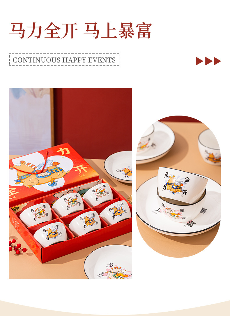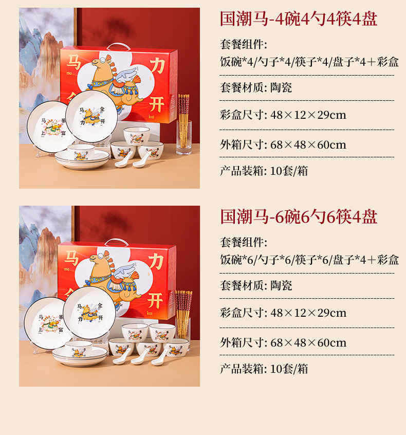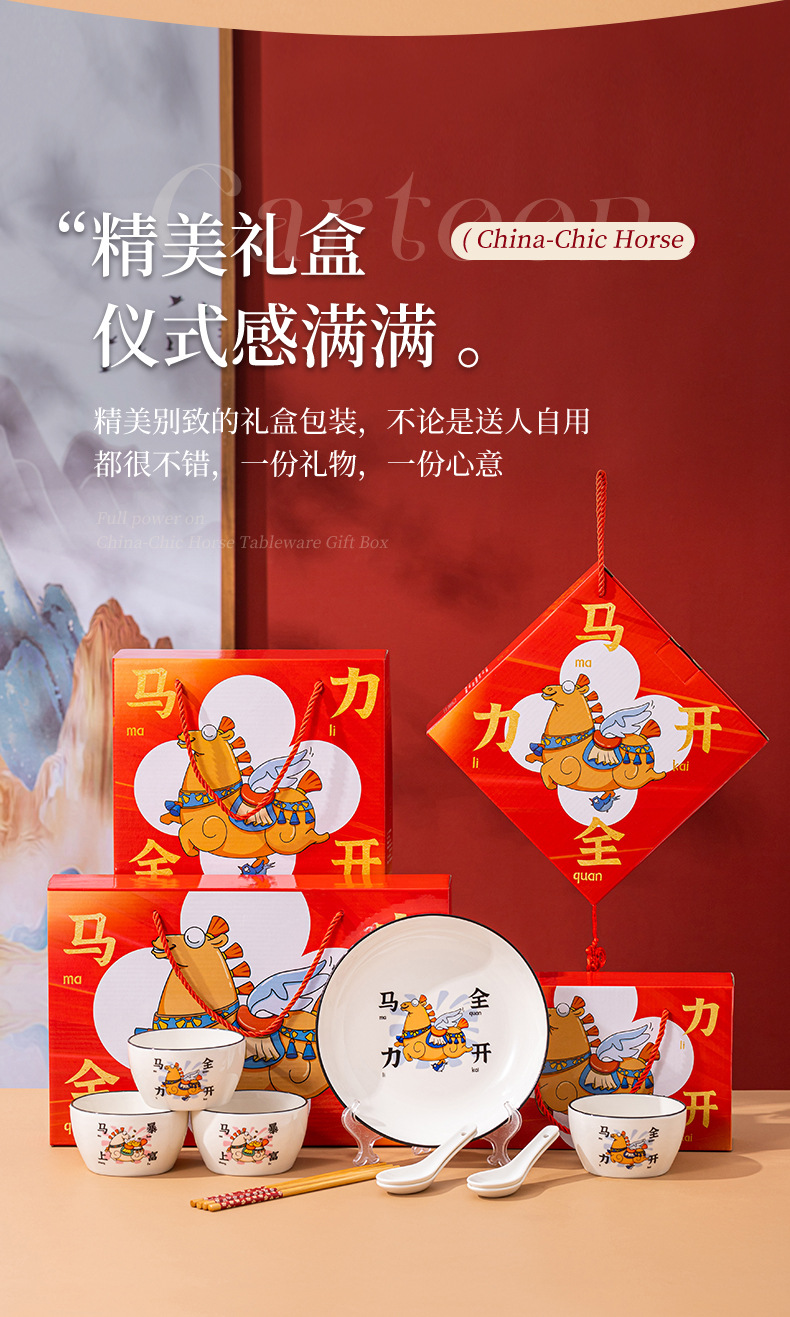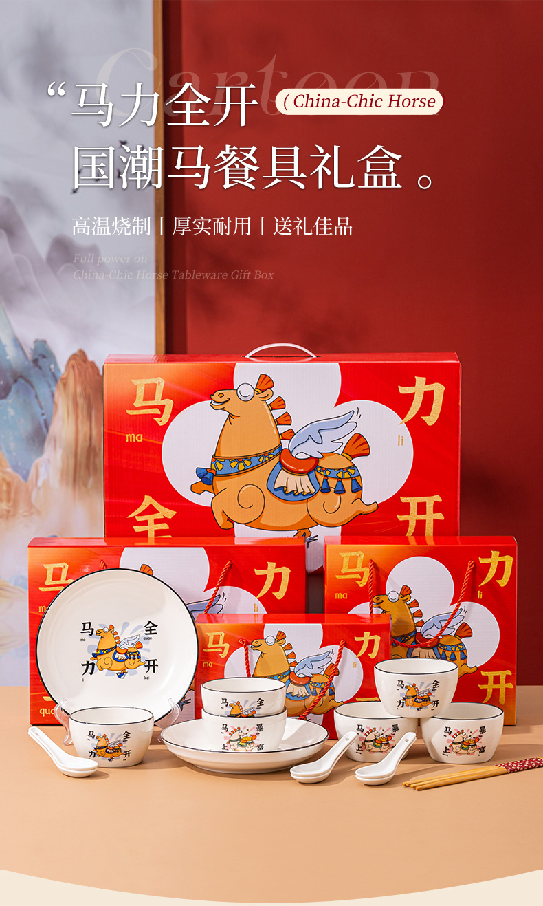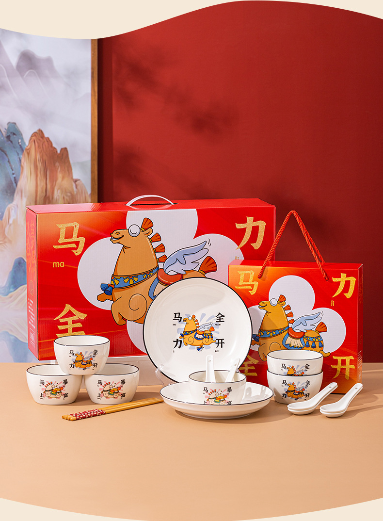 【马年餐具陶瓷碗筷套装】餐具家用 饭碗家用碗勺碗碟套装
