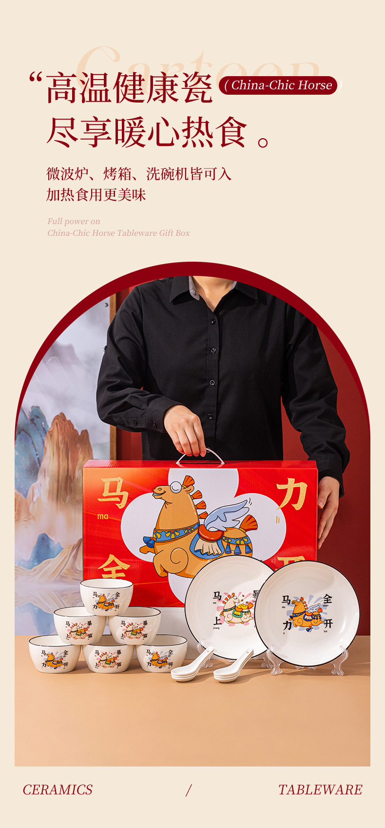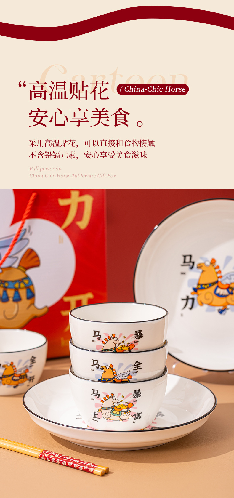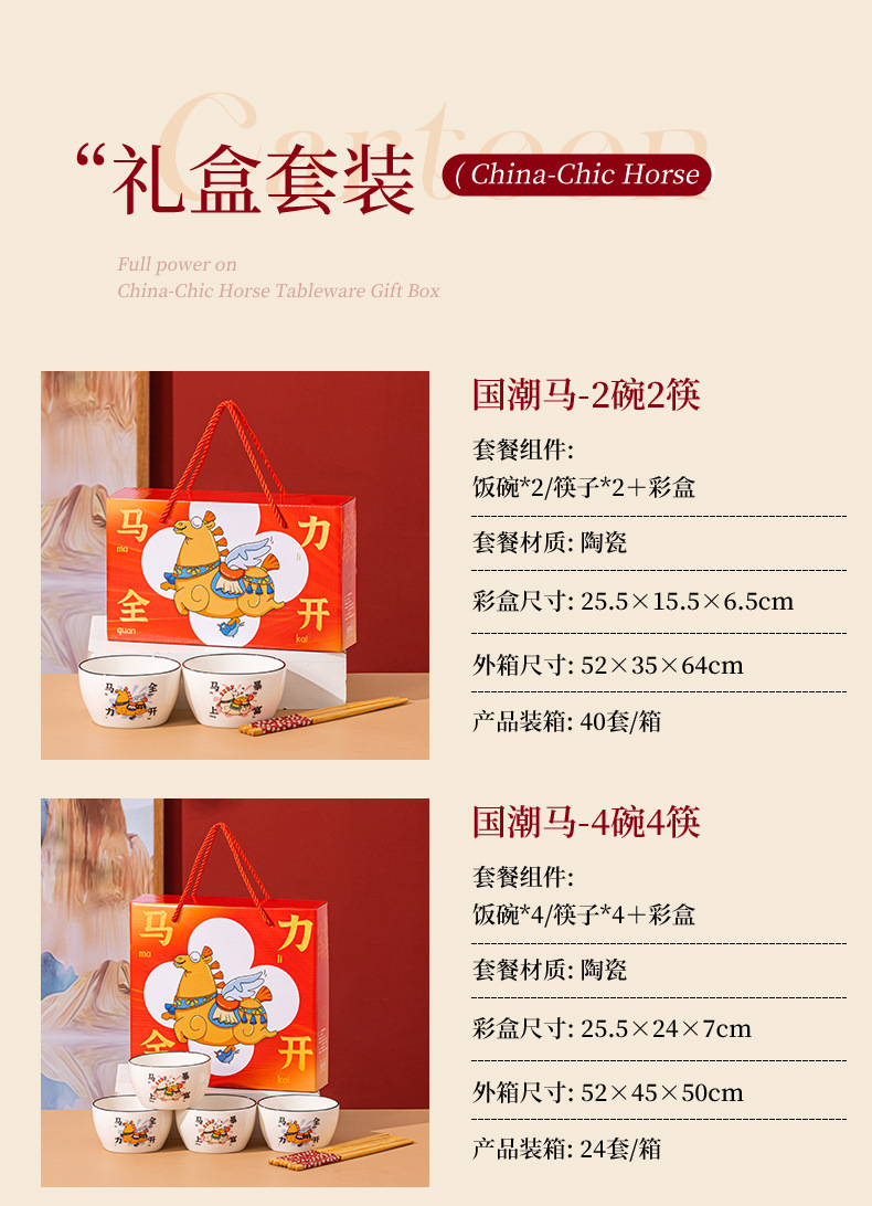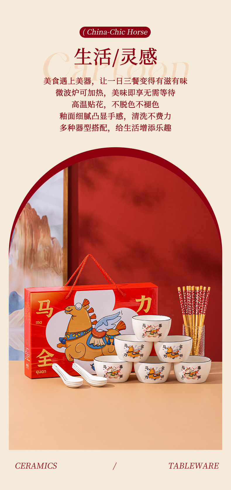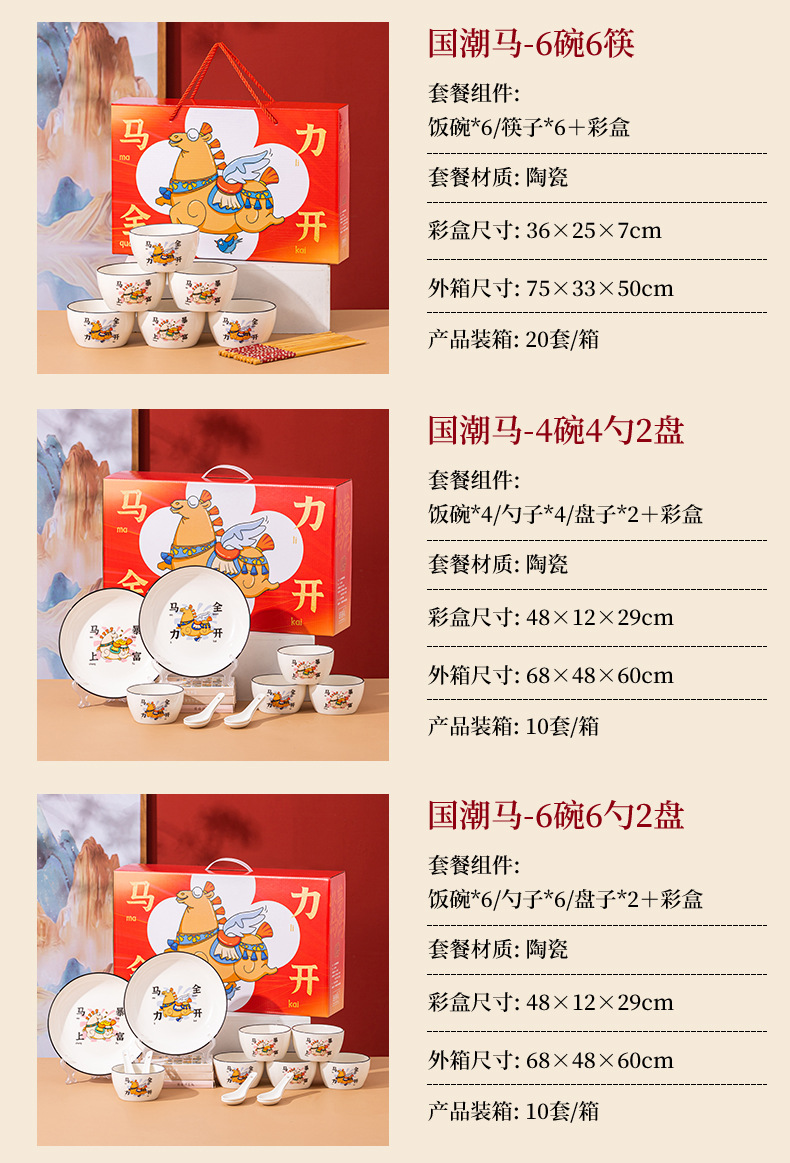 【马年餐具陶瓷碗筷套装】餐具家用 饭碗家用碗勺碗碟套装
