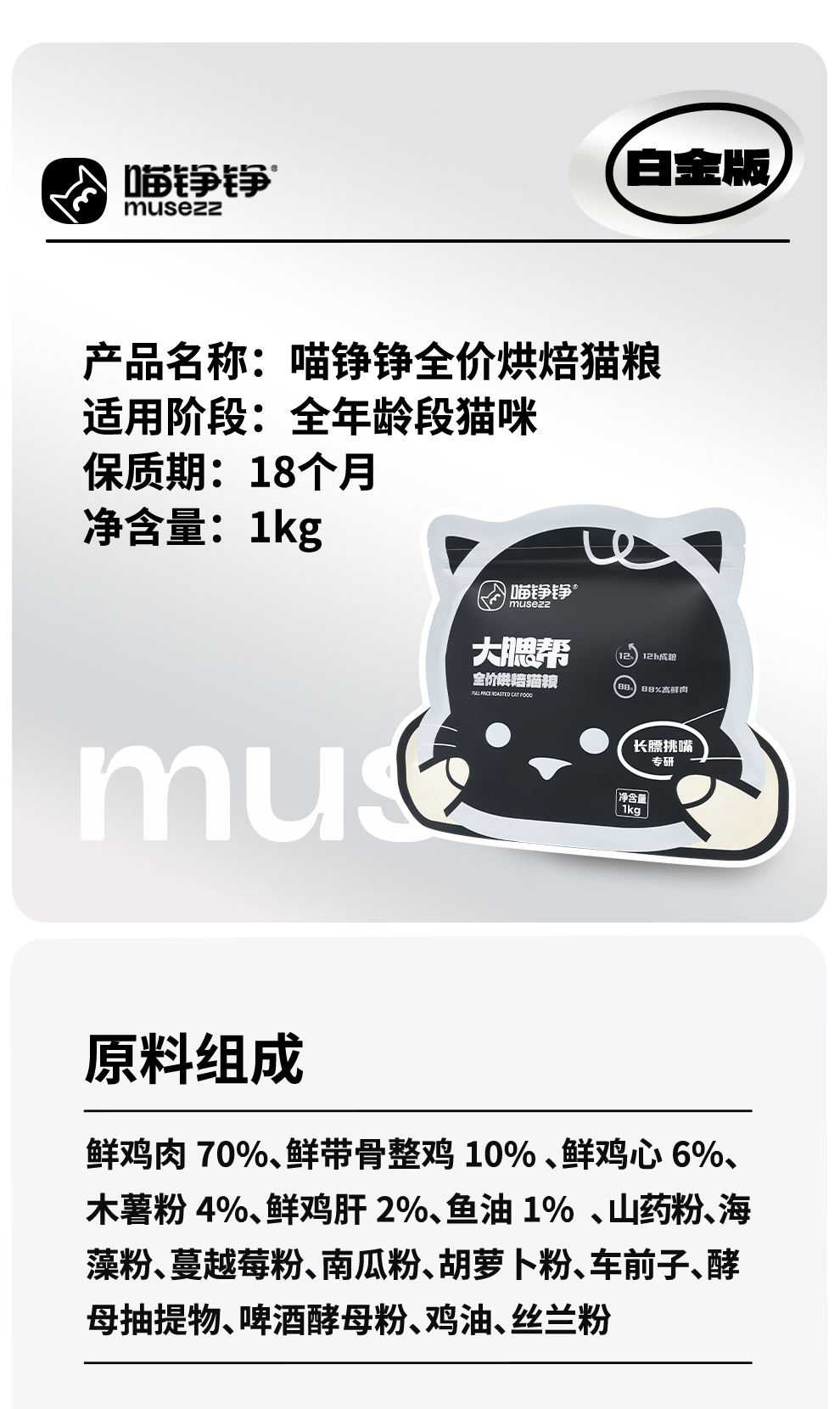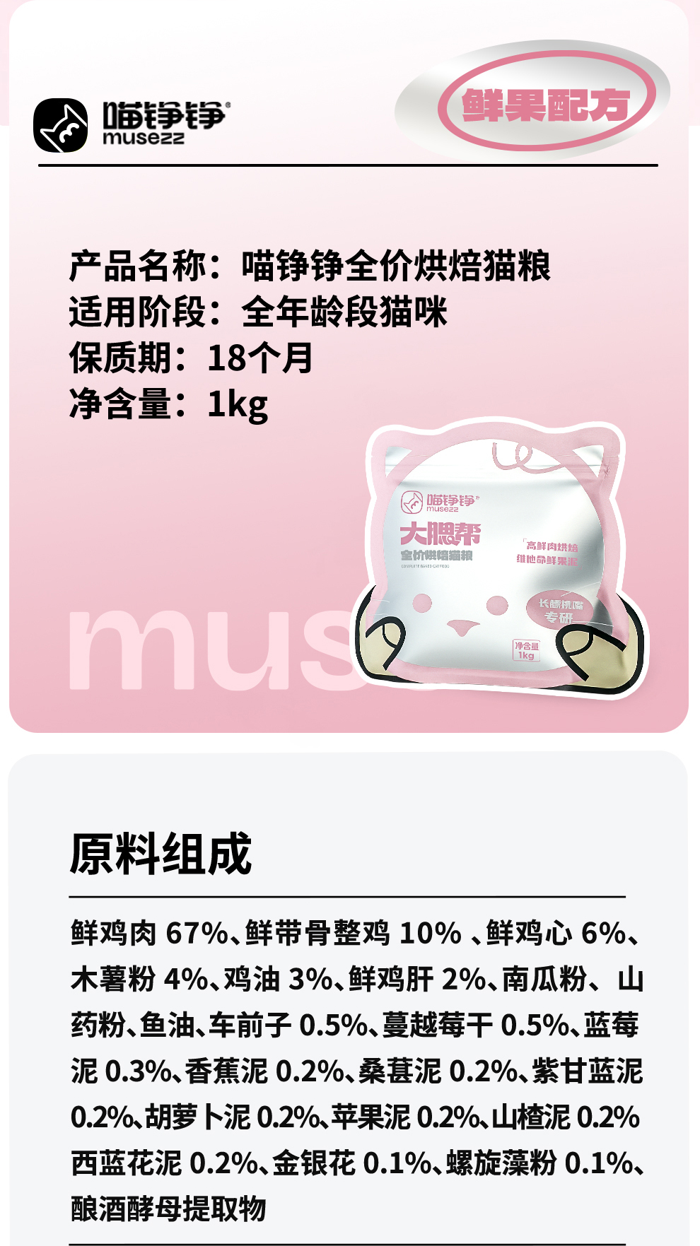 心选丨喵铮铮大腮帮全价烘焙猫粮 2斤/包 猫咪鲜肉营养主粮