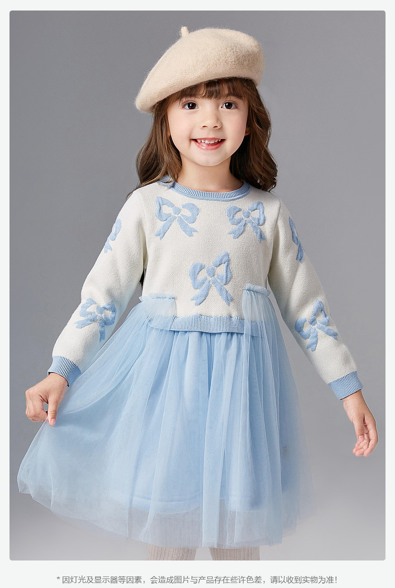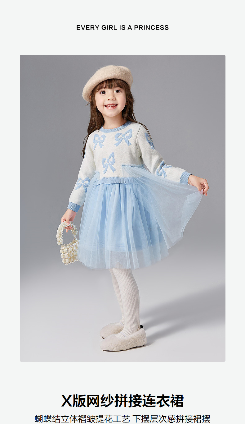 笛莎Deesha 童装女童连衣裙2024冬季新款儿童网纱拼接连衣裙