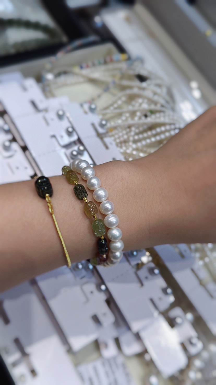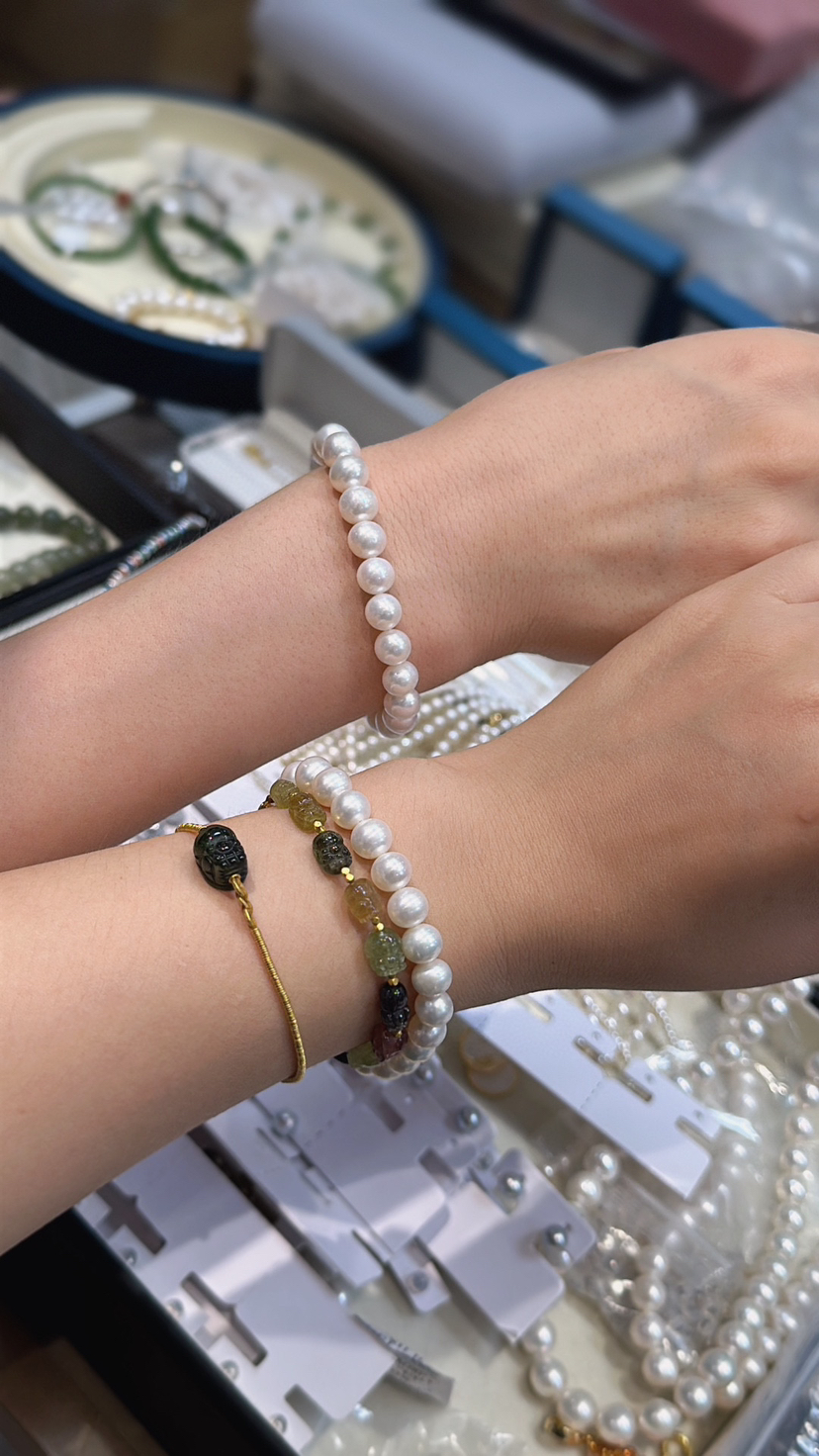 上手效果来一波,8-8.5mm正圆强光微瑕的珍珠手链,任何时候都是抢手货,四季皆宜,温润养人,完全不挑搭配。