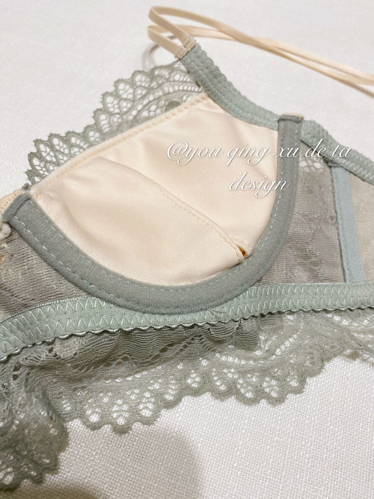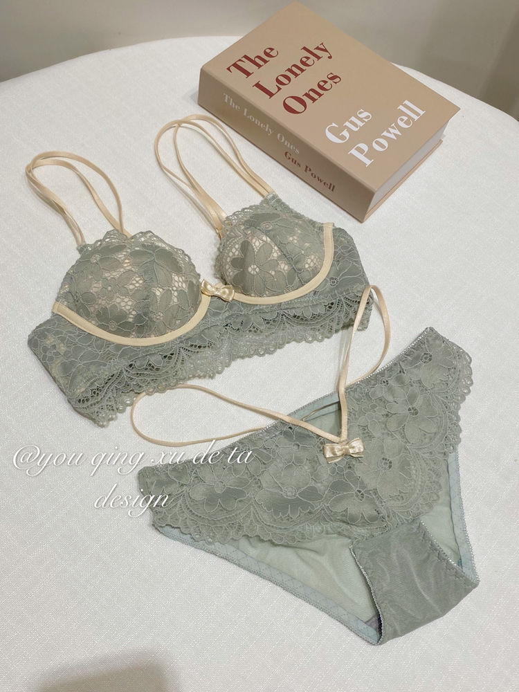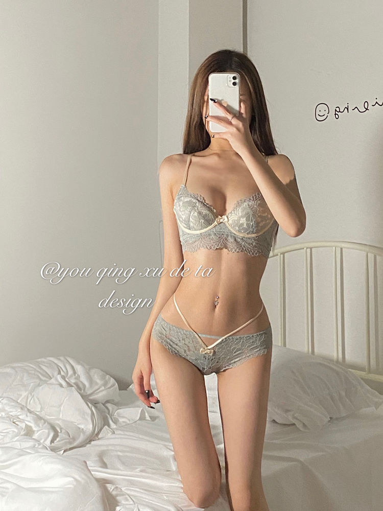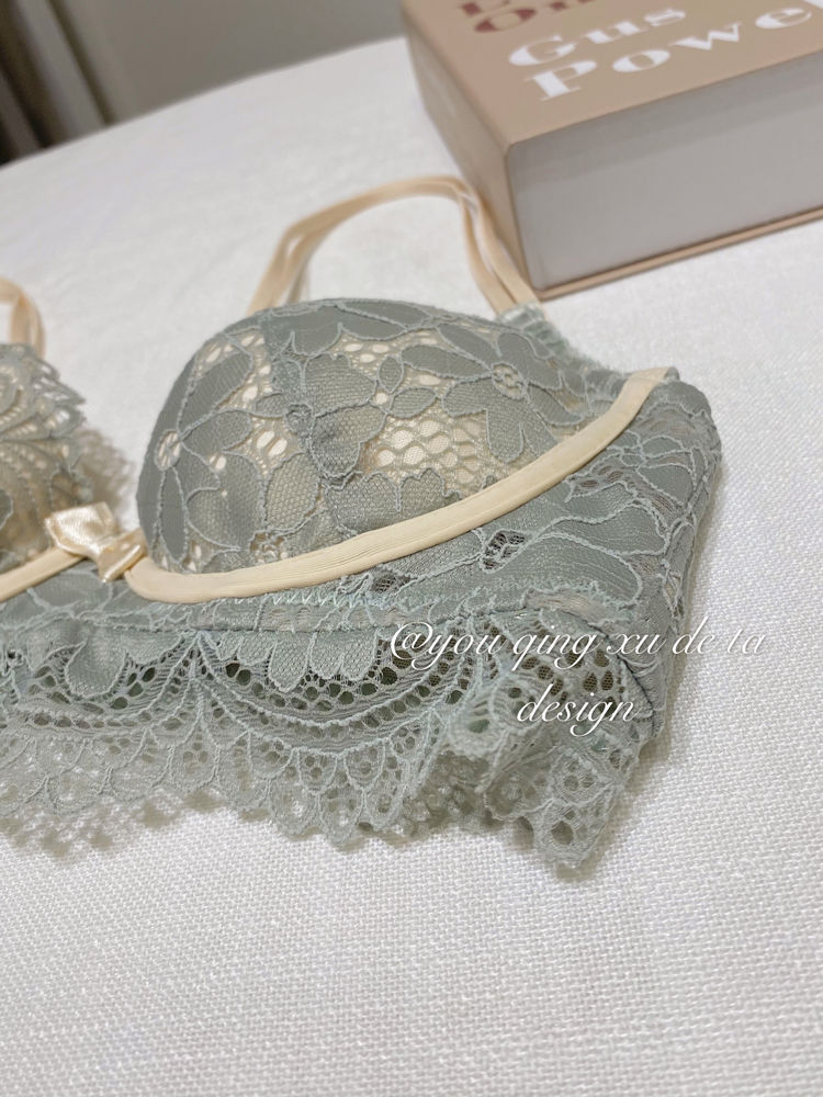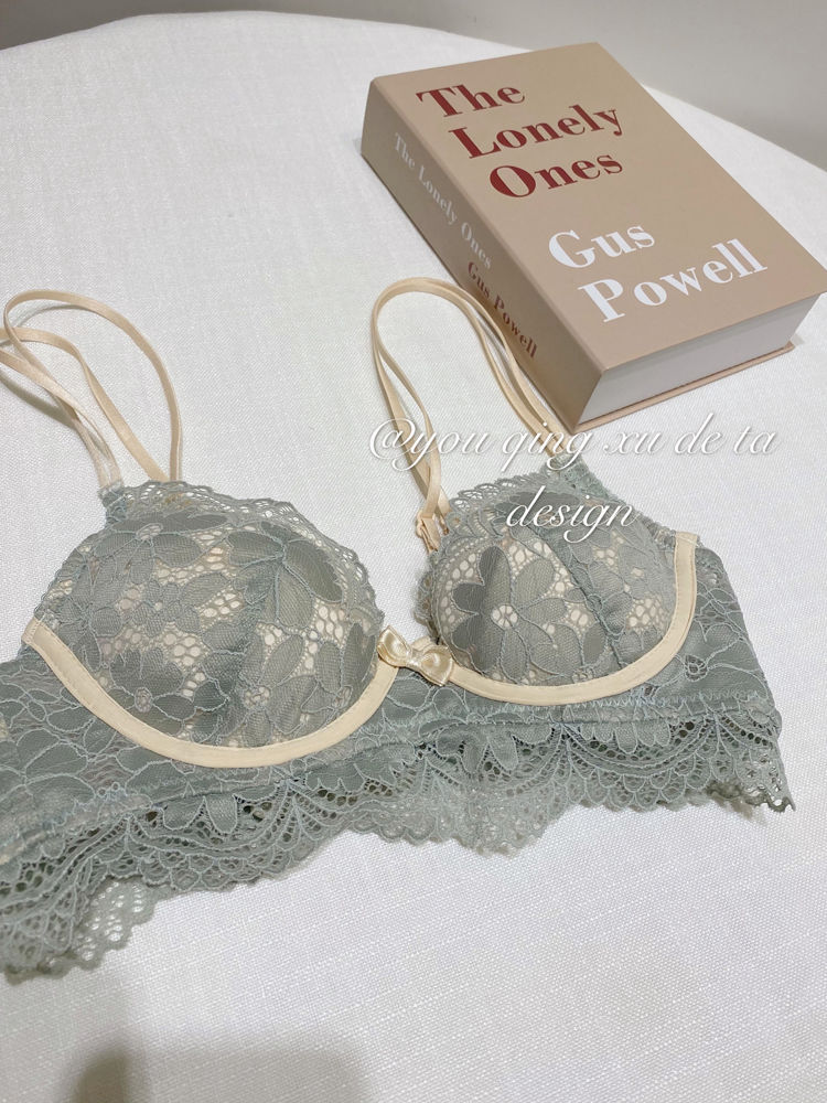 黛唯梵纯欲花语性感蕾丝花边内衣内裤女小胸聚拢不空杯加厚平胸专用舒适薄款文胸国庆清明出游