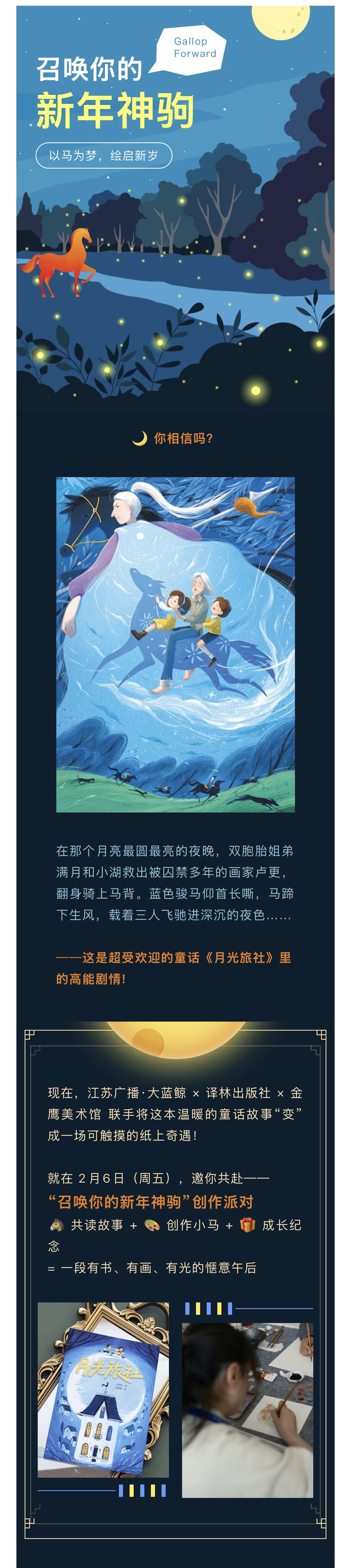 大蓝鲸爱研学|【独立(家长可陪同)】嘚嘚驾~召唤你的新年神驹!骑上《月光旅社》的马,画出你的新年神驹!
