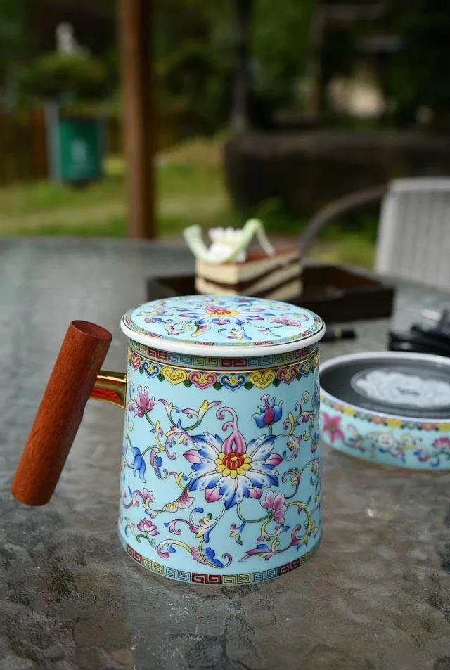 【现货】陶瓷茶具 柒彩珐琅木柄马克杯(5色)