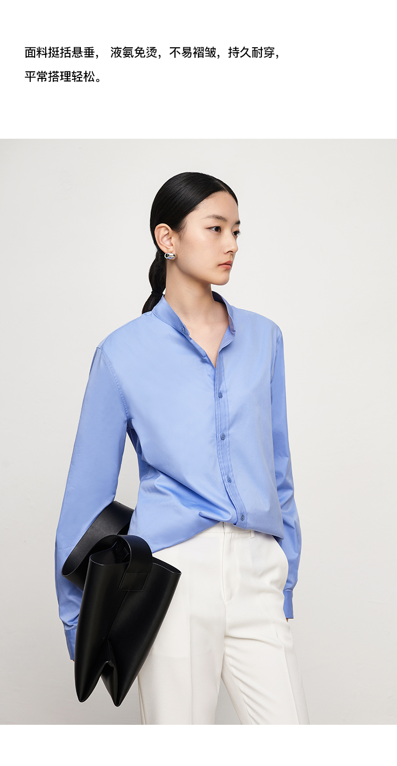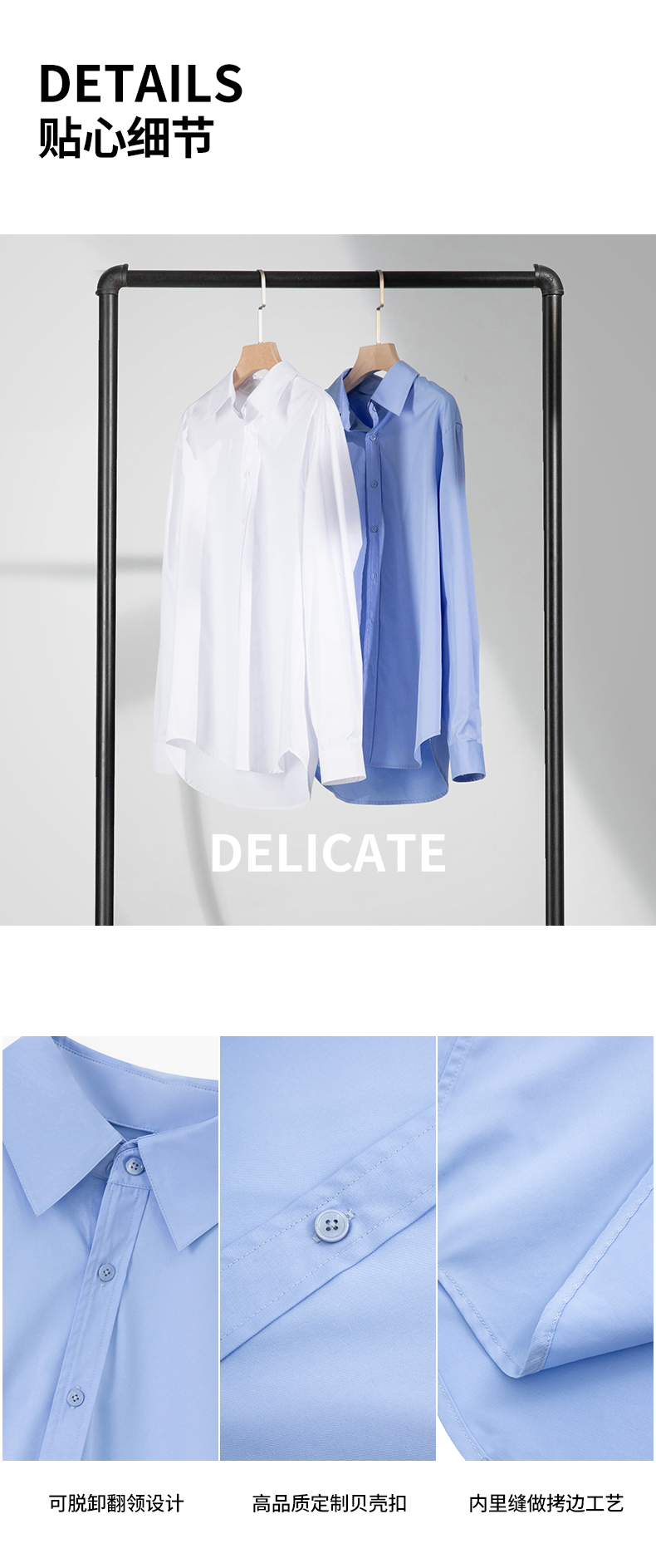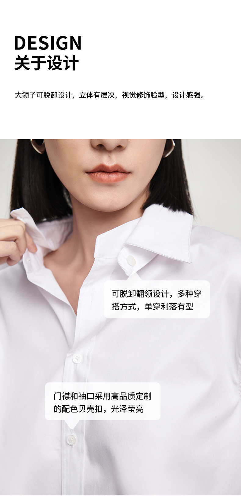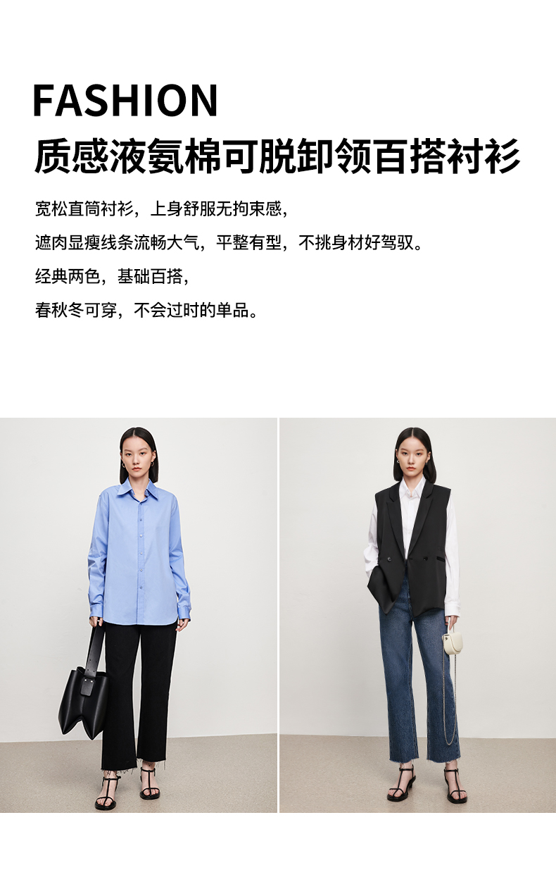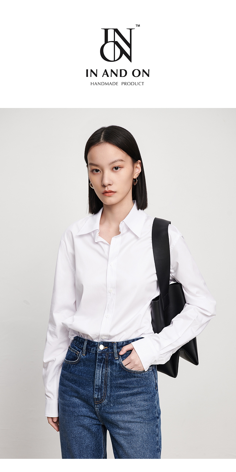 【品牌优选】IN AND ON2023春款液氨棉可脱卸双领经典衬衫女百搭直筒叠穿衬衣通勤上衣