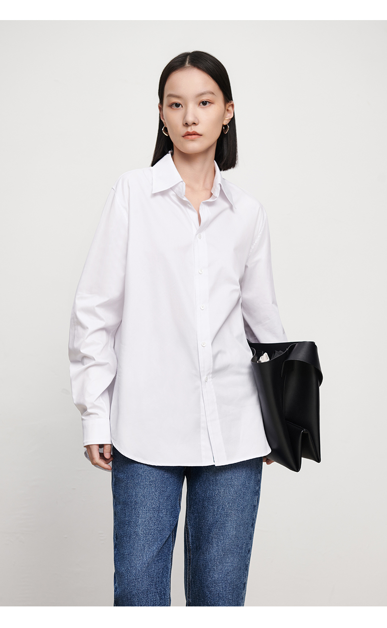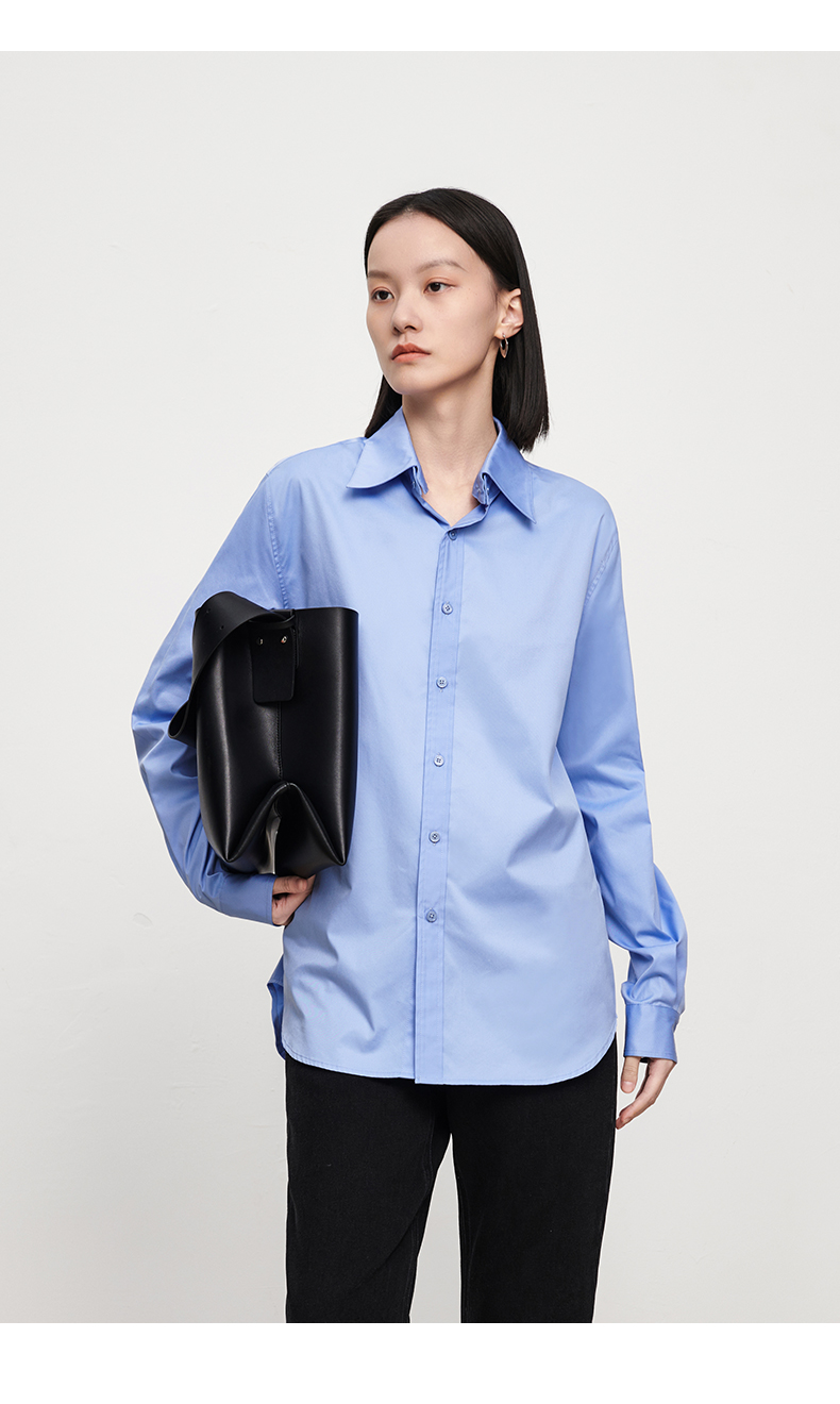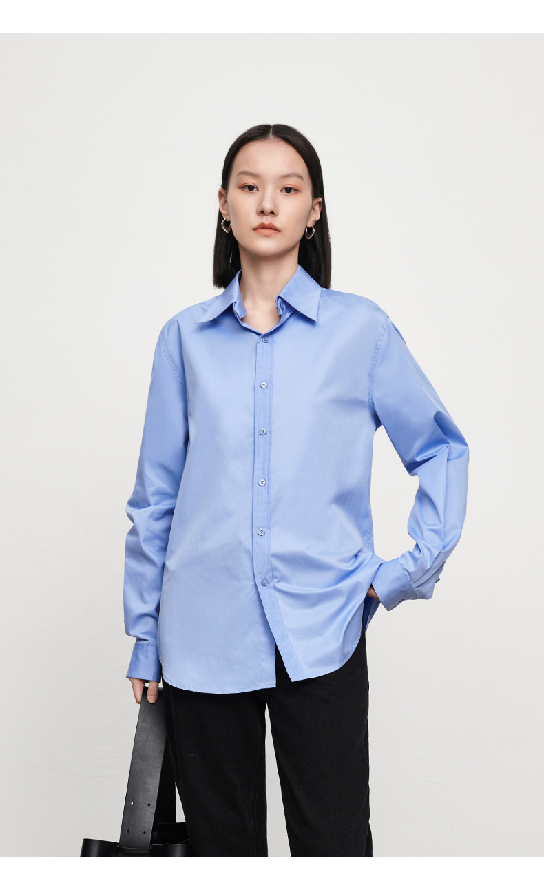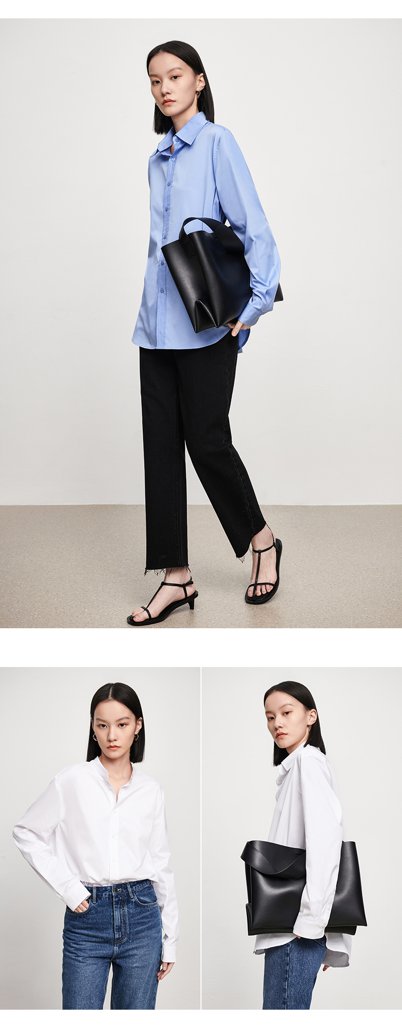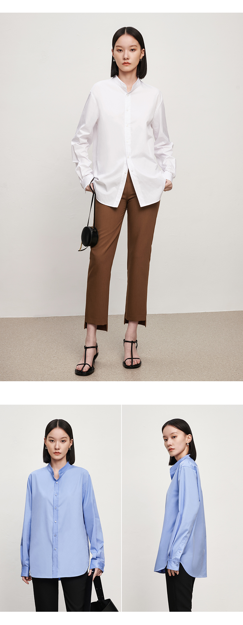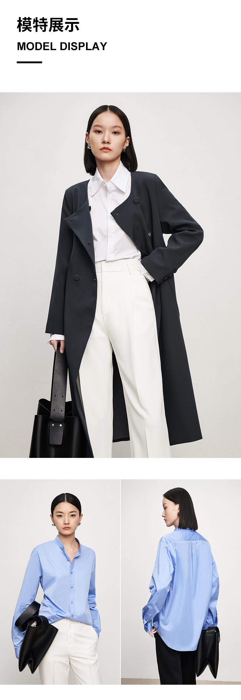 【品牌优选】IN AND ON2023春款液氨棉可脱卸双领经典衬衫女百搭直筒叠穿衬衣通勤上衣