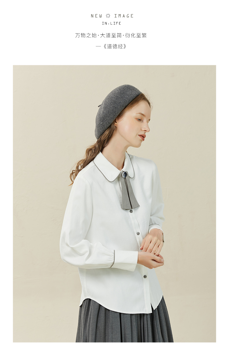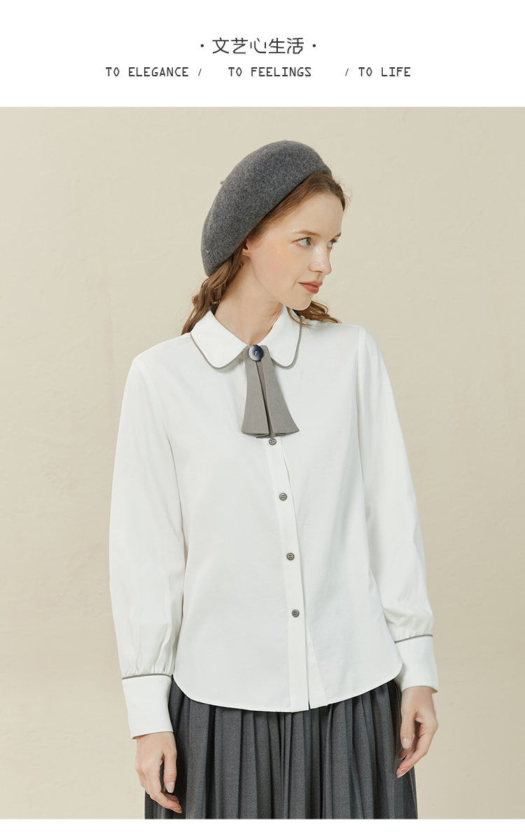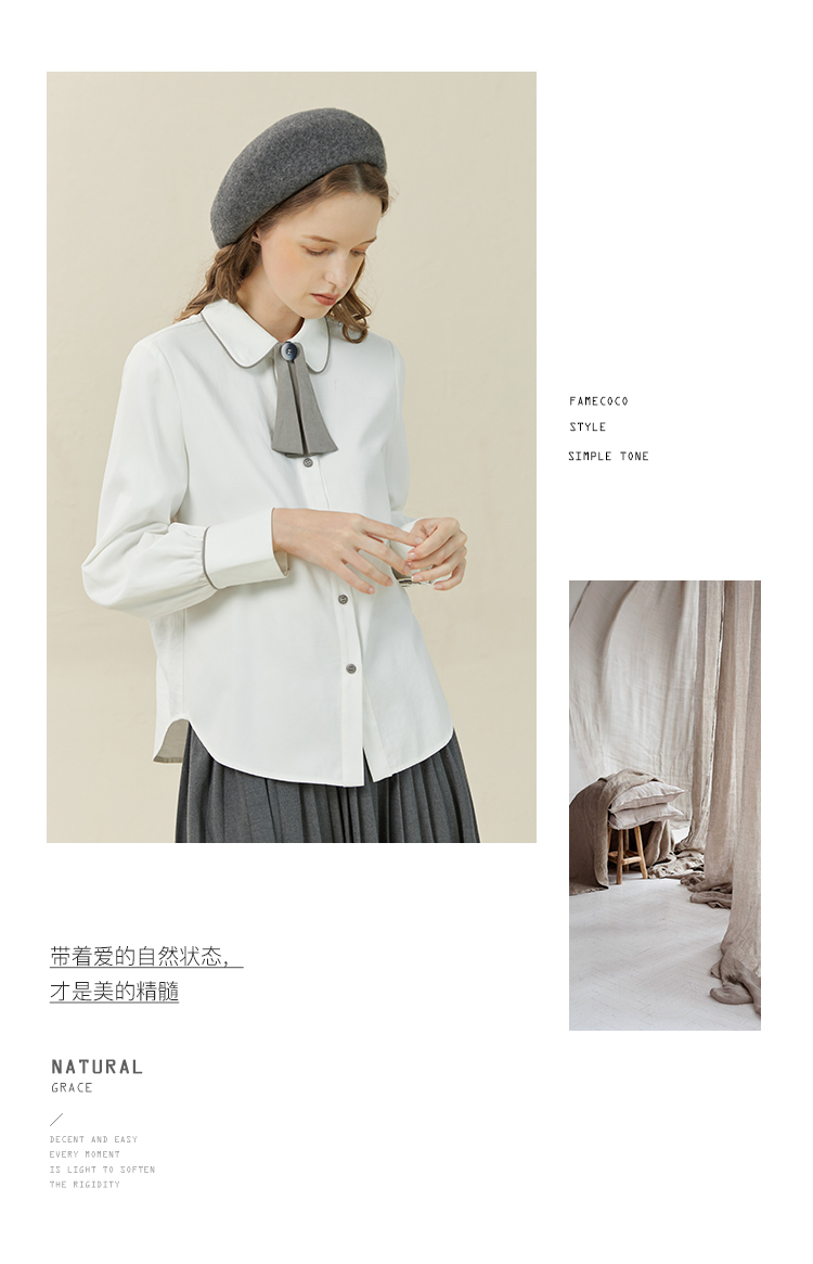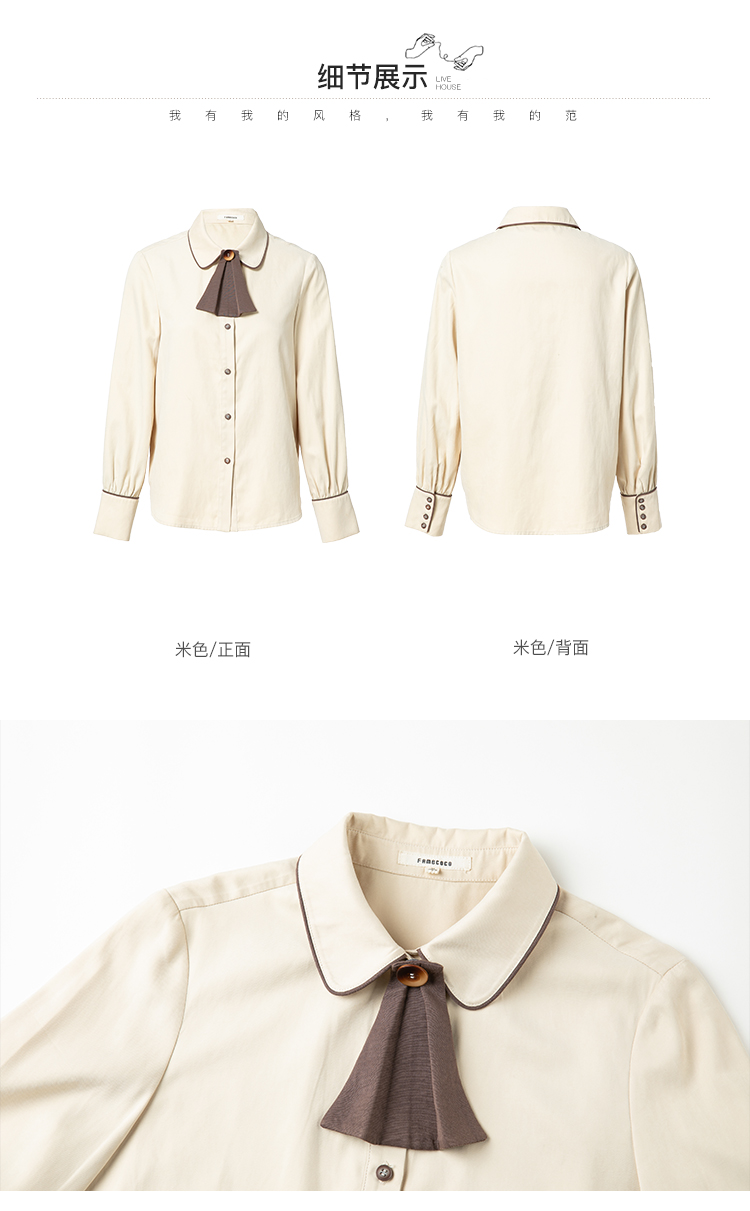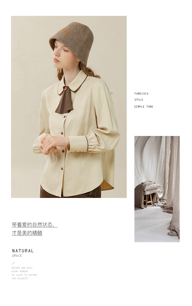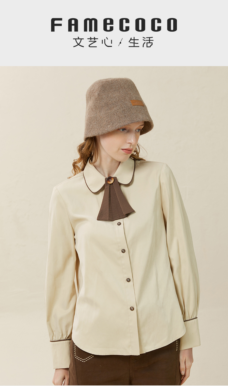 Famecoco范可儿通勤衬衫女士秋冬内搭长袖丝绒衬衣上衣F228BH003