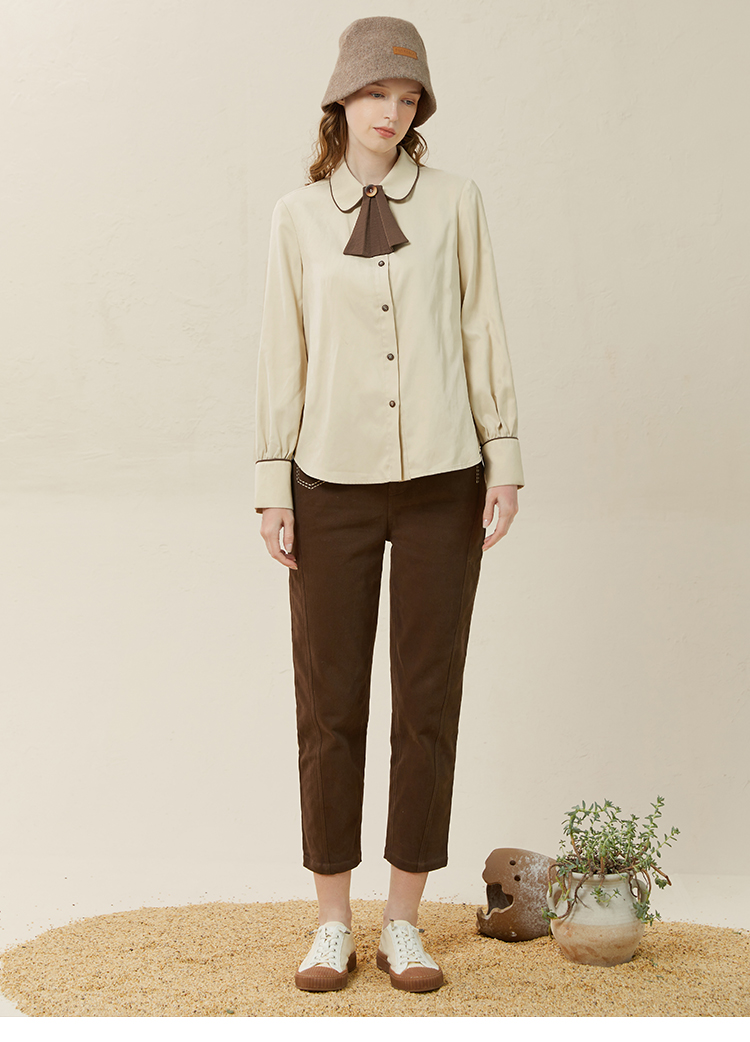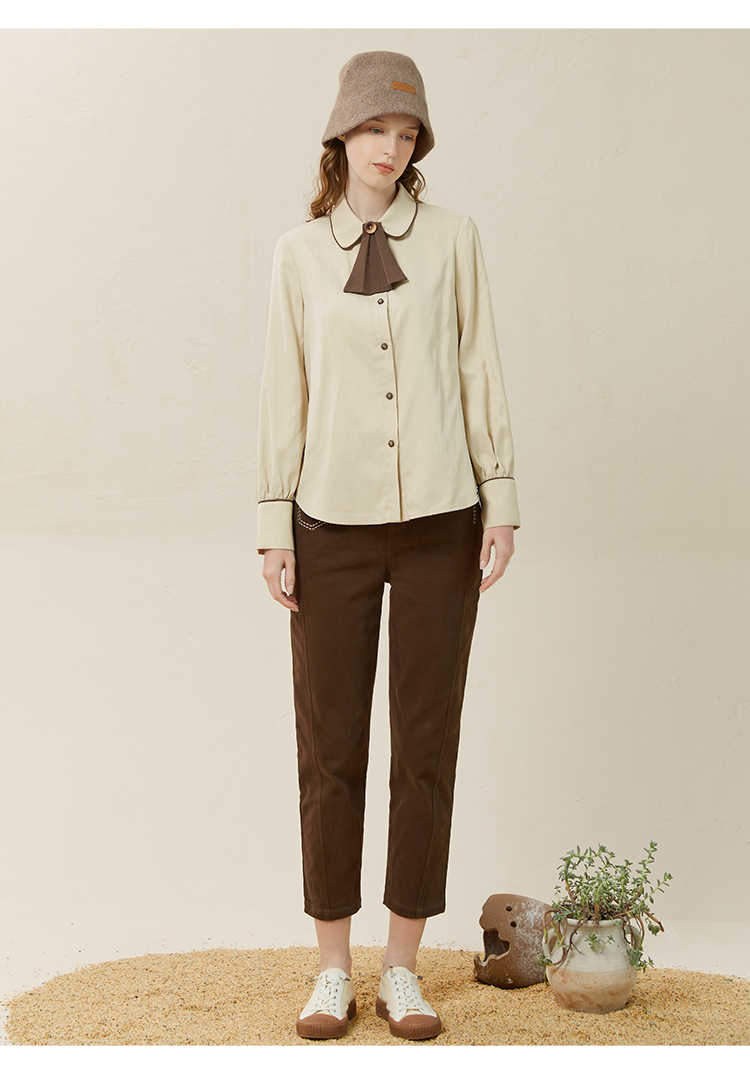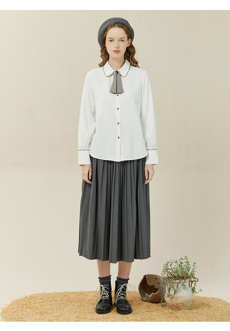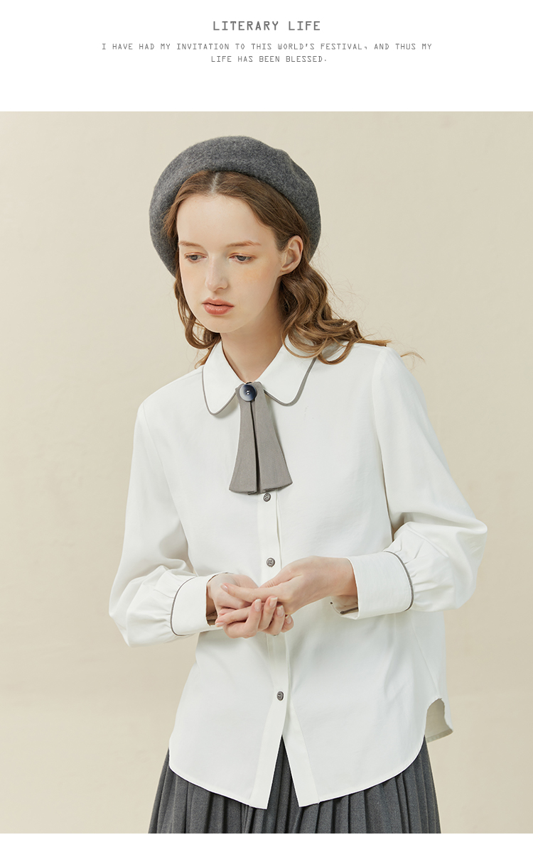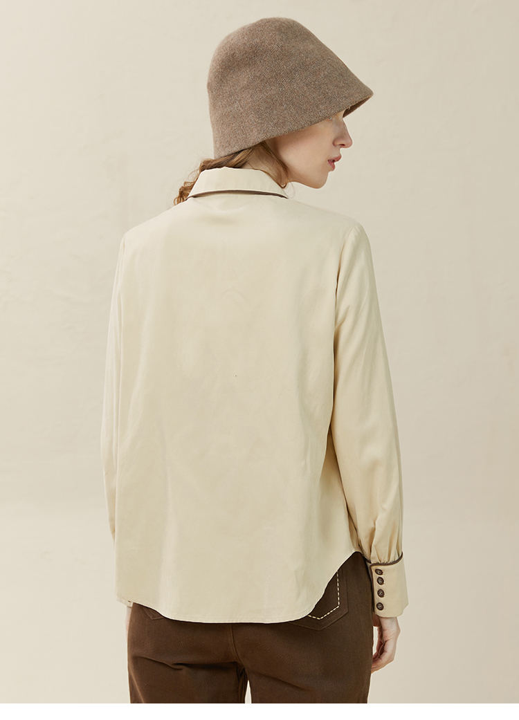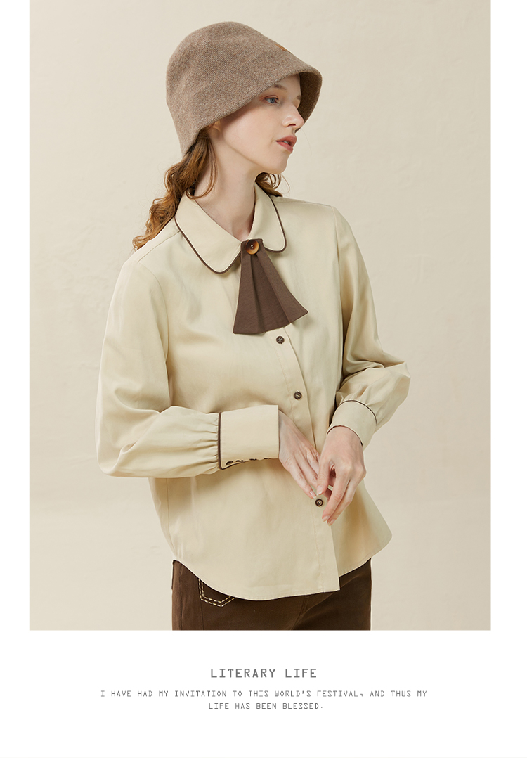 Famecoco范可儿通勤衬衫女士秋冬内搭长袖丝绒衬衣上衣F228BH003