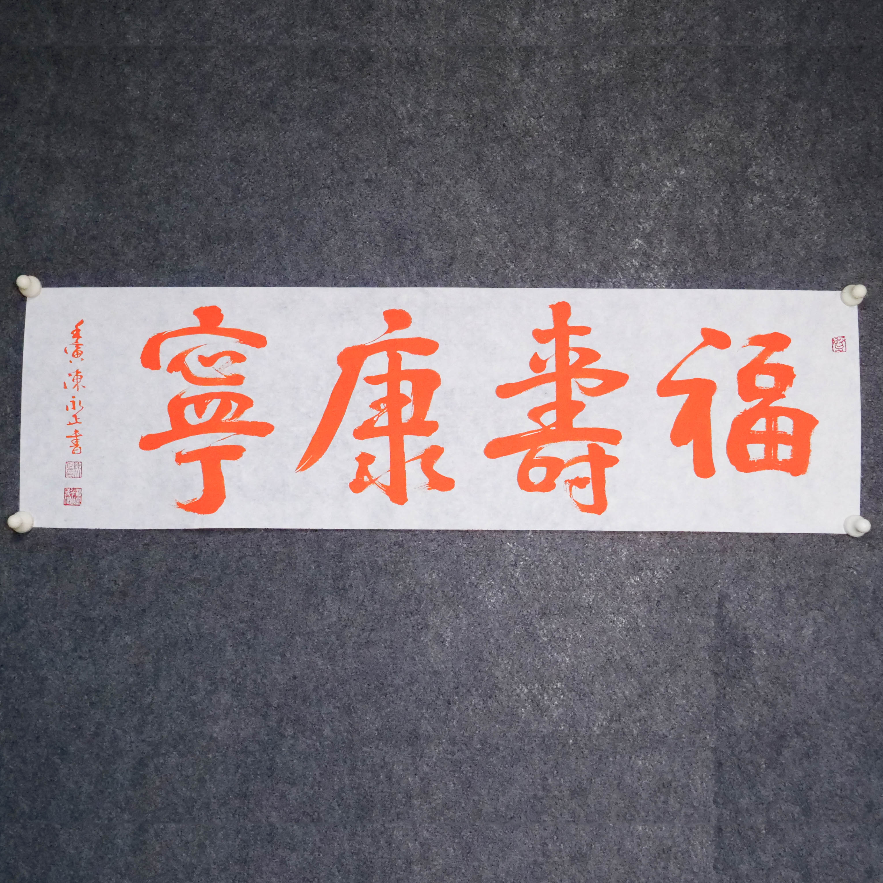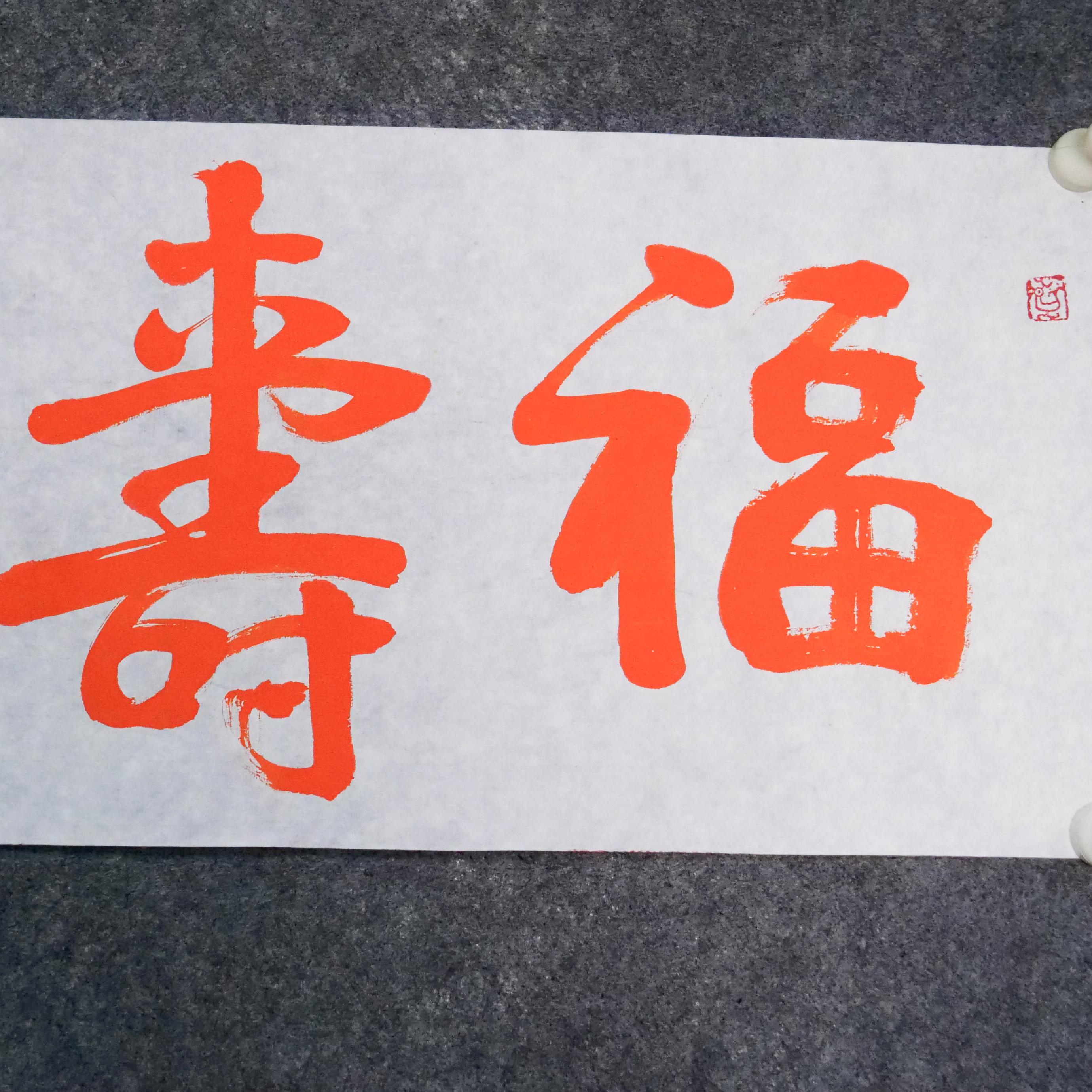 陈永正《福寿康宁》书法原作28CM*96CM 手写宣纸朱砂吉语