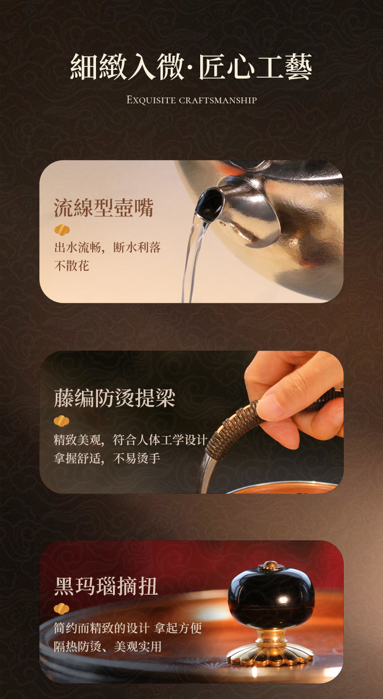 【莺歌烧旗舰店】飞龙在天 铜胎铁面金边茶托