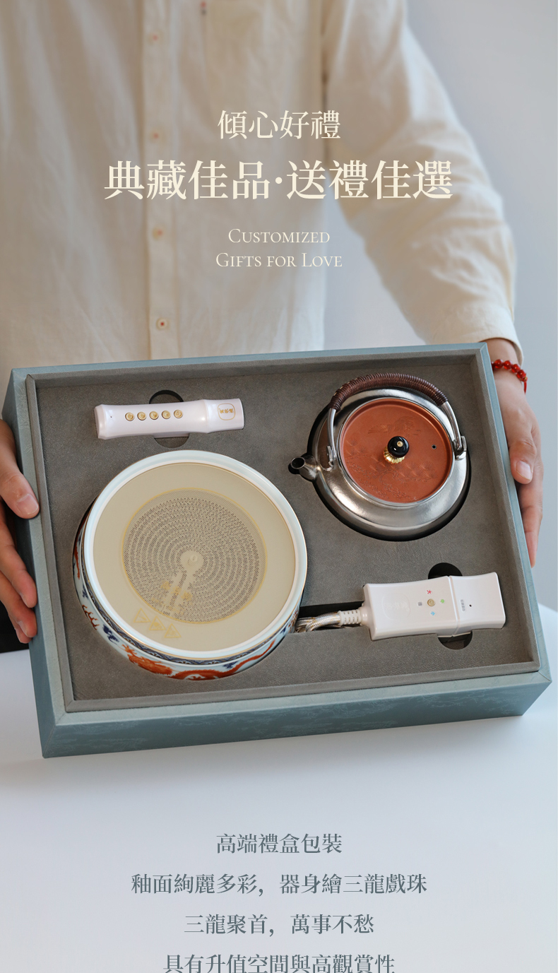 【莺歌烧旗舰店】青花龙纹福禄礼赠套装