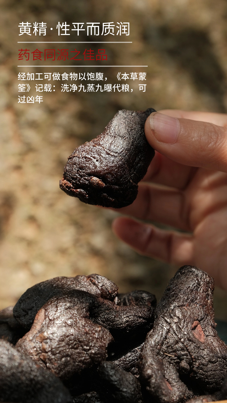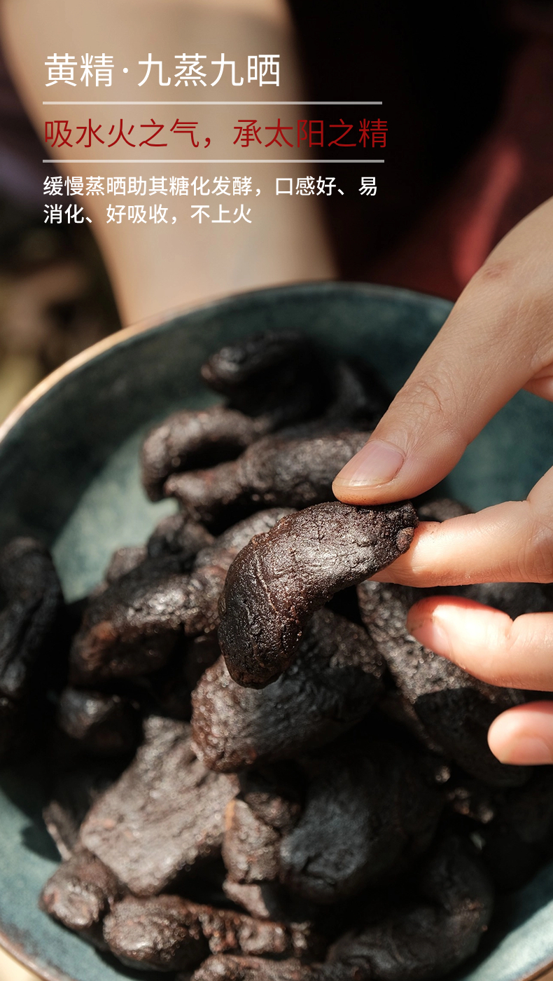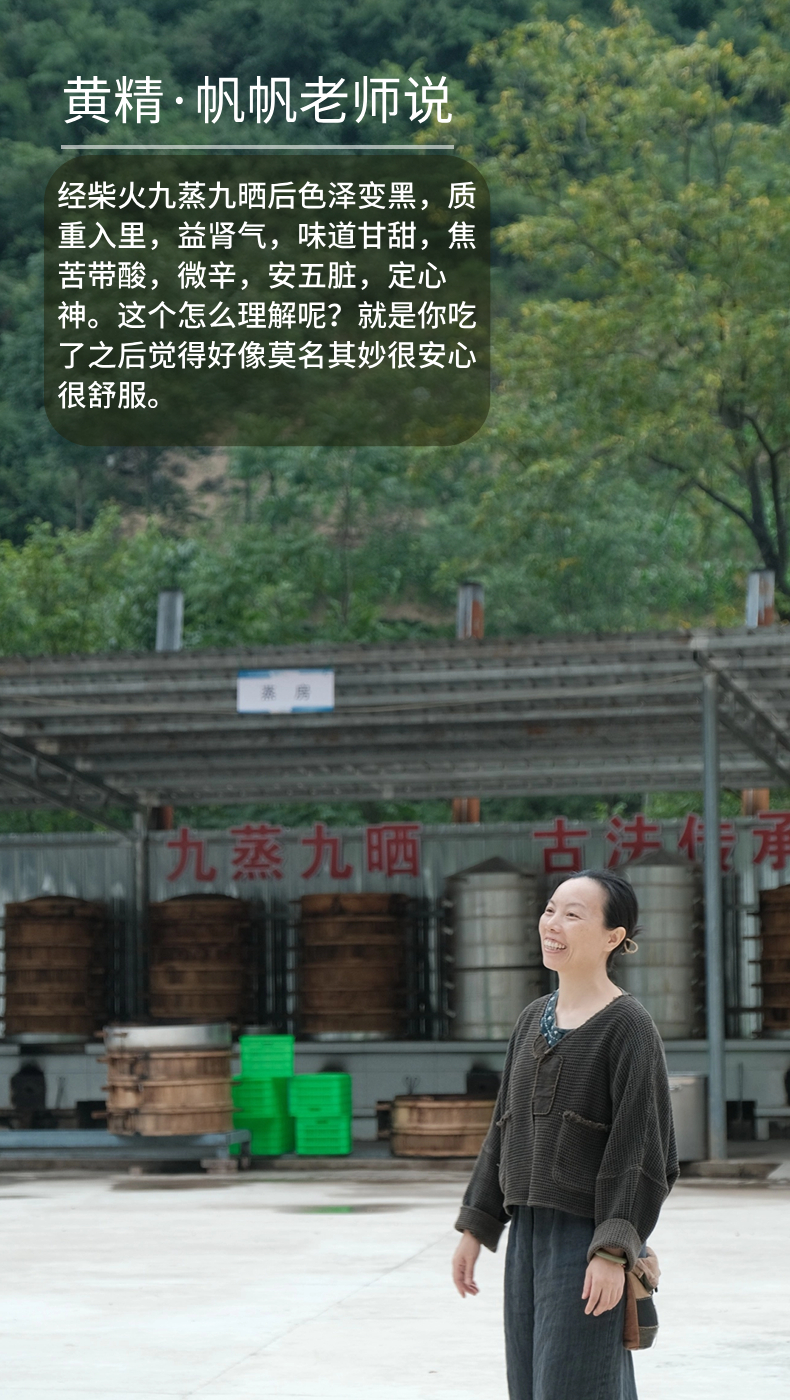 柴火制九蒸九晒黄精,安五脏,养脾阴,生脾阳,助脾胃运化,助排便顺畅成型,清体毒