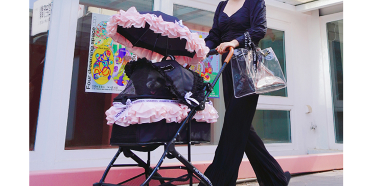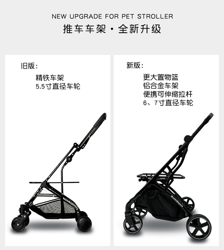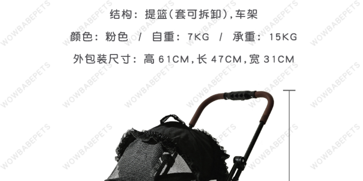 Wowbabepets赫本风小型宠物外出四轮推车轻便可折叠狗狗猫咪通用