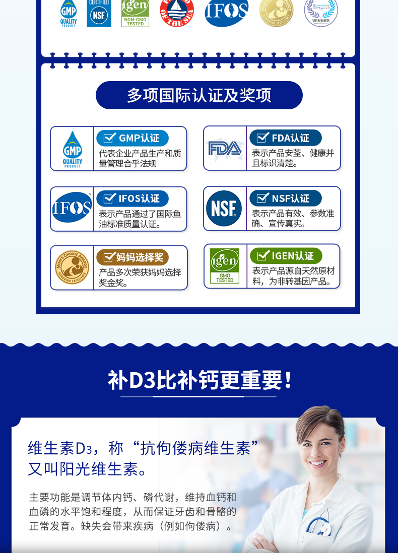(1)维生素D3补充剂1000单位的,1瓶5ml=180滴,可吃6个月