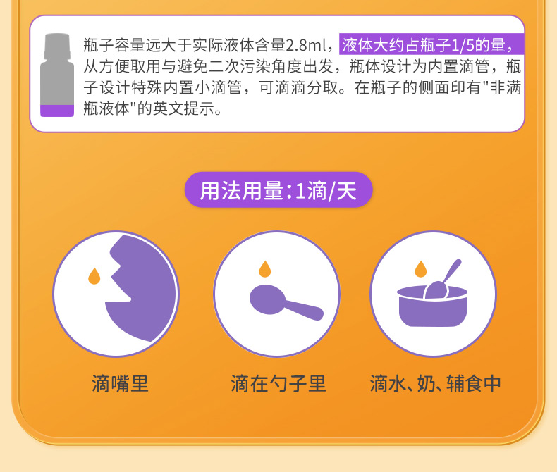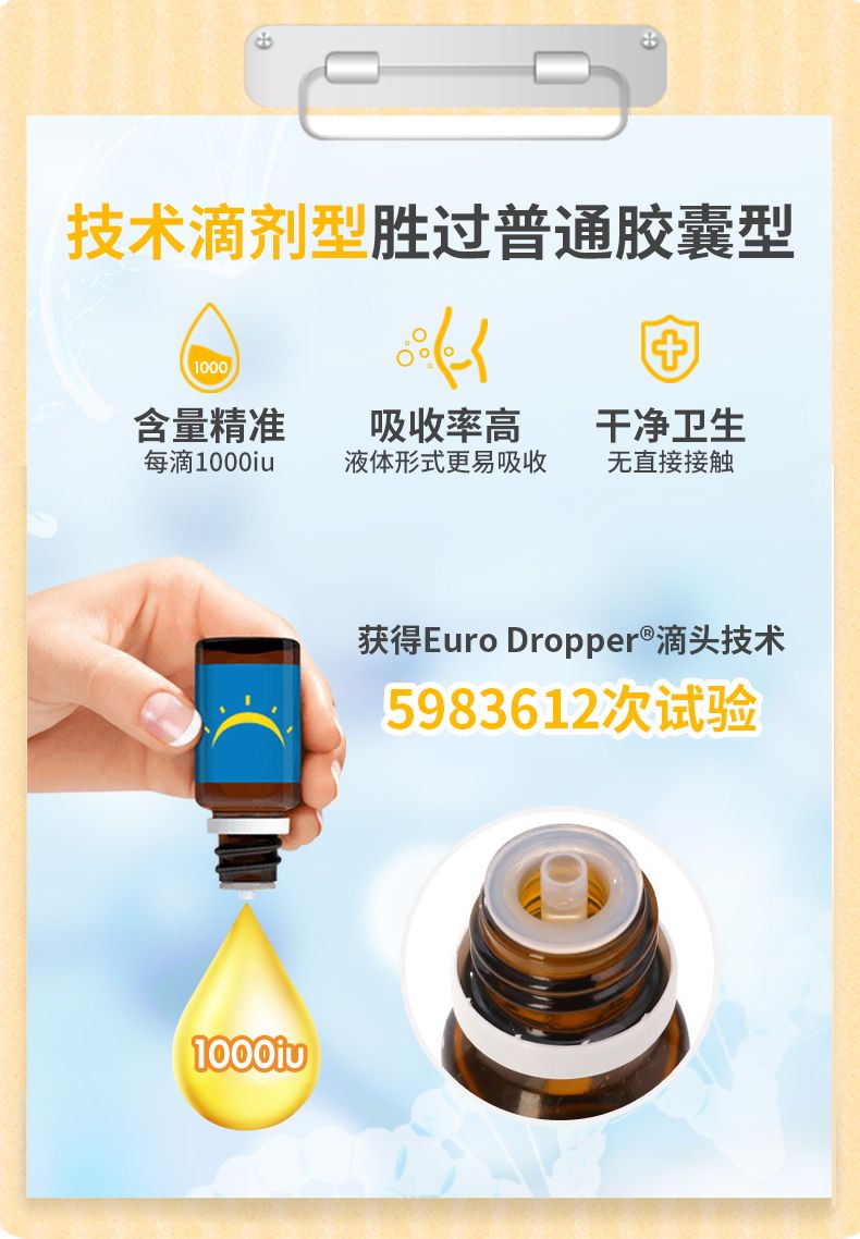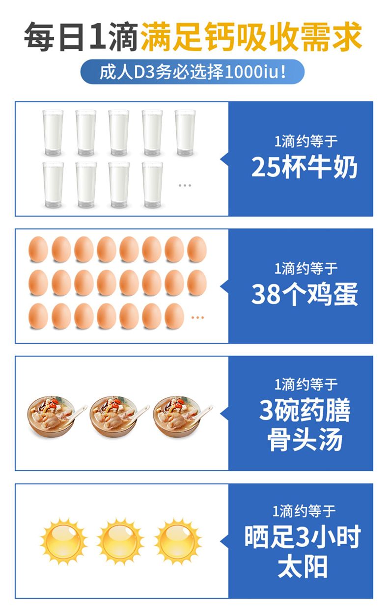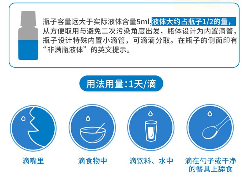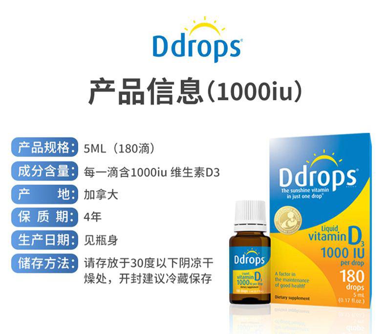 每滴含有:1000个国际单位的维生素D3。