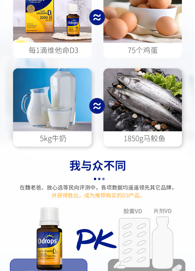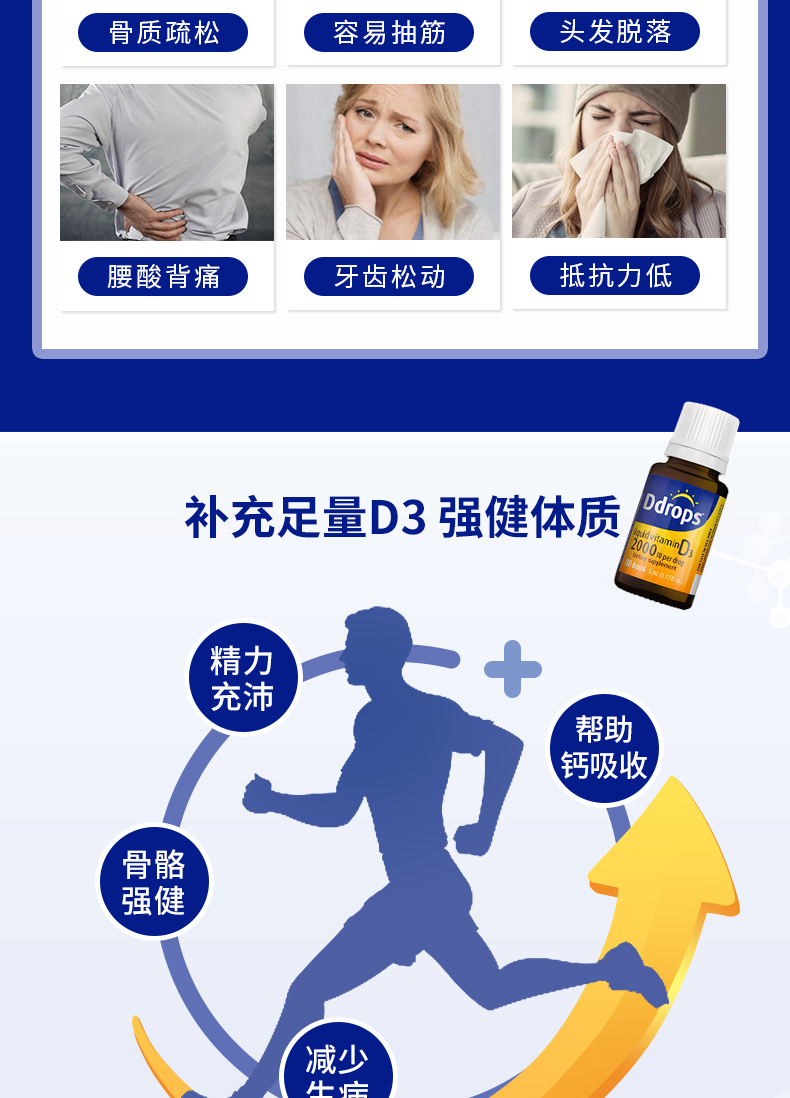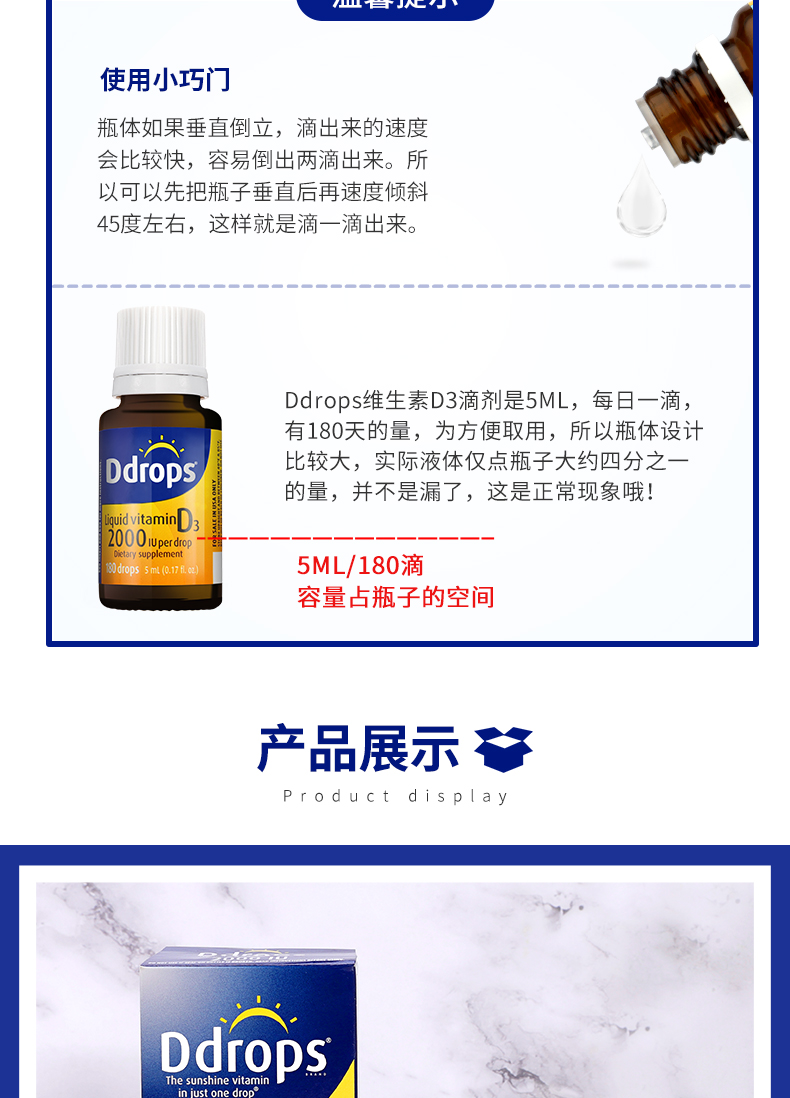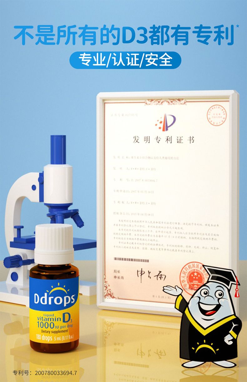 每滴含有:1000个国际单位的维生素D3。