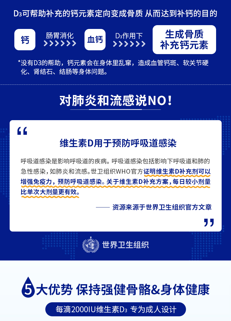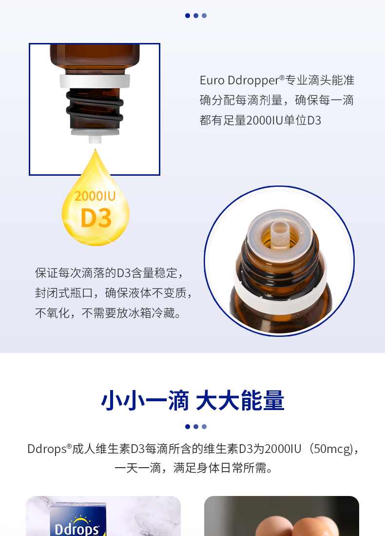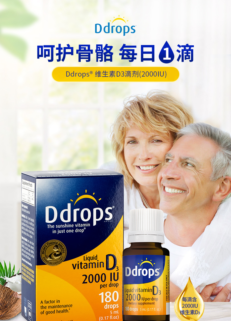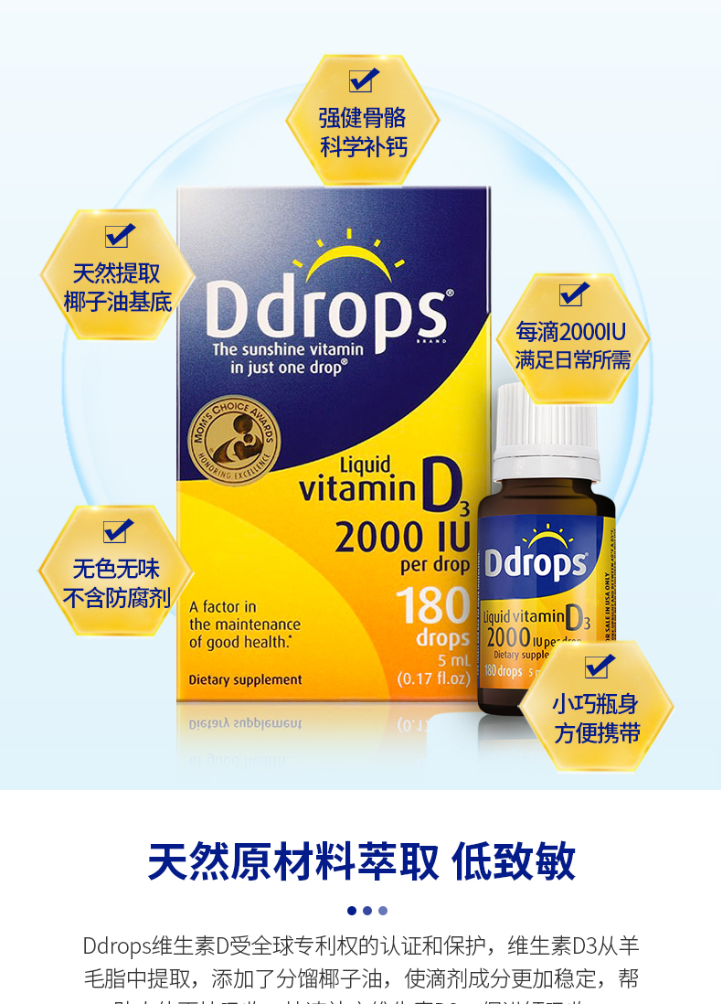 每滴含有:2000个国际单位的维生素D3。