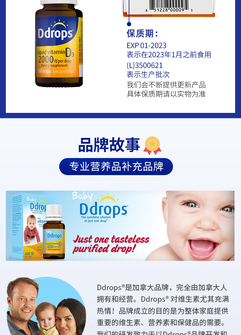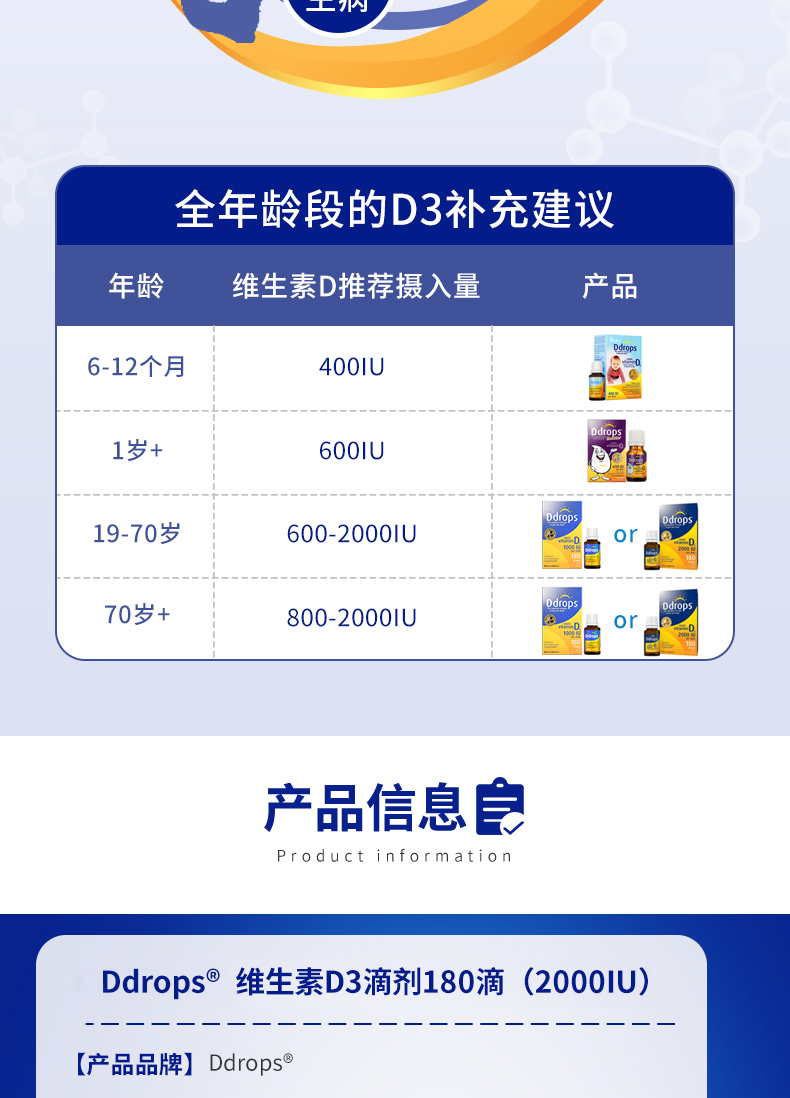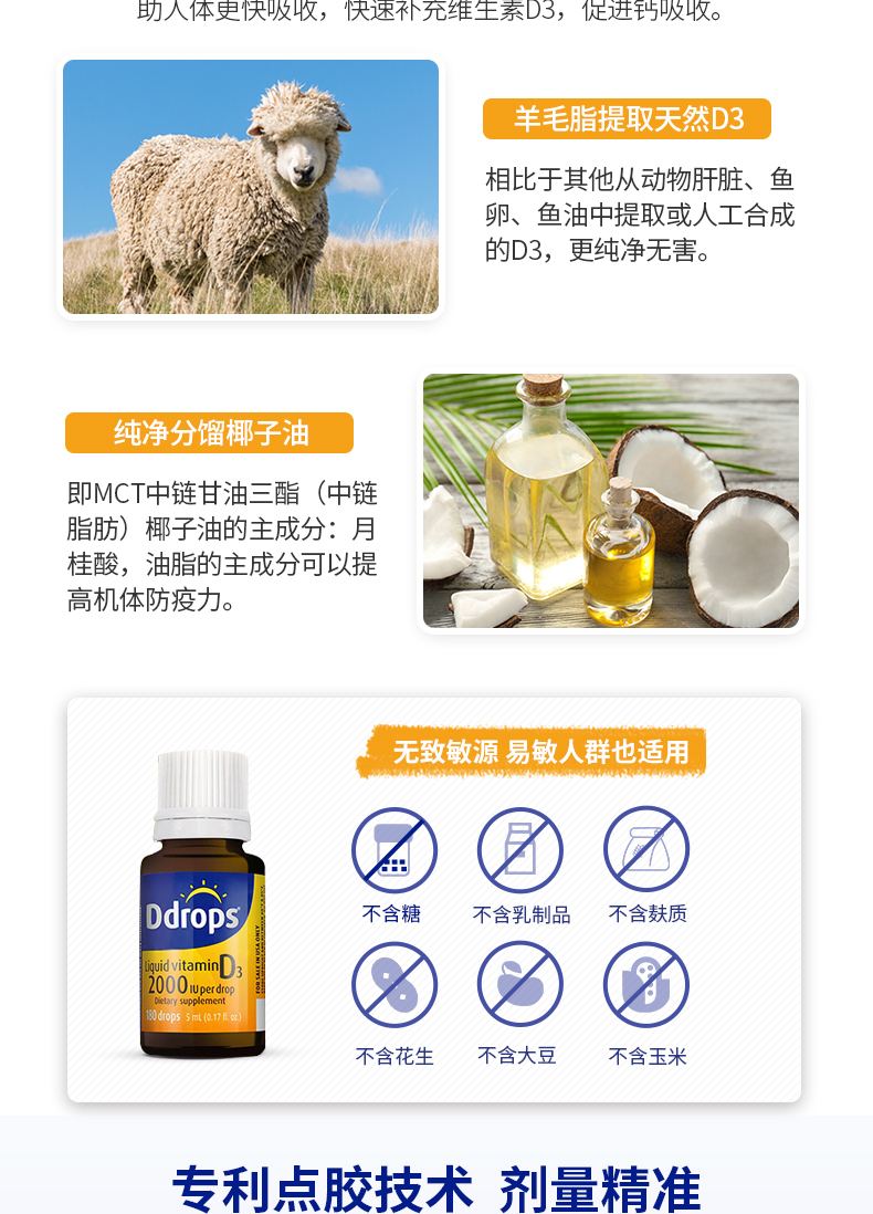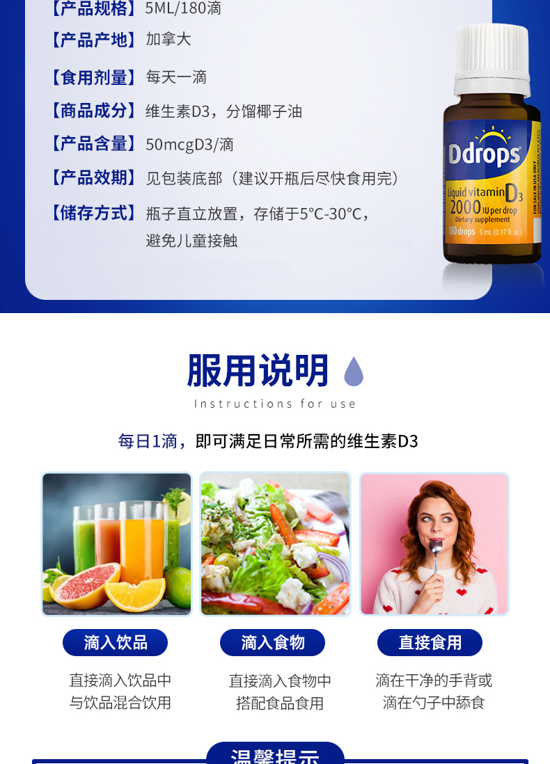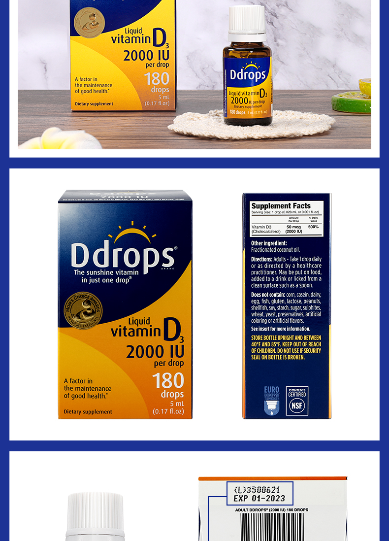 每滴含有:2000个国际单位的维生素D3。