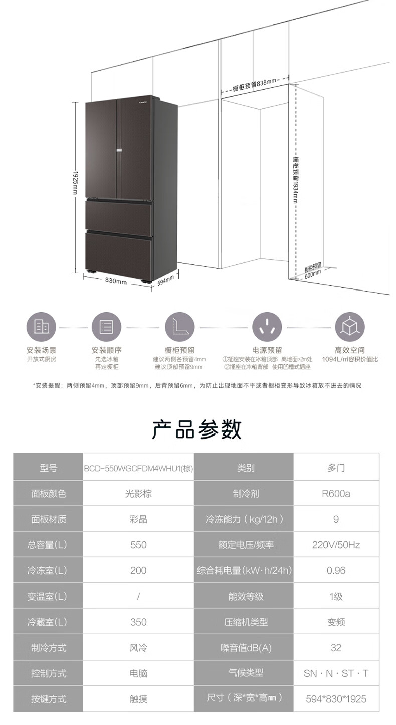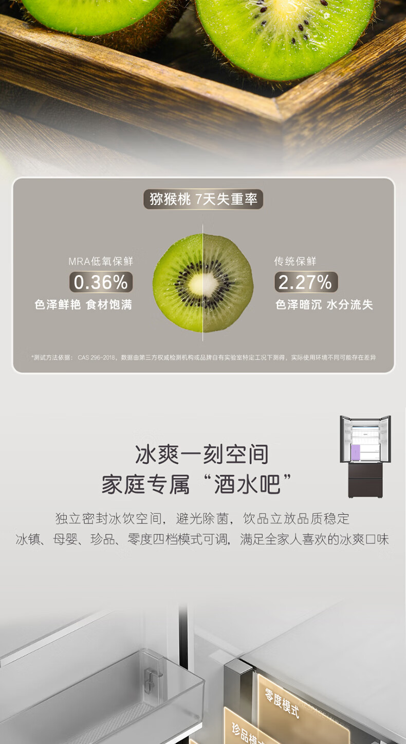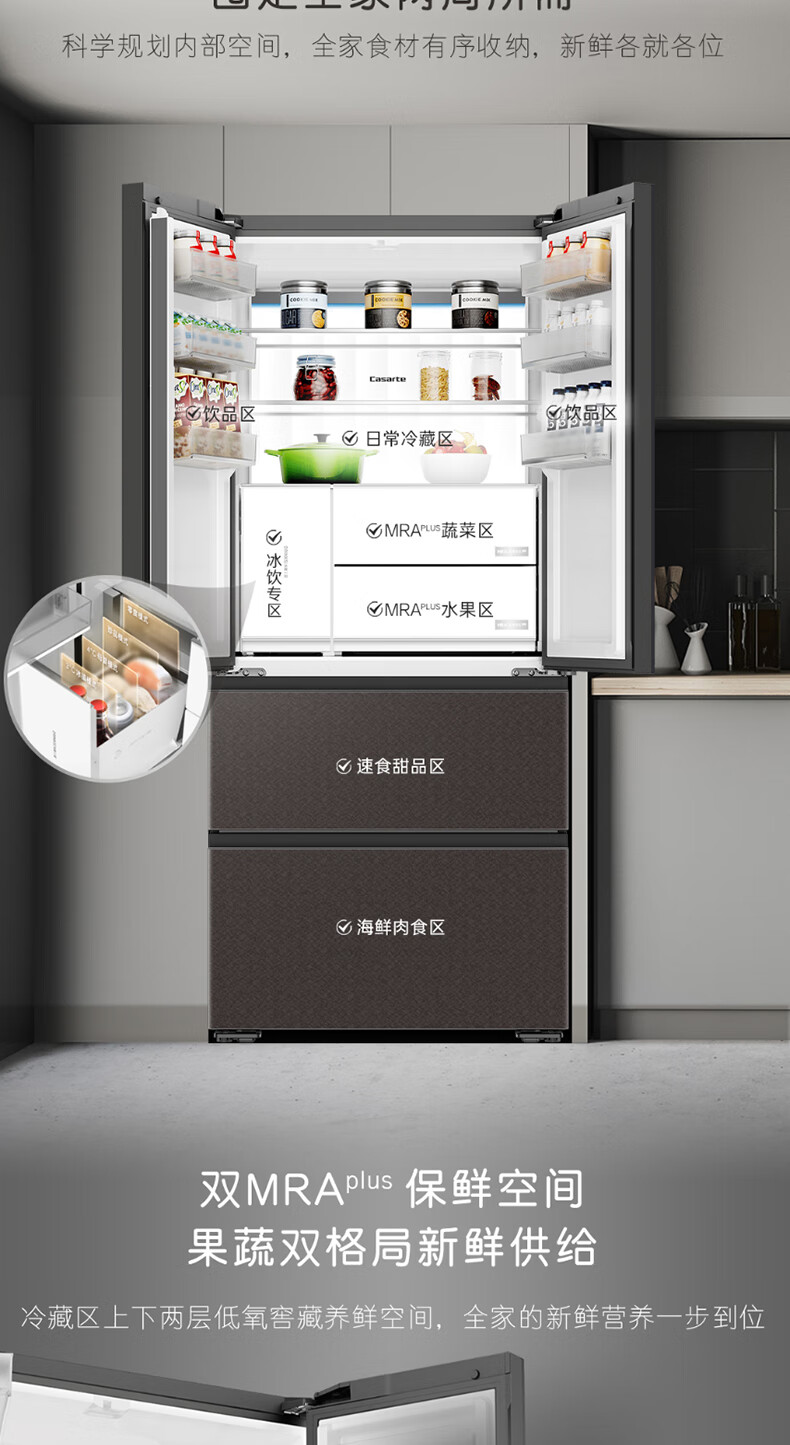 卡萨帝卡萨帝冰箱550升MRA 低氧窖藏养鲜 四档可调冰爽空间 超薄零嵌设计BCD-550WGCFDM4WHU1(棕)