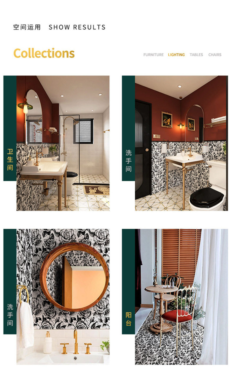 小洗手间花砖瓷砖复古浴室卫生间厨房网红墙砖300x300玫瑰地砖 商品图4