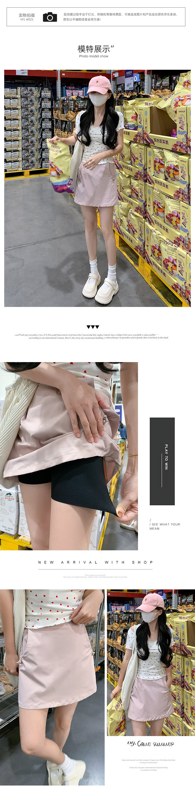 【YW】无忧购粉色速干工装半身裙女夏季2025新款显瘦冰丝a字短裙防走光包臀裙2416(截单后3-5天发货)