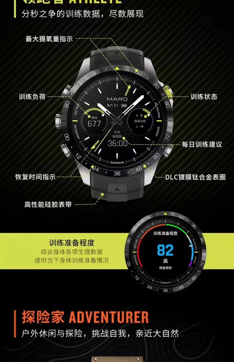 GARMIN佳明手表 MARQ Athlete(Gen2)领跑者 高端手表战术功能脉搏血氧商务腕表