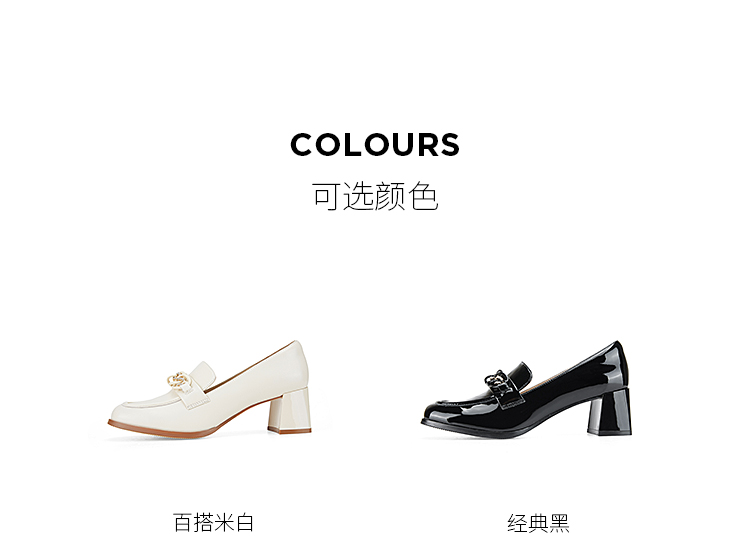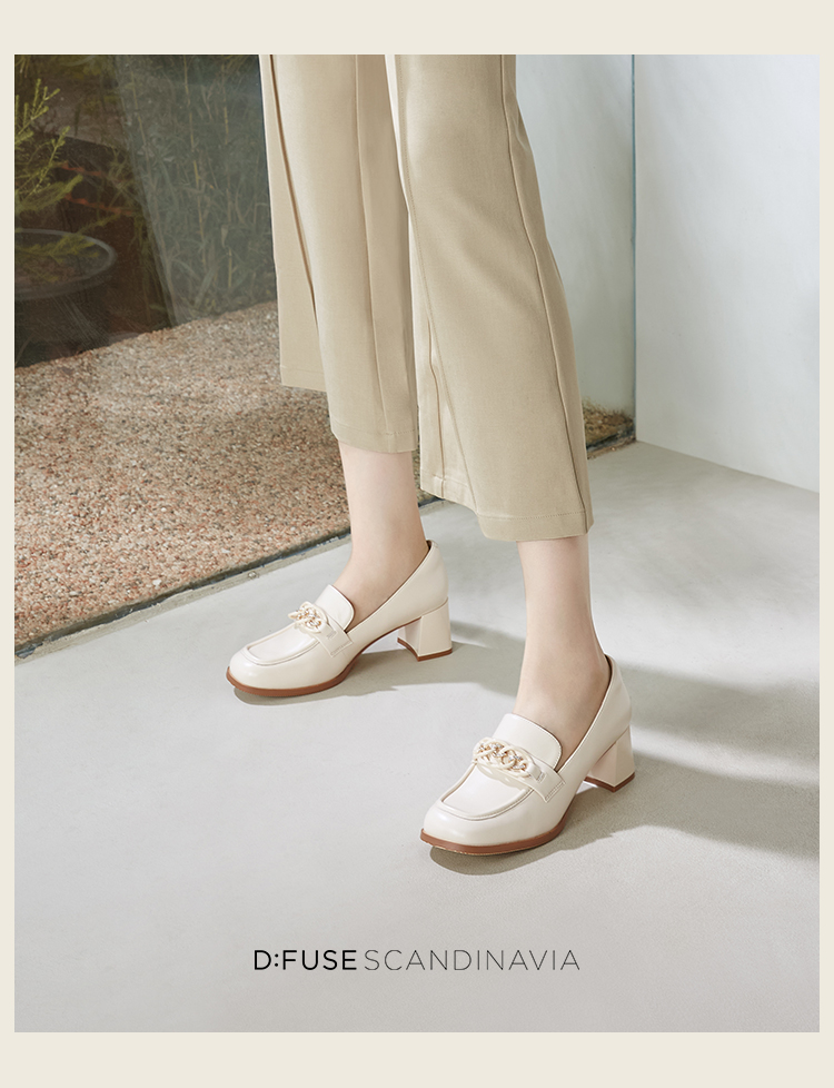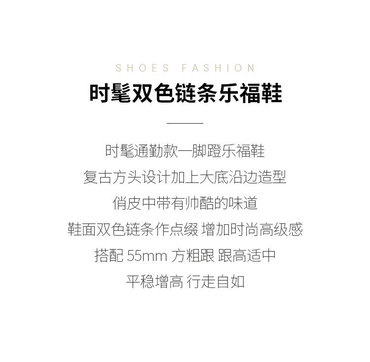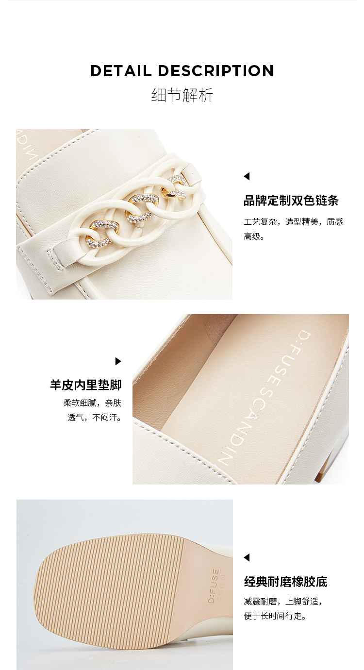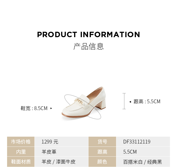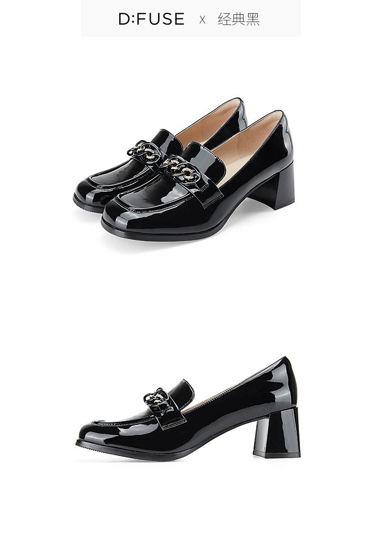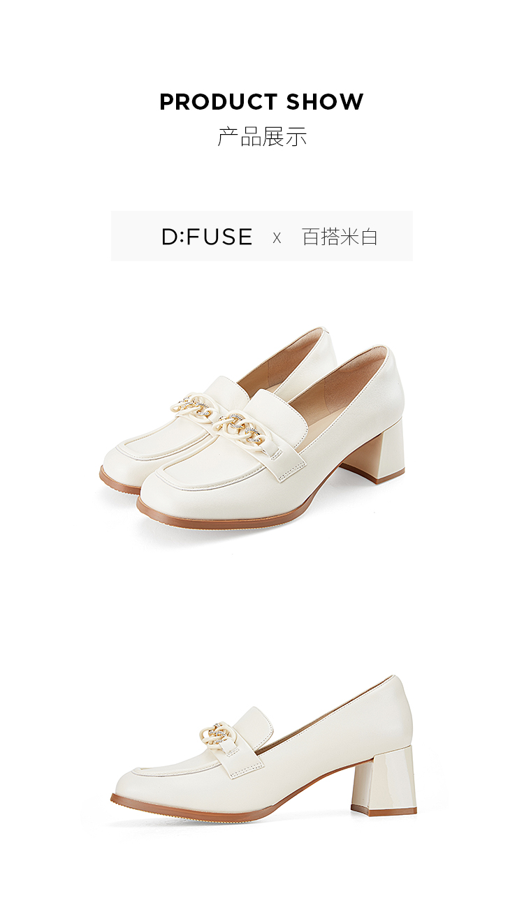 Dfuse迪芙斯秋季新款方头双色链条通勤粗跟乐福鞋DF33112119