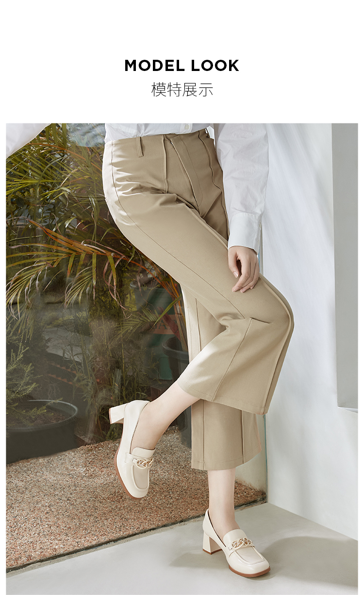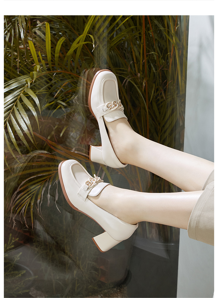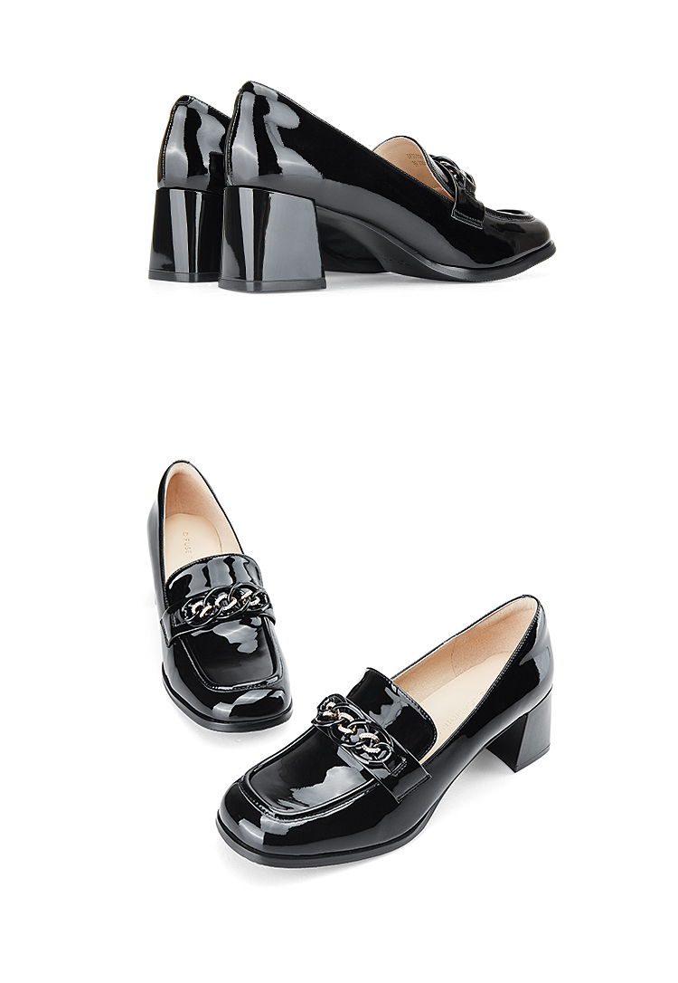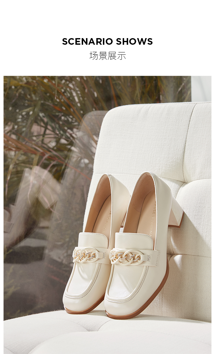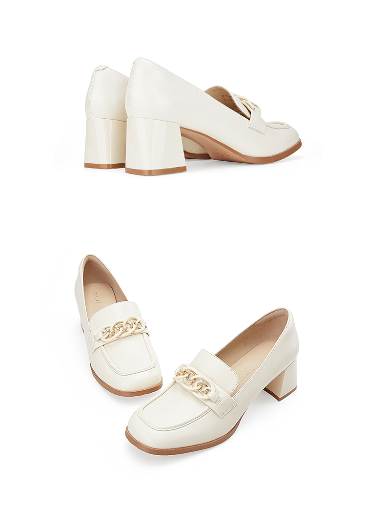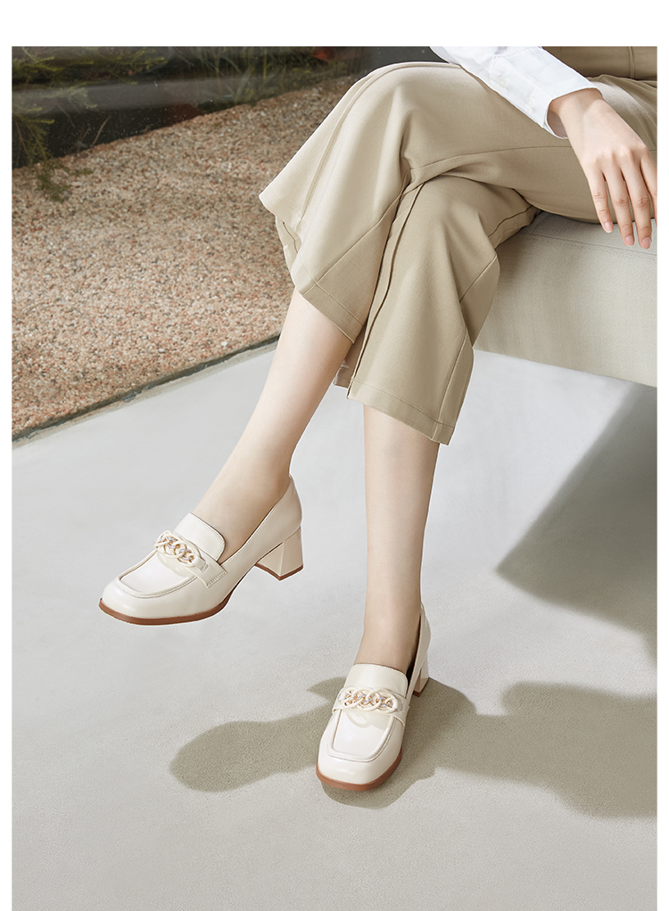Dfuse迪芙斯秋季新款方头双色链条通勤粗跟乐福鞋DF33112119