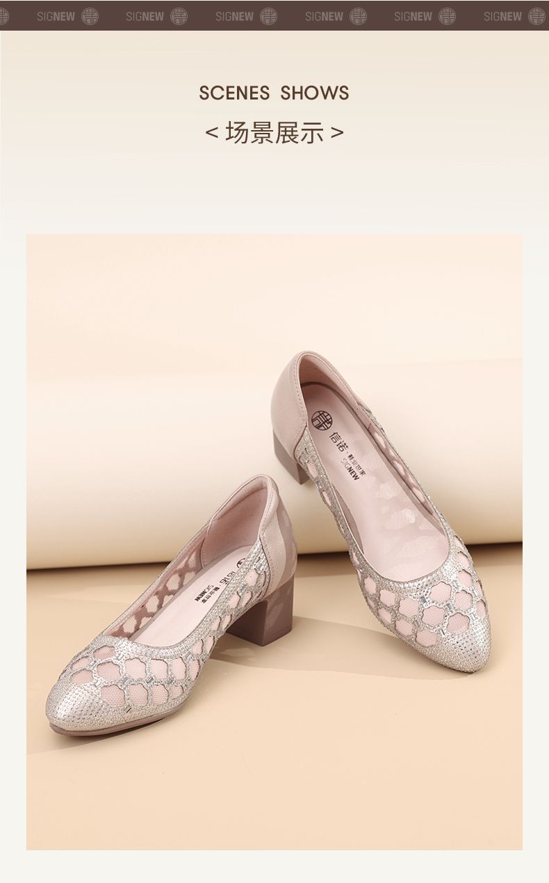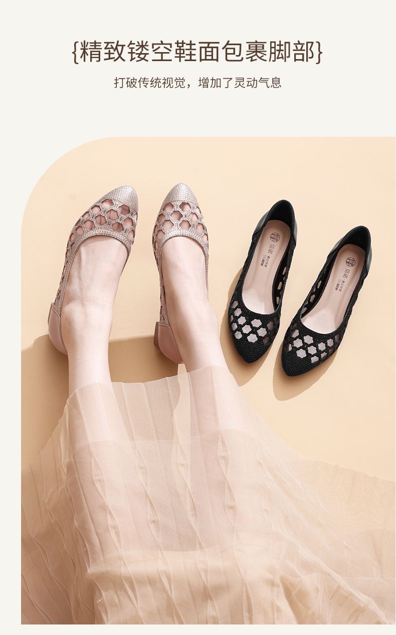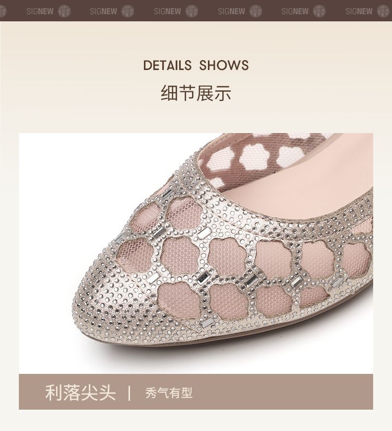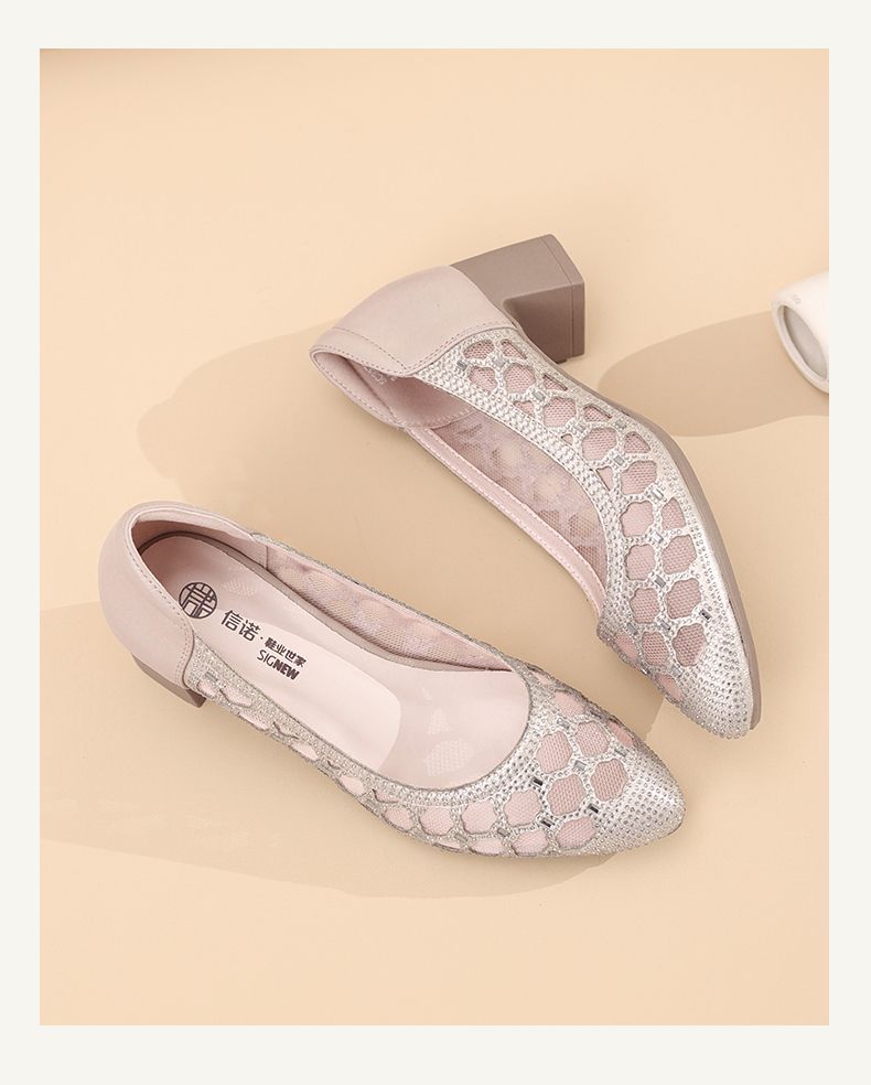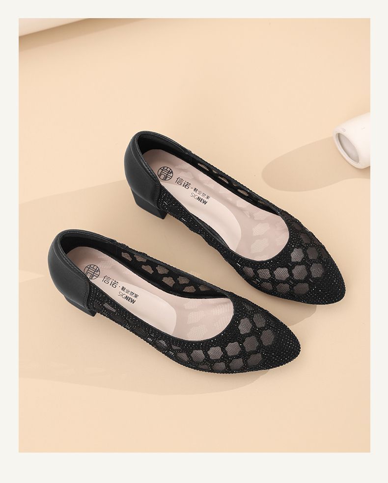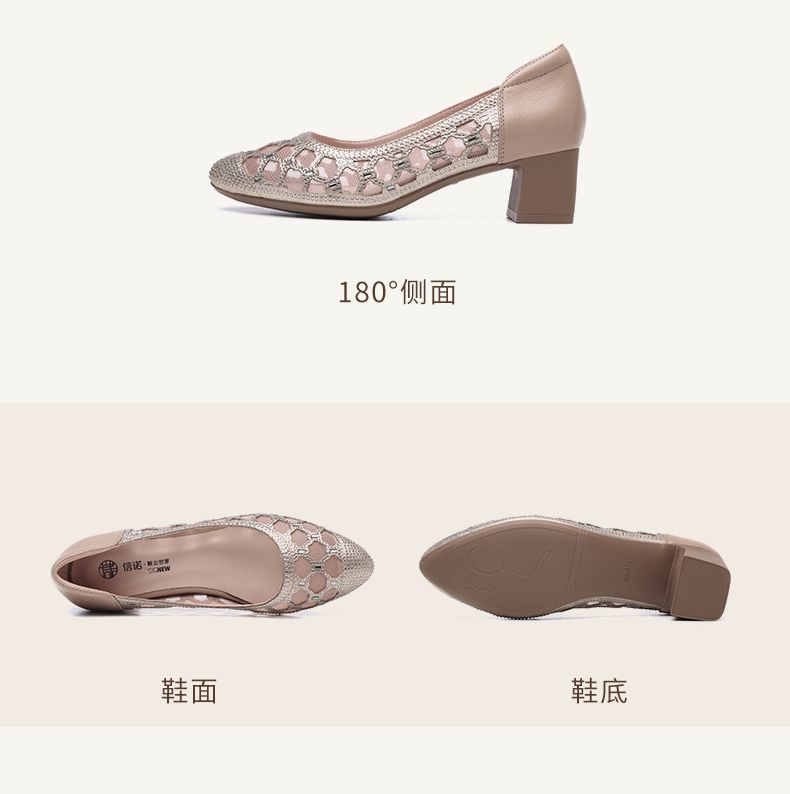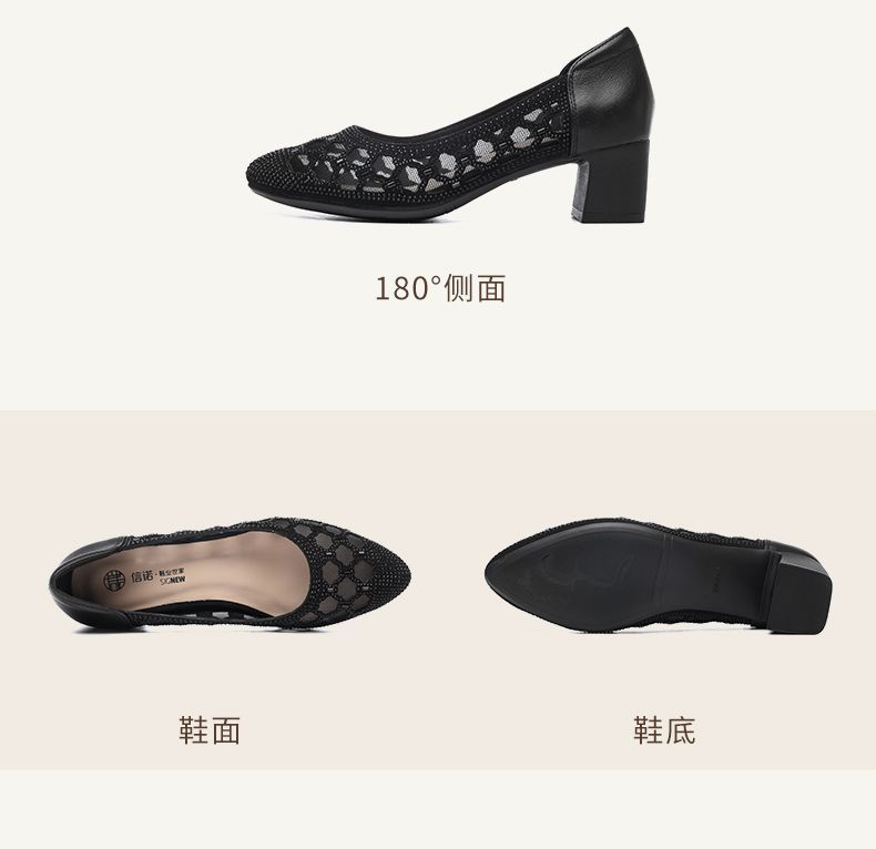 信诺软底女鞋2025新款夏舒适透气女凉鞋时尚镂空网纱水钻女士单鞋5C3273-1