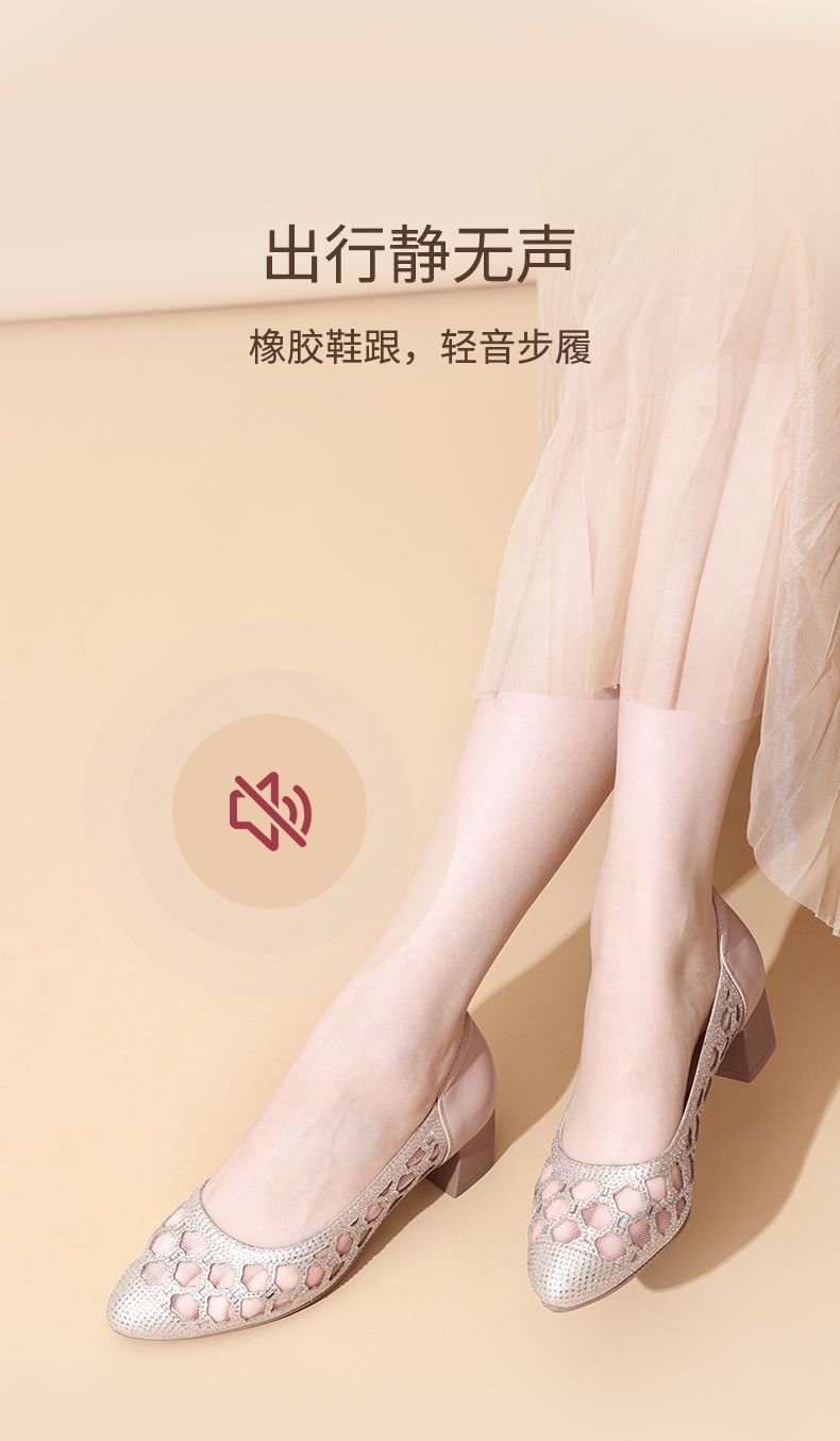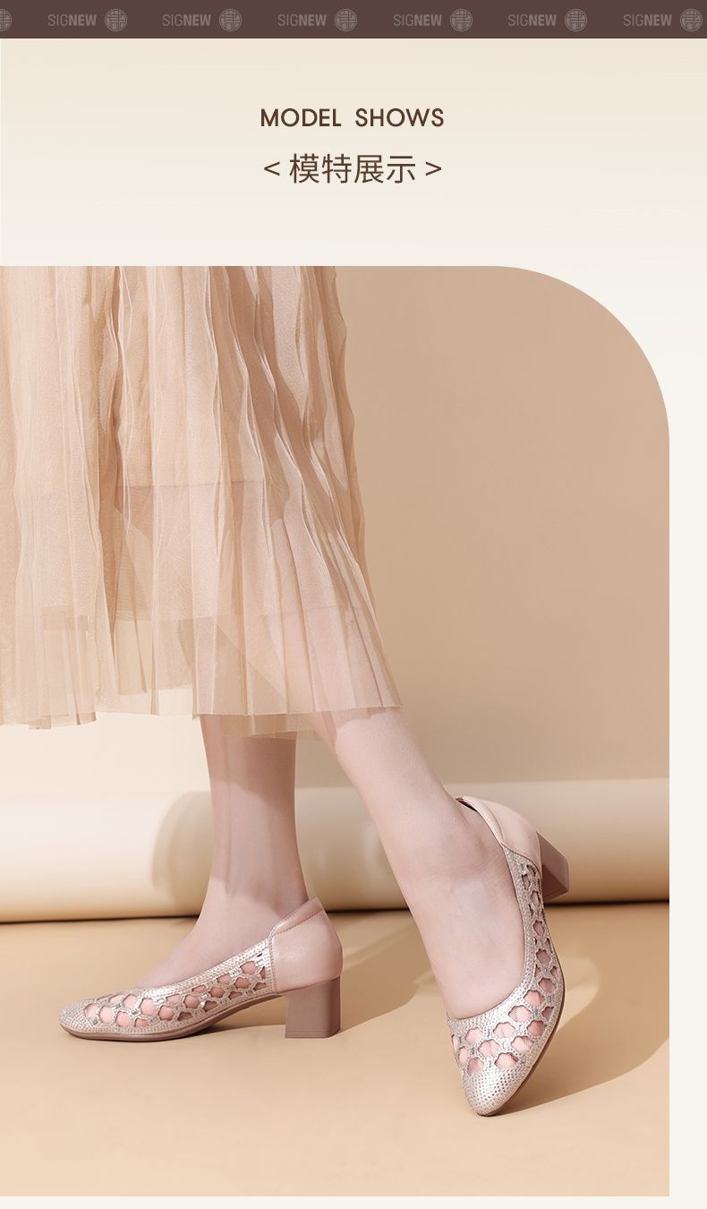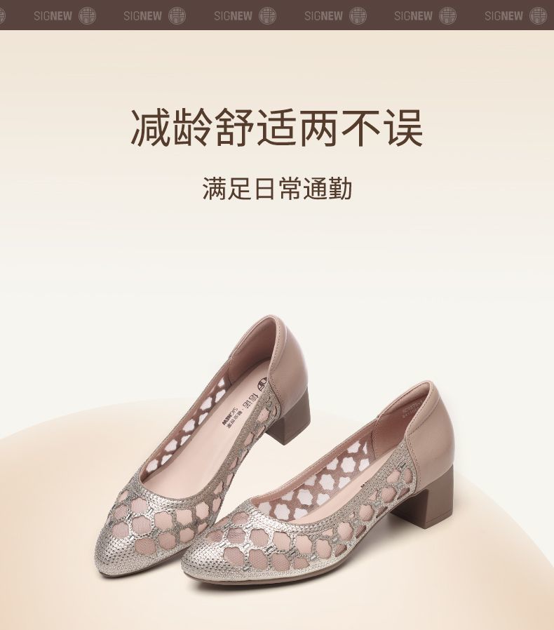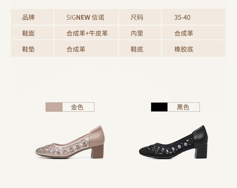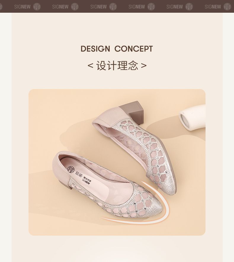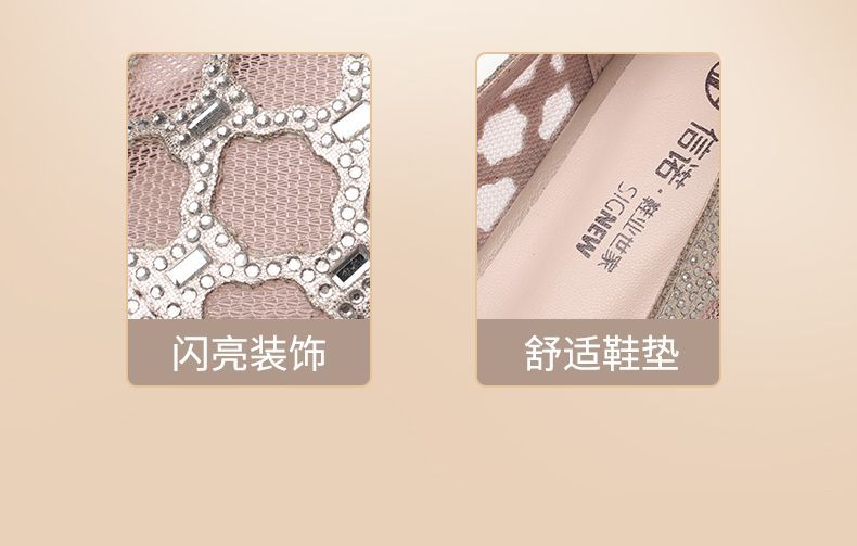 信诺软底女鞋2025新款夏舒适透气女凉鞋时尚镂空网纱水钻女士单鞋5C3273-1