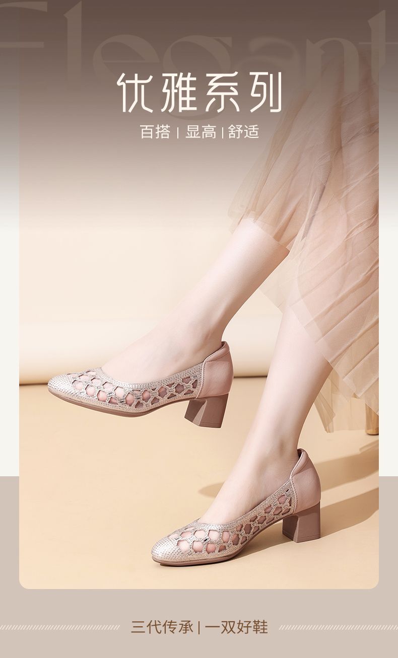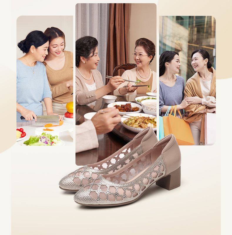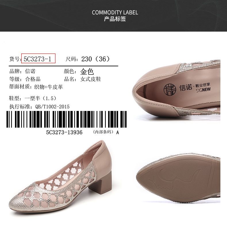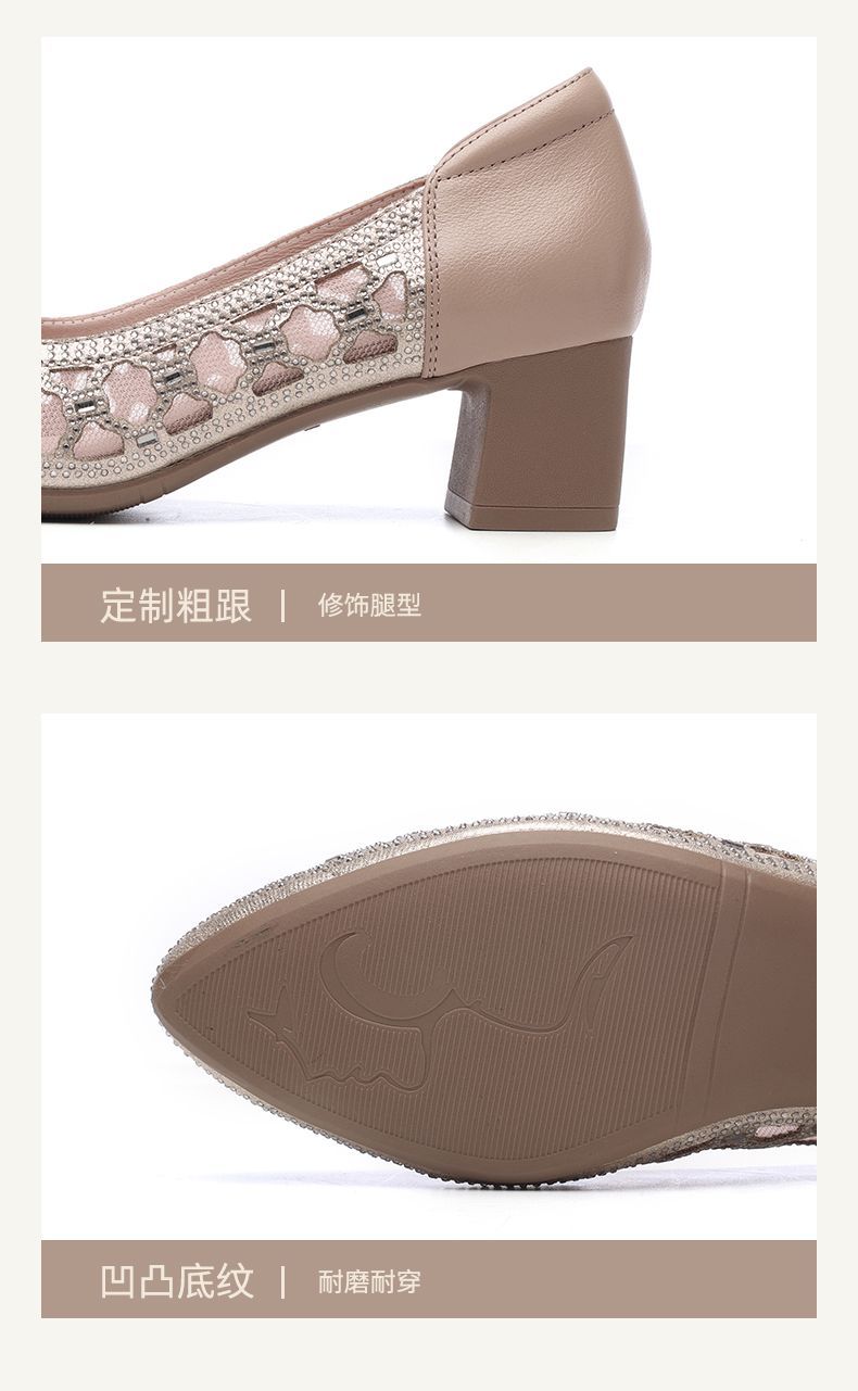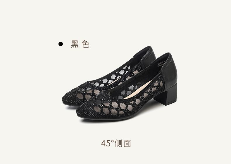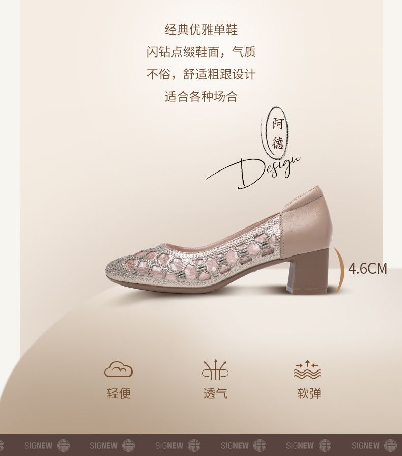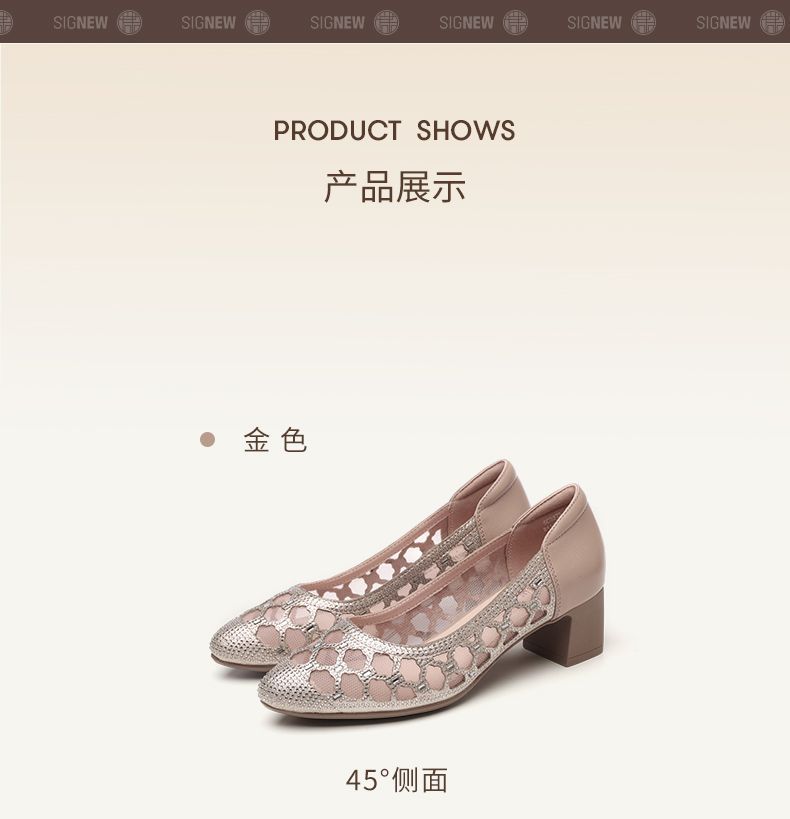 信诺软底女鞋2025新款夏舒适透气女凉鞋时尚镂空网纱水钻女士单鞋5C3273-1