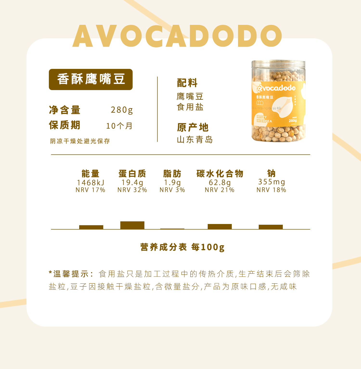 Avocadodo新疆香酥炒鹰嘴豆即食桥本零食高蛋白低脂健康牛油果果