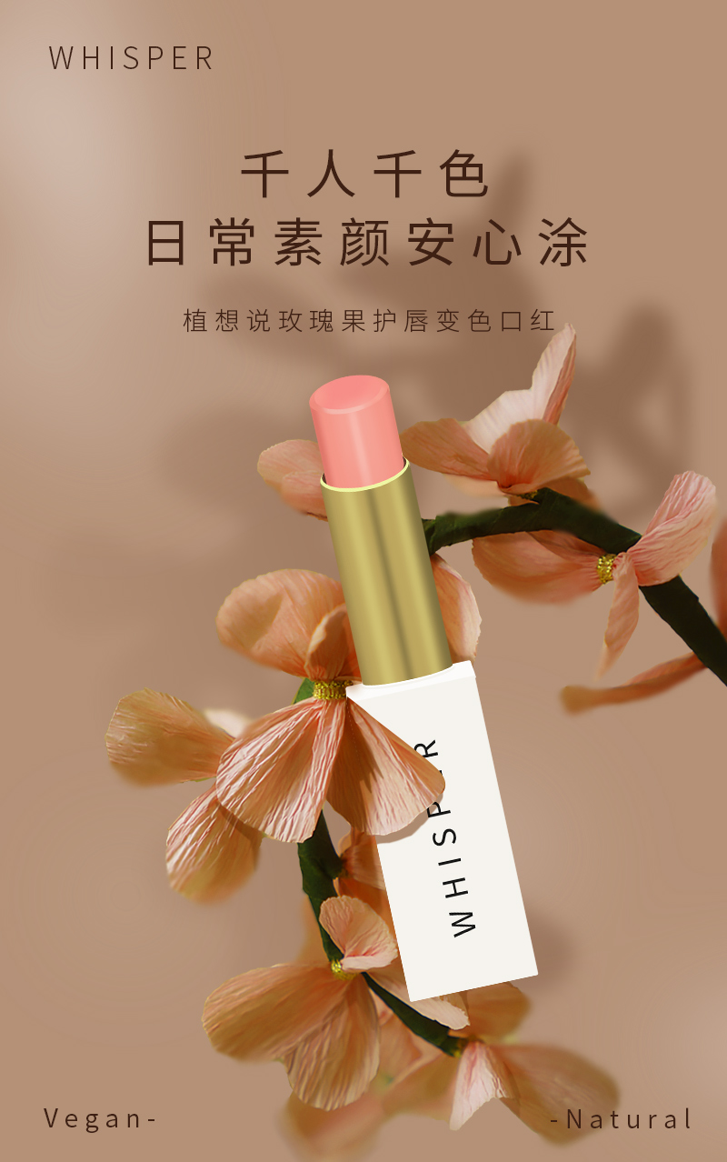 【活动:买2支 送 1支价值48元护手霜】植想说玫瑰果变色润唇口红 纯素无添加 全新升级 “千人千色 极润修护” 滋润修复孕妇可用、不沾杯健康气色润唇膏