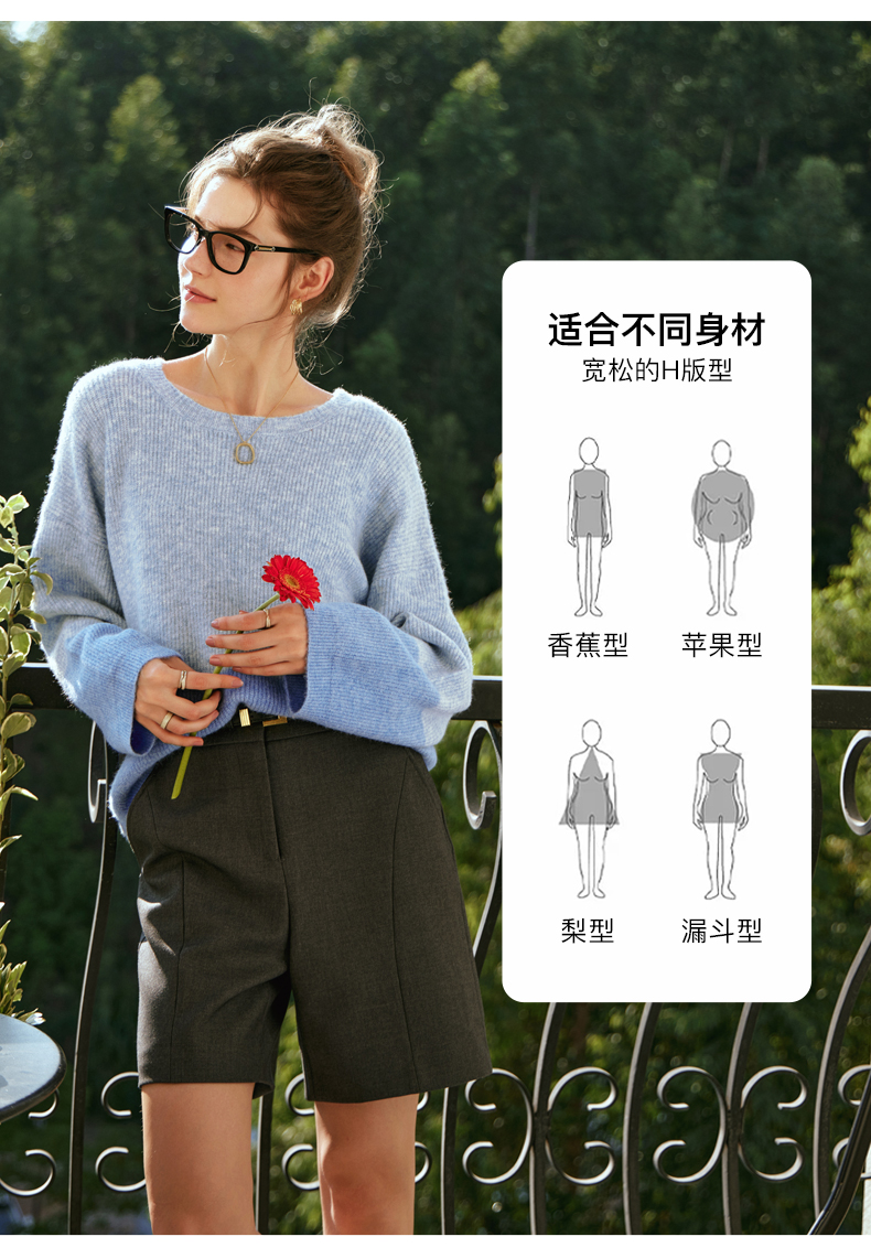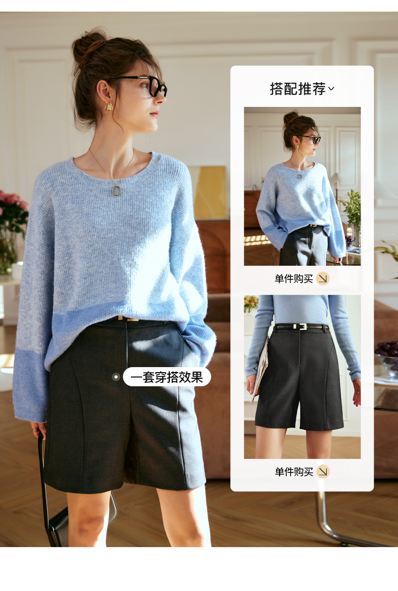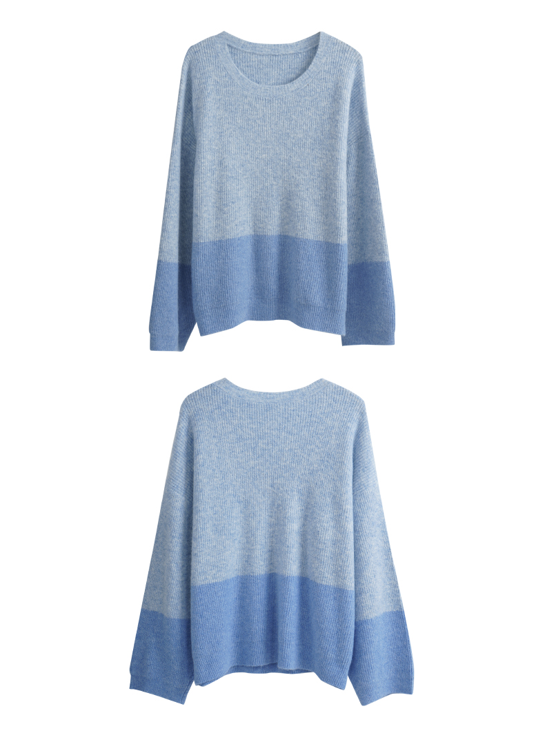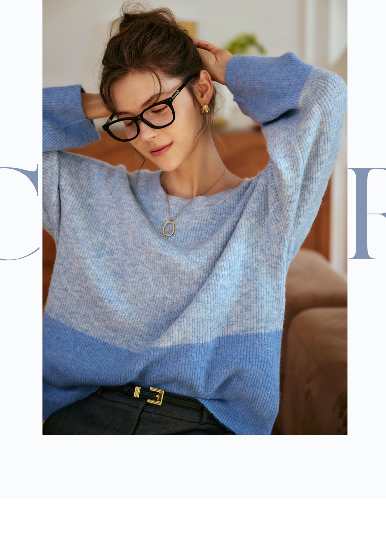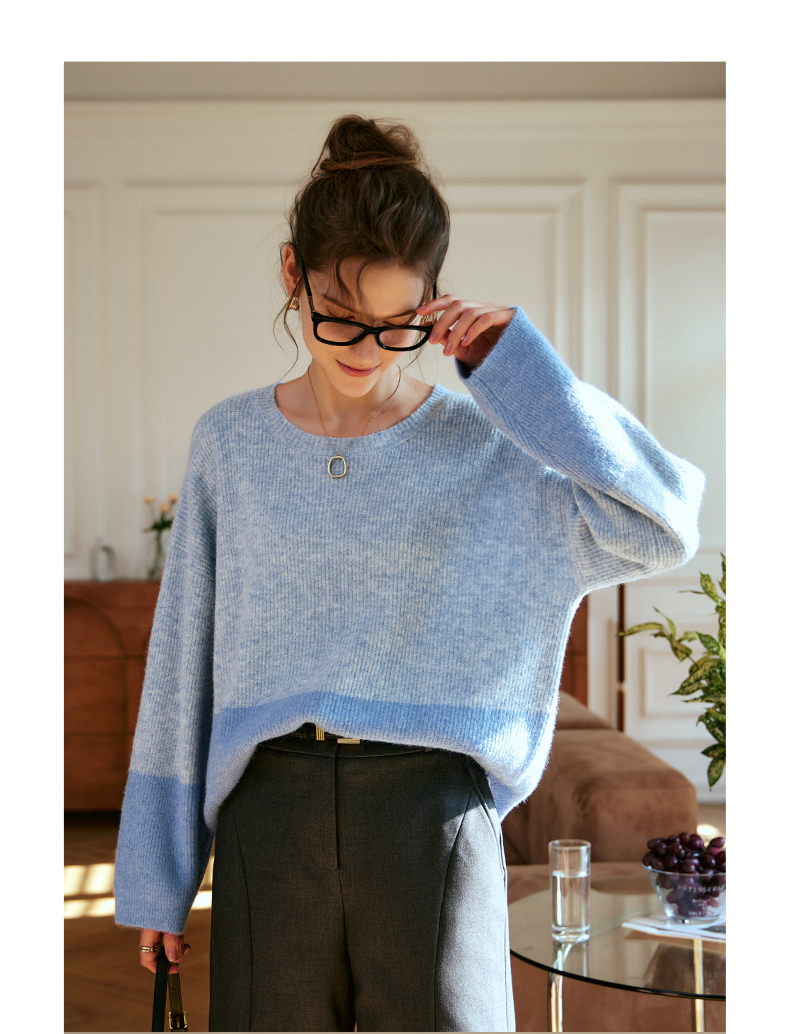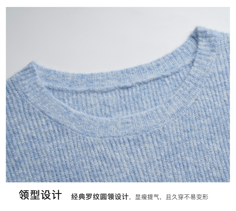 OLrain欧芮儿蓝色针织衫女秋冬2023年新款别致宽松慵懒风毛衣