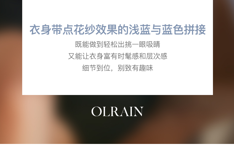 - “精致”是欧芮儿olrain品牌文化的核心,欧芮儿认为,精致的女人,不但要外在动人,更要内在迷人,内外兼修,有魅力、有气质、有内涵,自信而不自傲,优雅而不矫揉,自有万种风情而不轻浮,更不故作矜持。