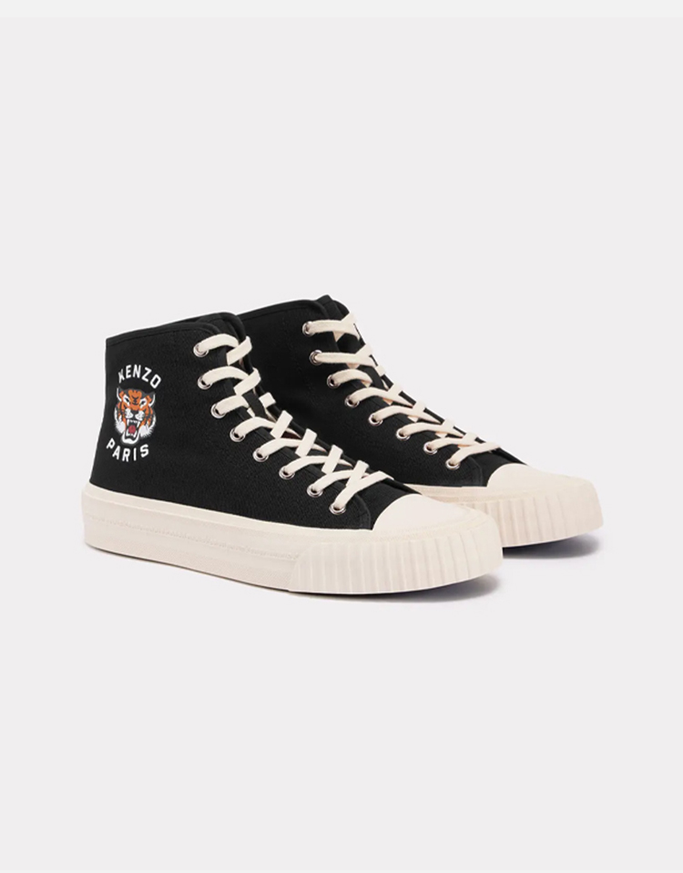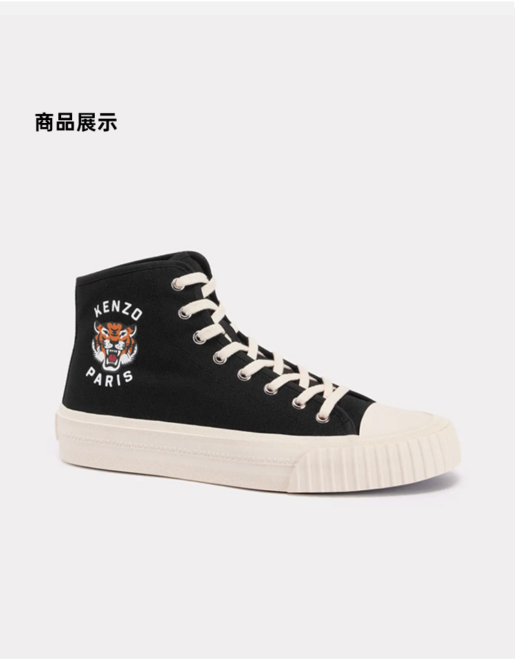 KENZO 高田贤三 男士老虎徽标印花高帮帆布休闲运动鞋 黑色 FE55 SN025 F76 99