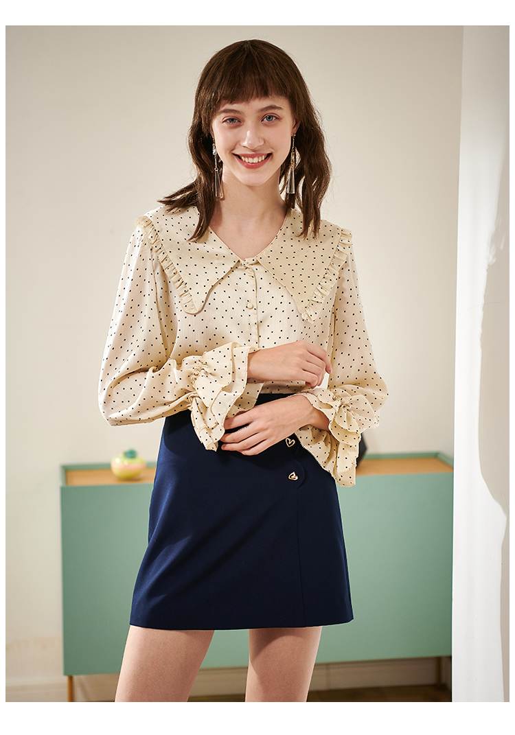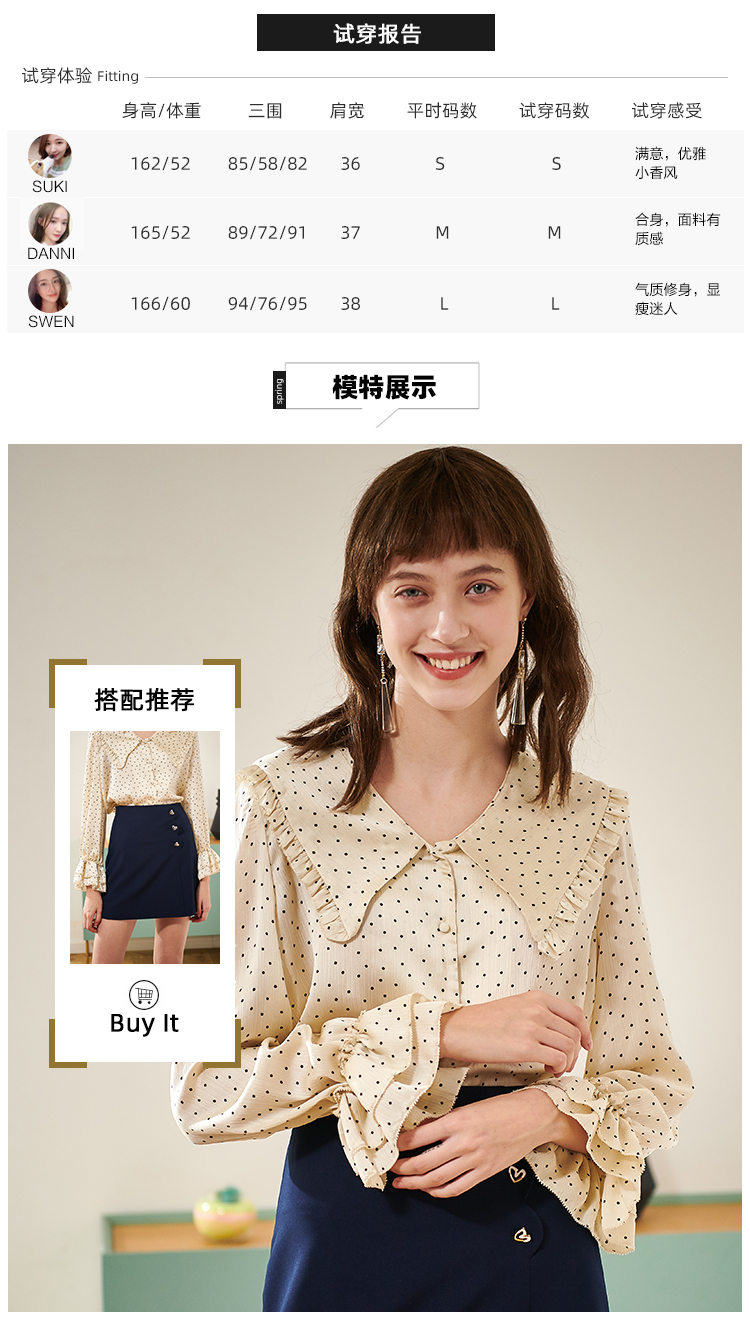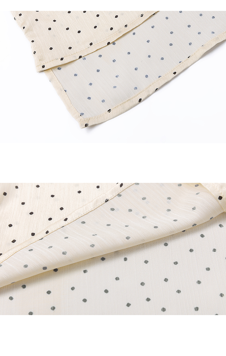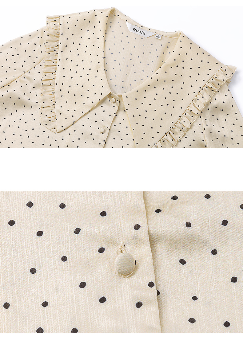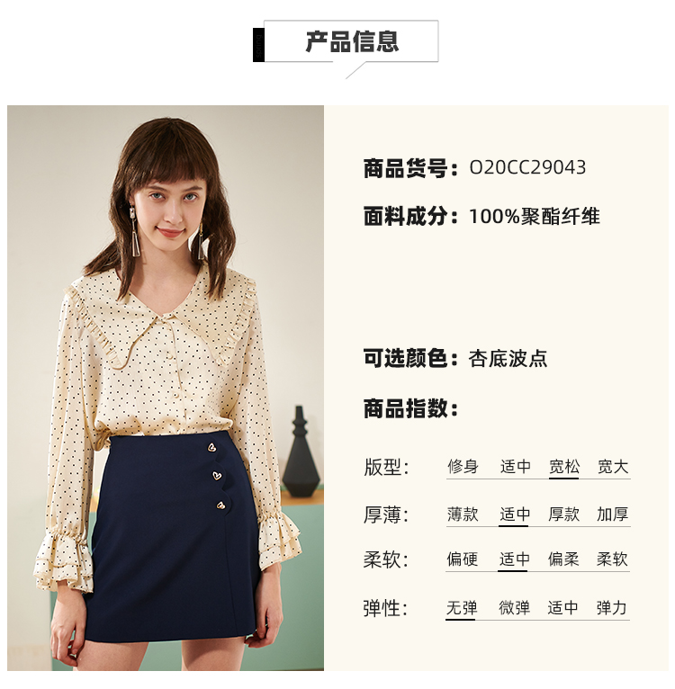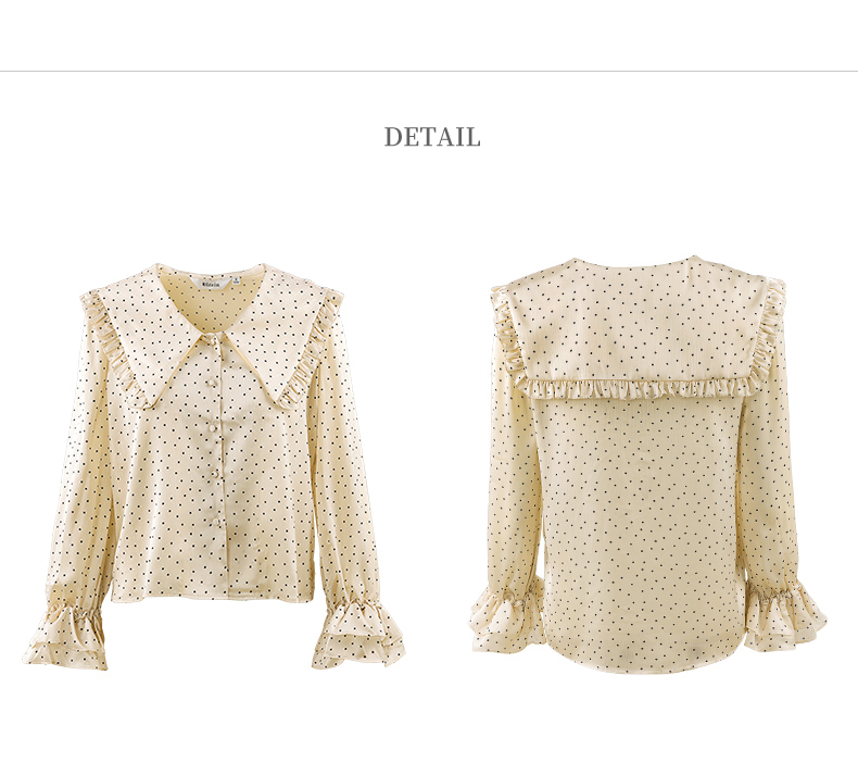 欧芮儿春新款喇叭袖V领波点雪纺衬衫女木耳边内搭休闲上衣