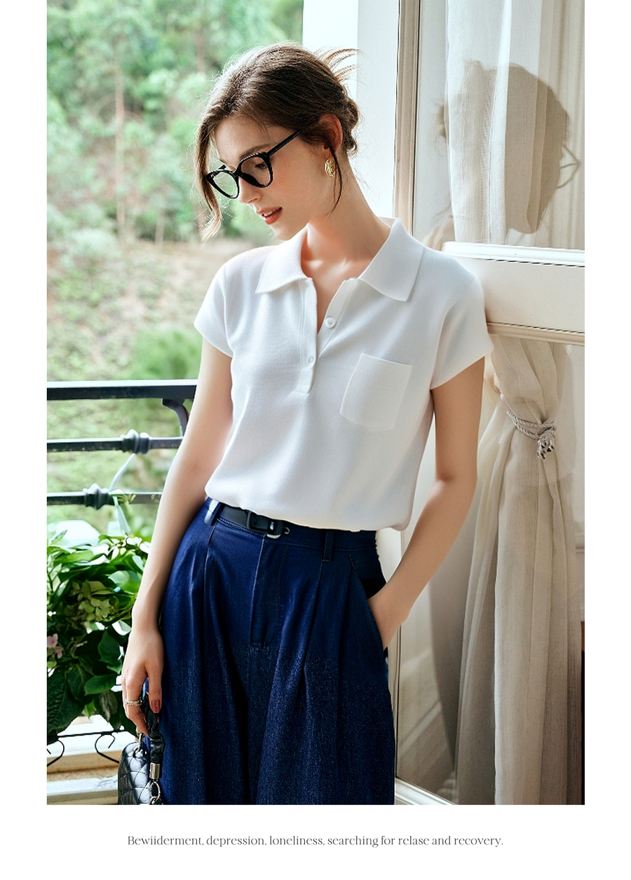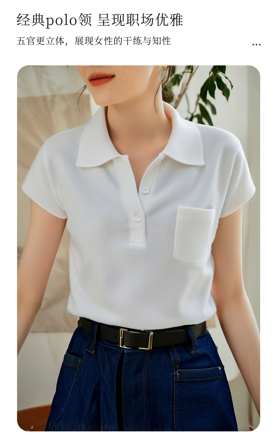 OLrain欧芮儿2025年夏季新款白色通勤风毛针织套头衫单口袋装饰女