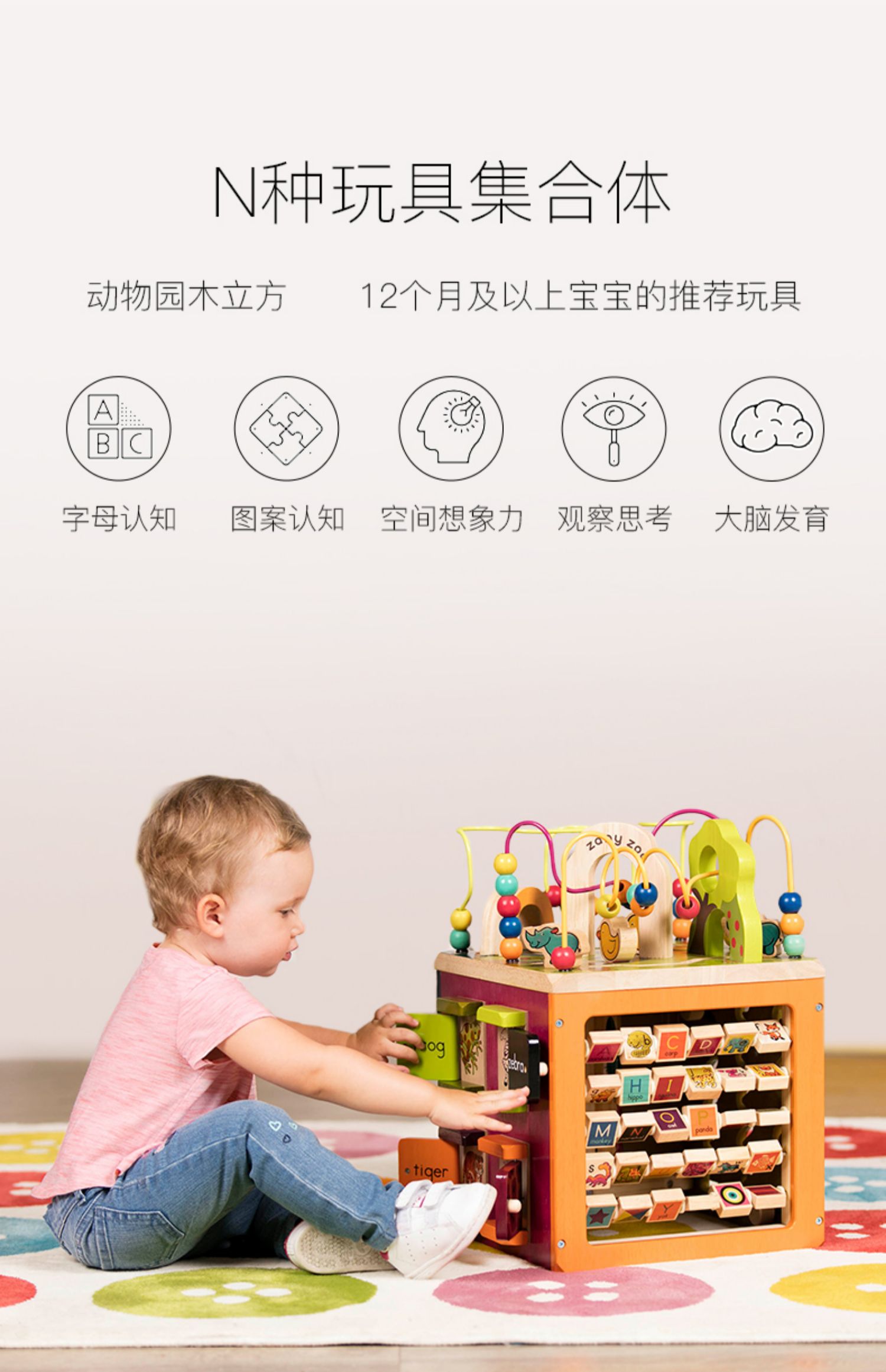【N种玩具集合体的百宝箱】b.toys比乐8合1百宝箱 宝宝木立方益智绕珠串珠 儿童六面体百宝箱玩具