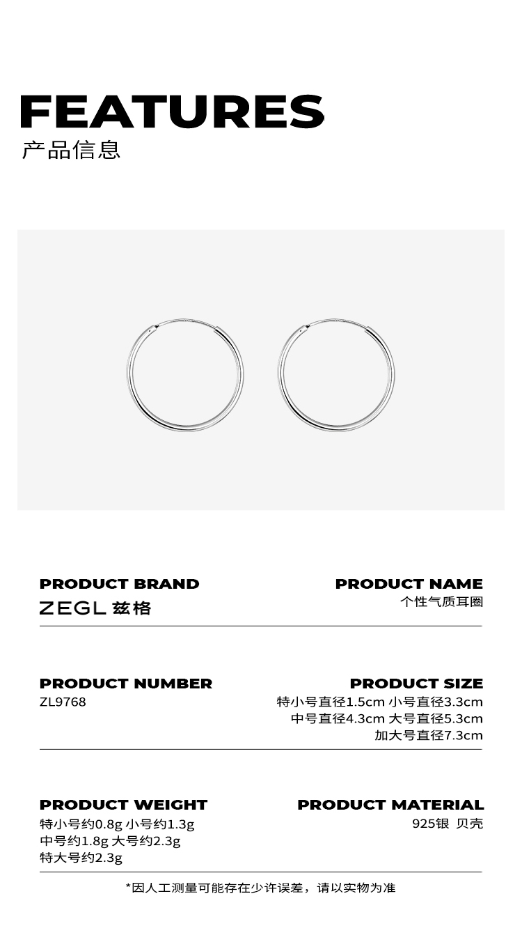925银大小耳圈女韩国个性气质耳坠耳钉耳饰圆形圆圈圈款圆环耳环