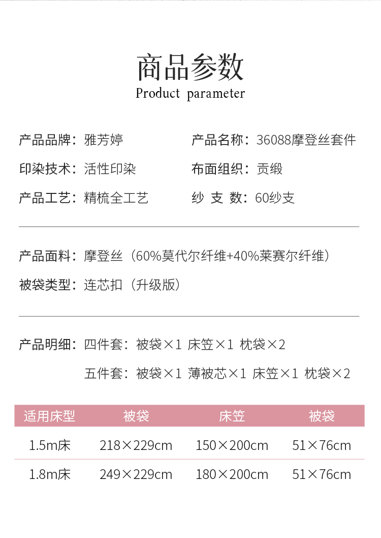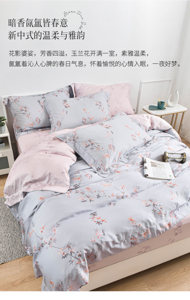 雅芳婷摩登丝床笠款四五件套被套枕套床品套件凉感摩登丝床上用品